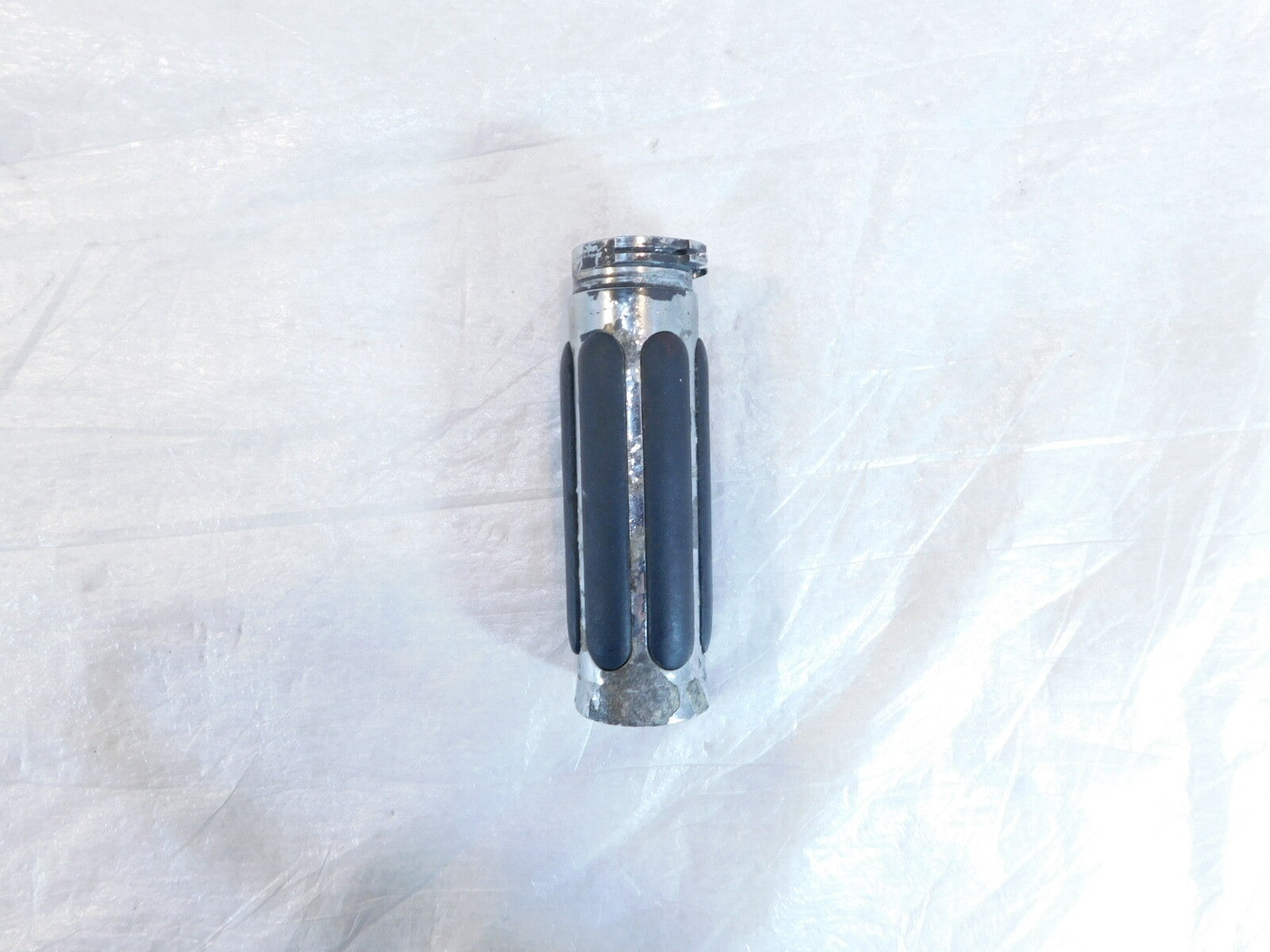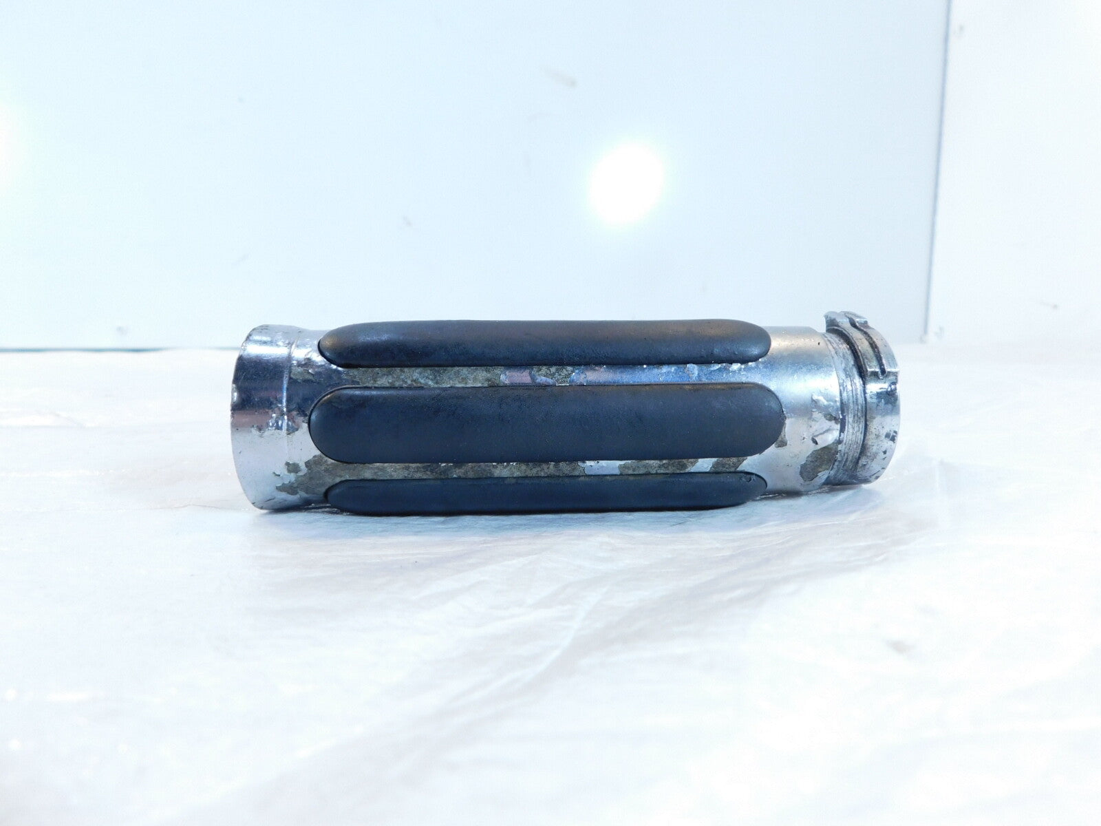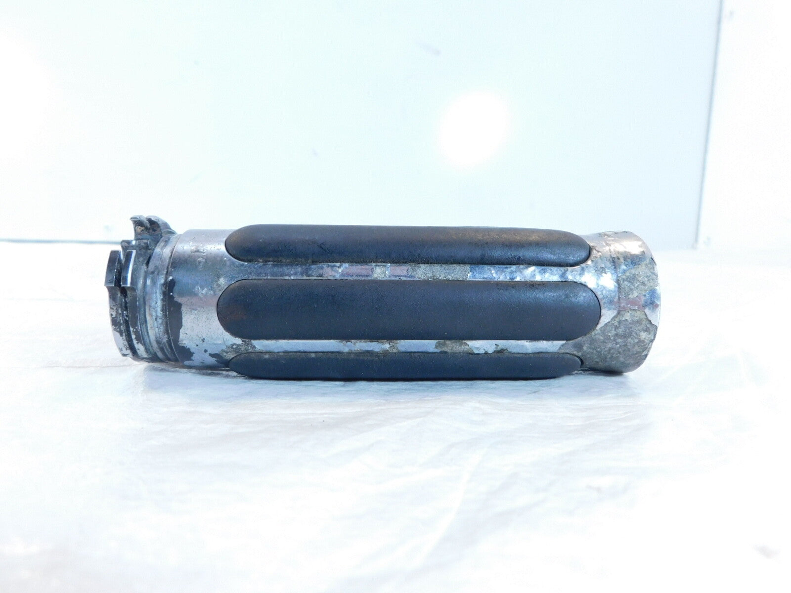 This is a used throttle grip. It is a little dirty and has light marks from previous use and storage and has some chipping paint (as pictured).