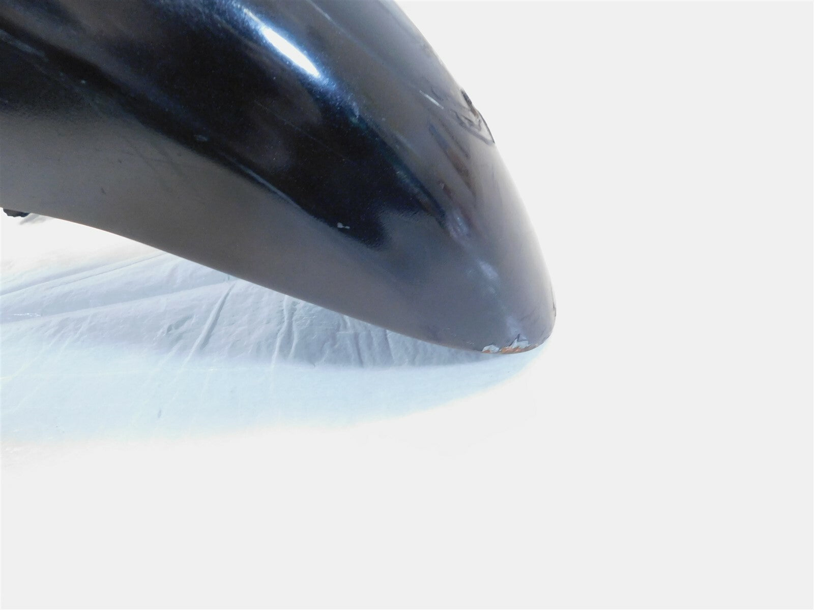 This is a used front fender. There are some light marks from previous use and scratches in the paint. There is a dent on the edge of the fender (as pictured). Part was removed from 2001 Indian Scout Gilroy.
