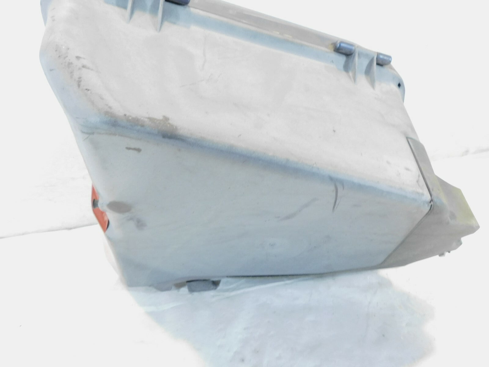 This is a used right pannier. It is a little dirty from previous use and storage and has some marks and scuffs on the outside of the case and the outer cover of the lock has a small tear in the metal(as pictured). This pannier was removed from a US 2002 RST1000 Futura.