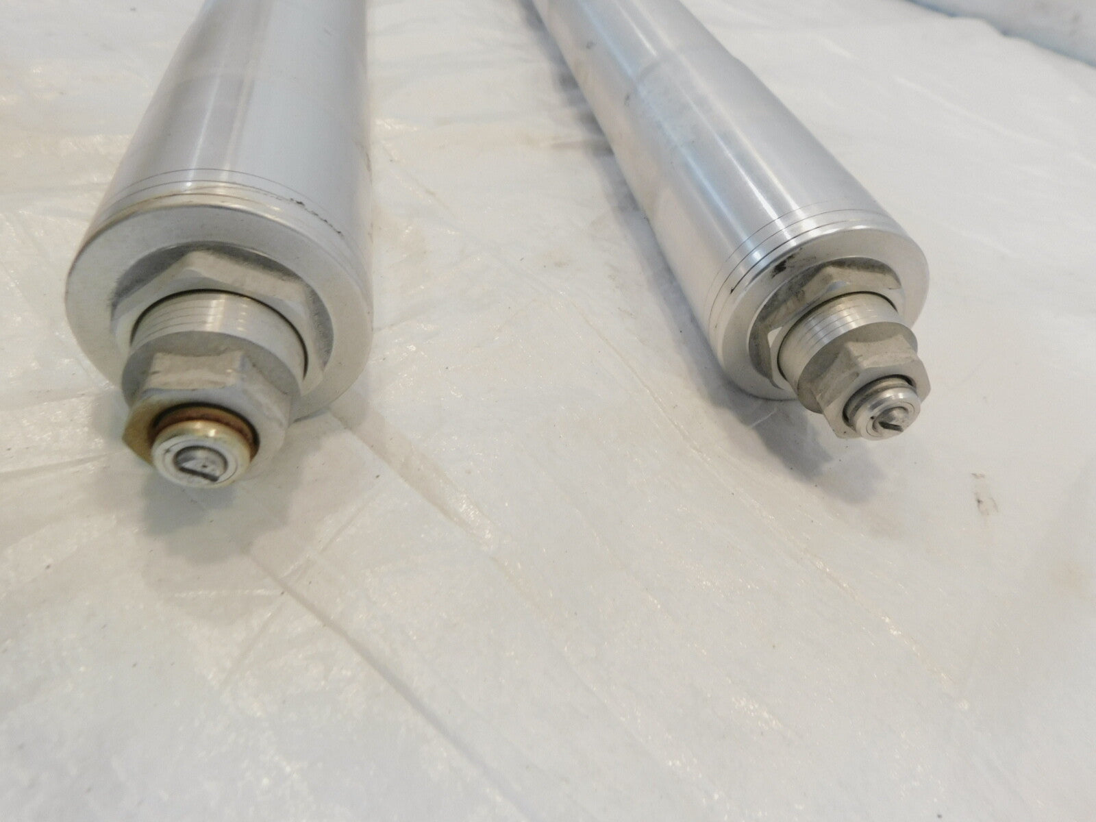 This is a used pair of front forks in good condition. They are dirty and have some marks and discoloration from previous use and storage and there is some pitting in the finish(as pictured)