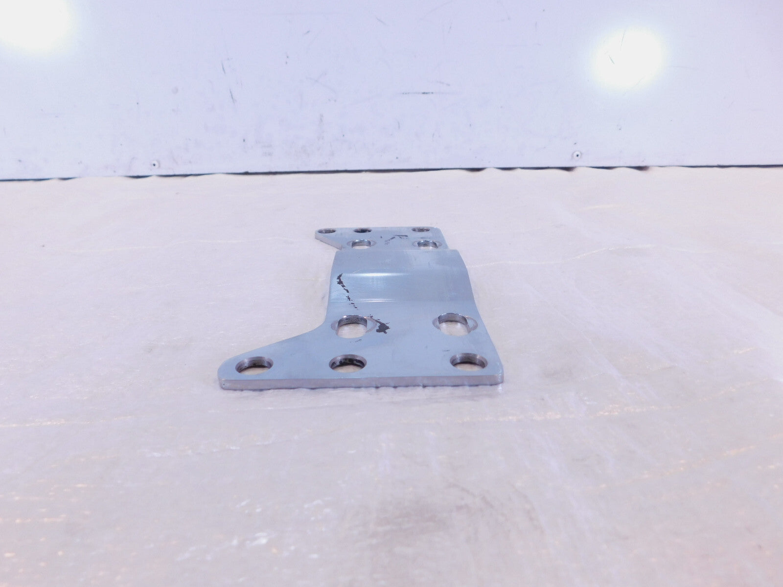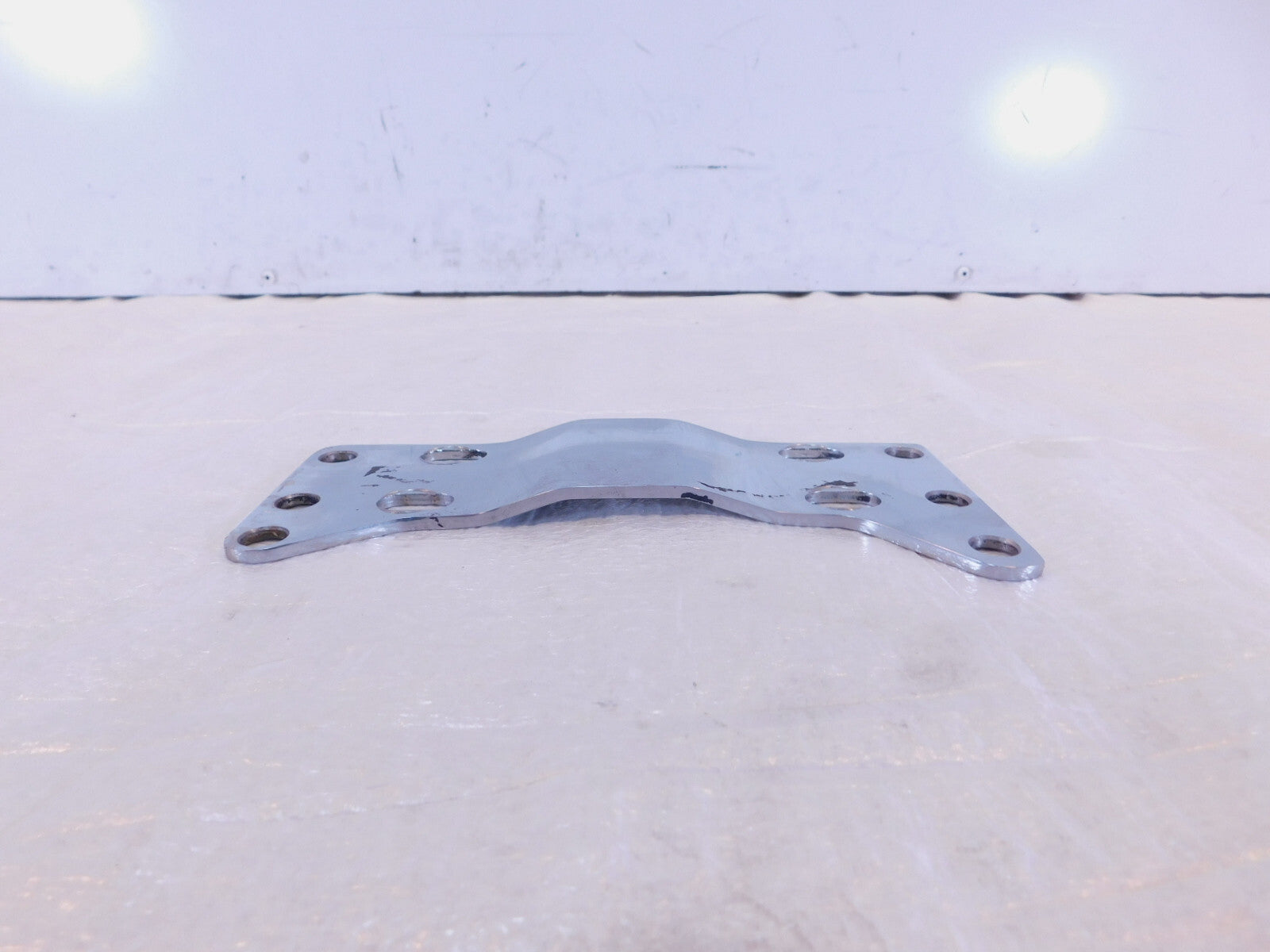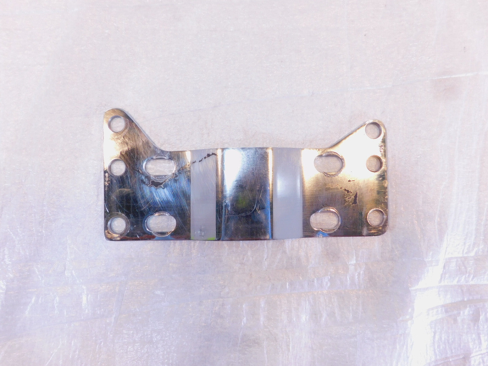 This is a used bracket. There are some light marks from previous use and pitting and rusting of the chrome.