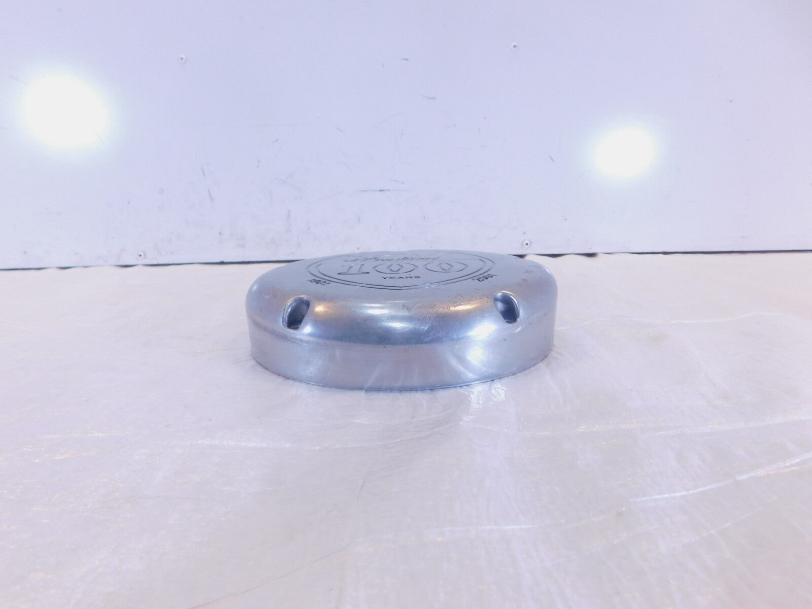 This is a used rear primary inspection cover. There are some light marks from previous and storage and it has some small scuffs on the edges (as pictured)