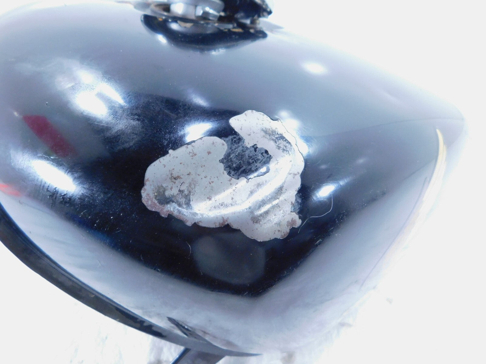 This is a used fuel tank. It is dirty from previous use and storage and there are dents and peeling in the paint (as pictured). We do not have a key for the cap.