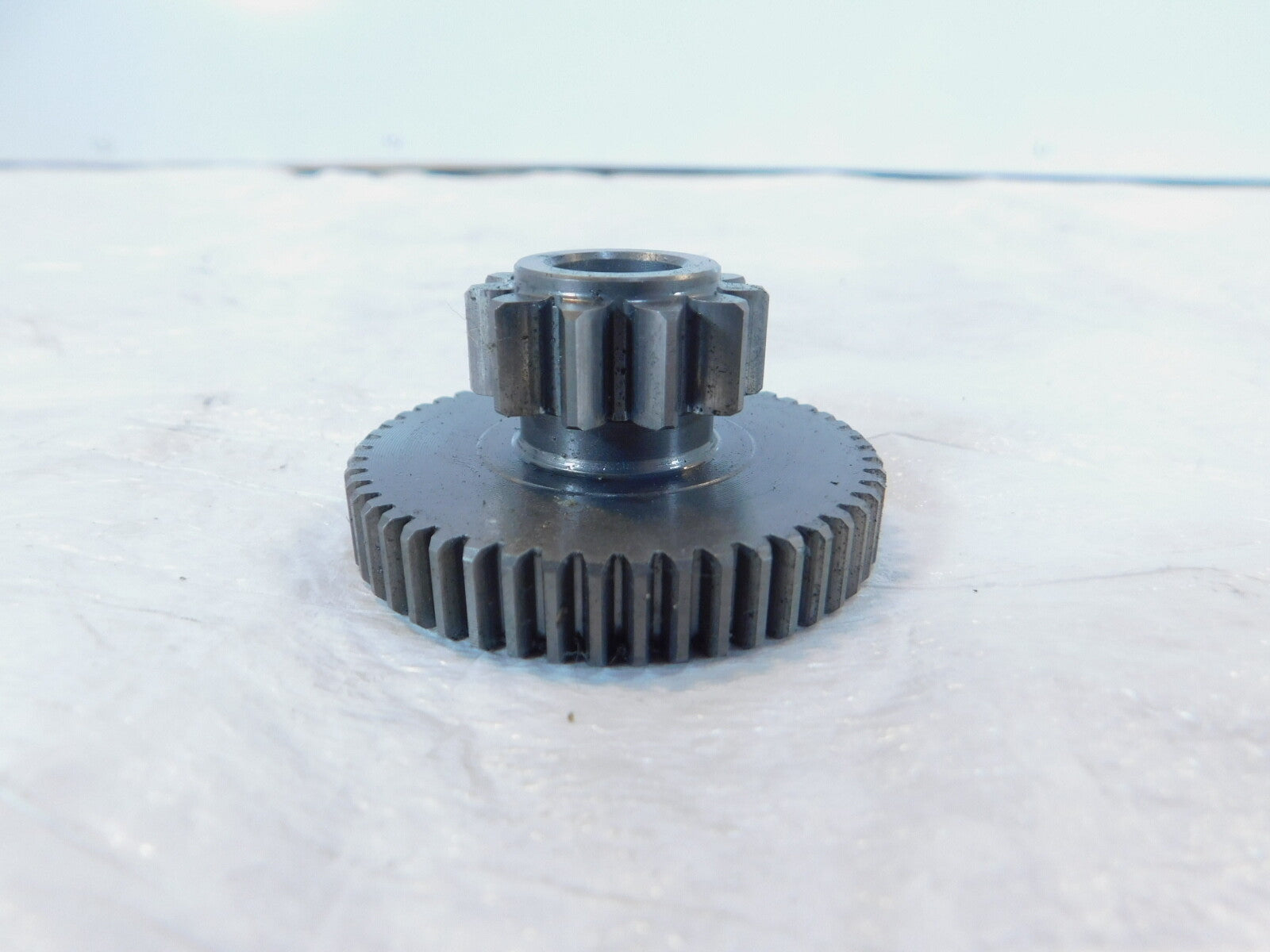This is a used starter gear. It is a little dirty from previous use and storage but it looks good.