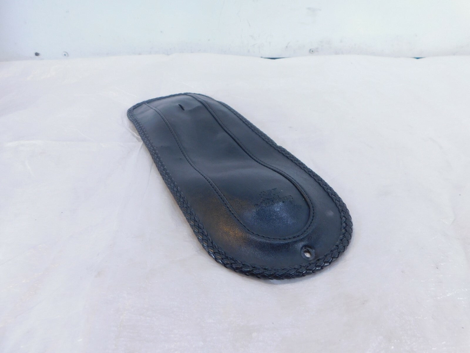This is a used rear fender cover for use with a solo seat. There are some light marks from previous use and storage but it looks good.