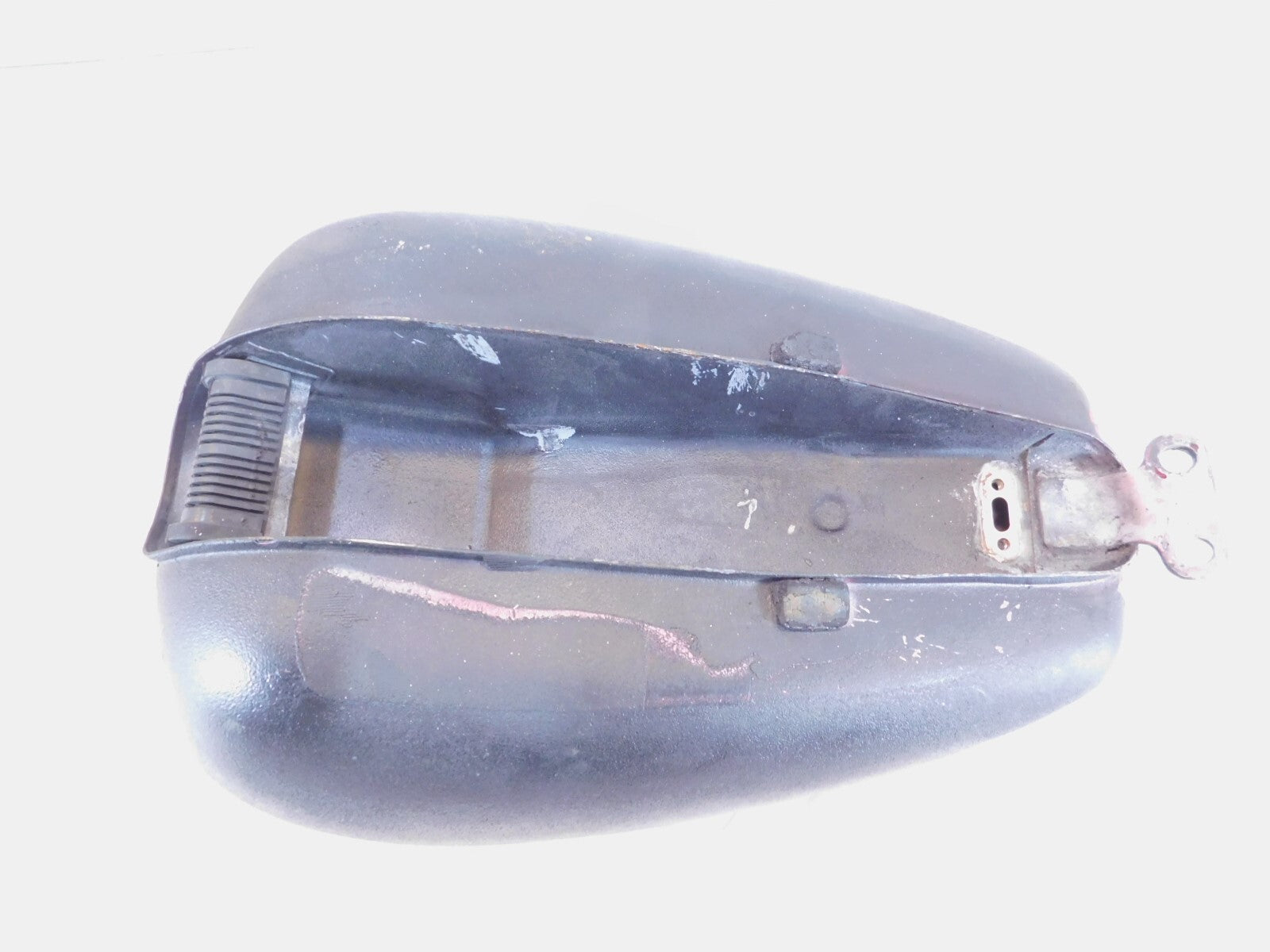 This is a used fuel tank. It is a little dirty from previous use and storage and it has some small dents (as pictured). It was painted by the previous owner and the paint is chipped and peeling (as pictured). There is significant rust inside.
