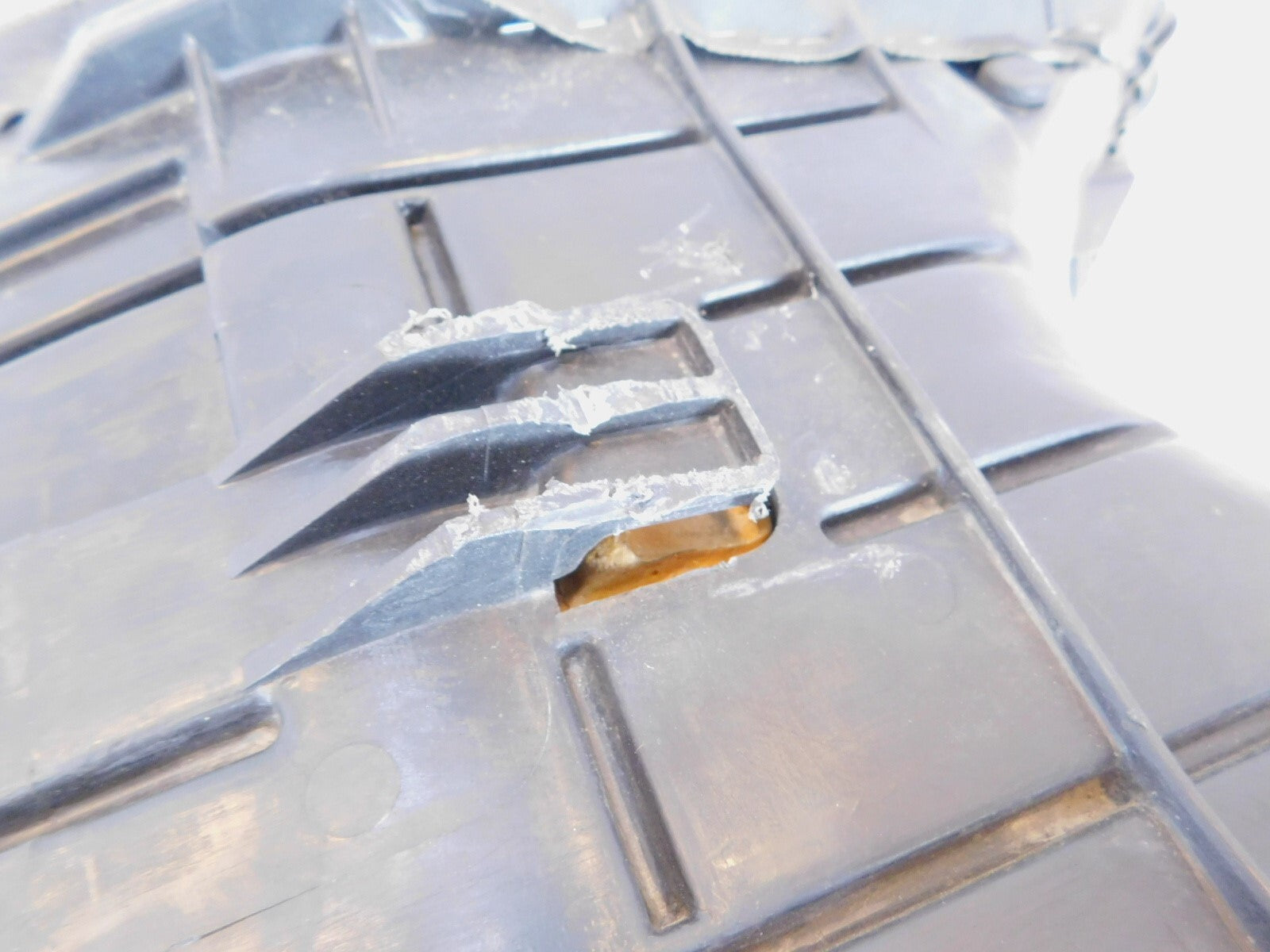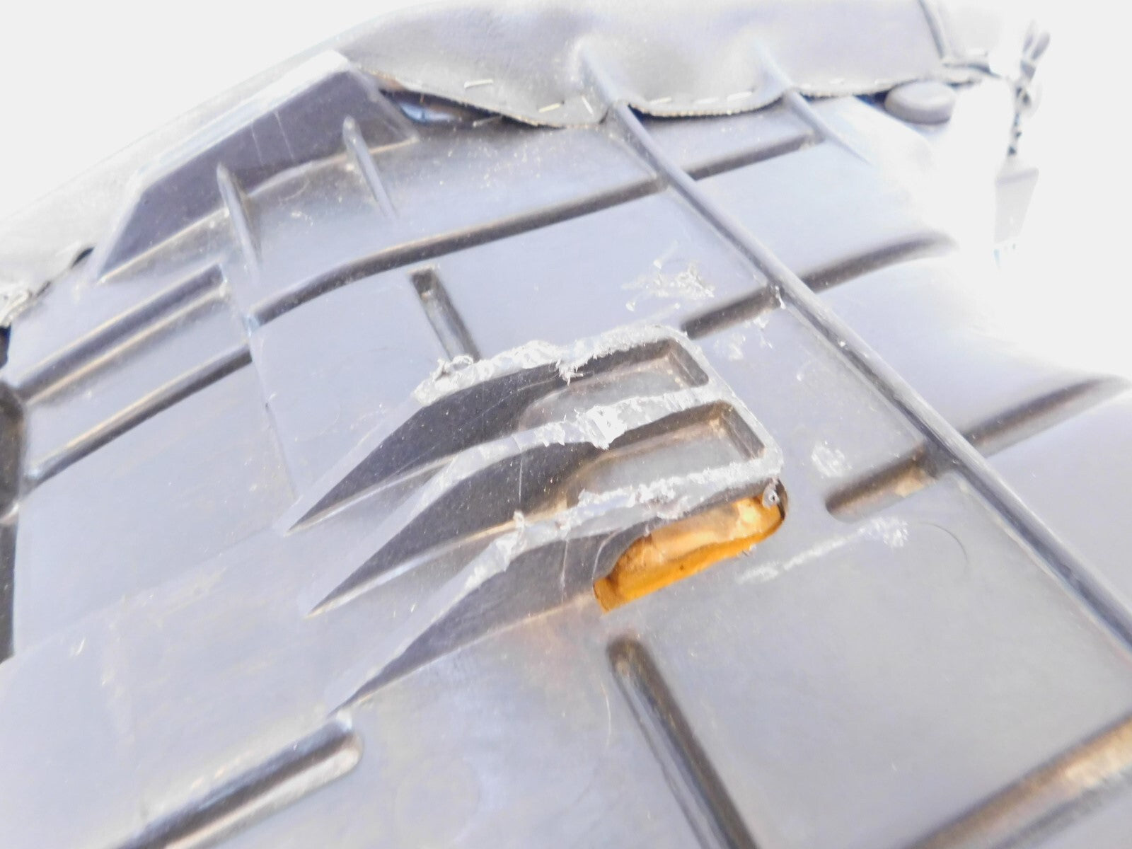 This is a used seat in good condition. It is a little dirty from previous use and storage; it has some scuffs on the bottom mount and a small tear (as pictured).