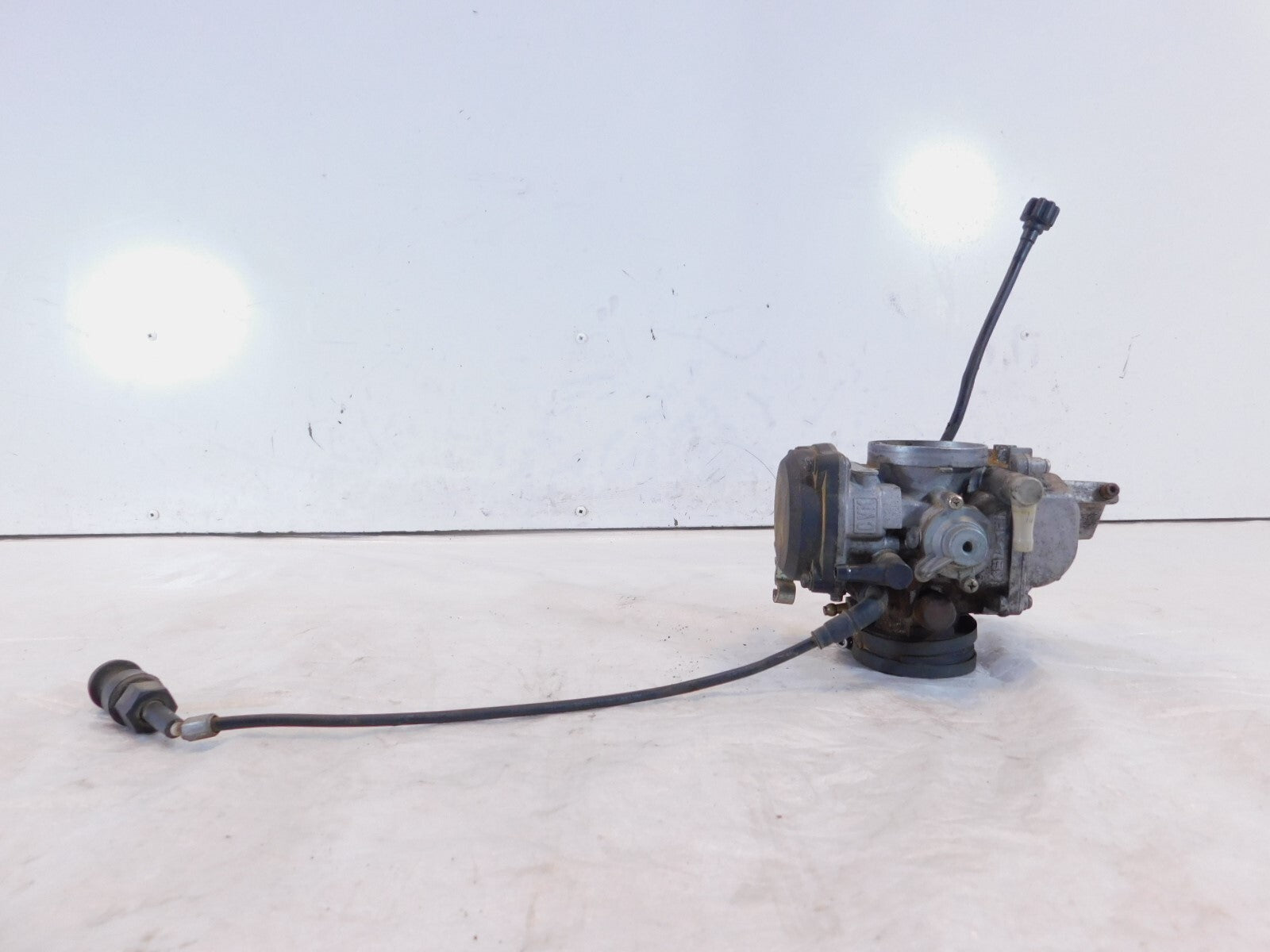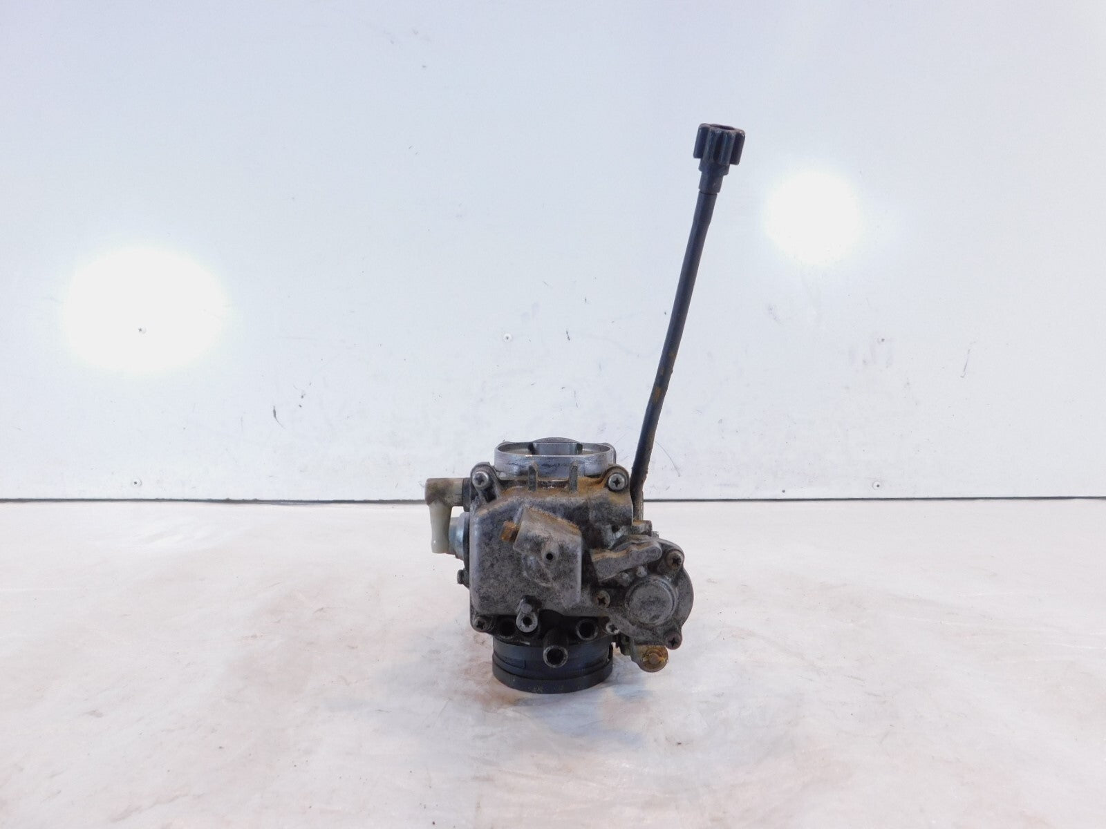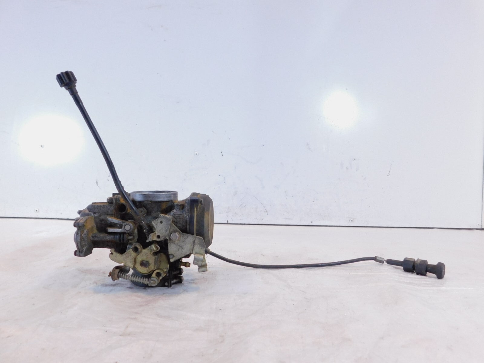 This is a used carburetor. It is dirty from previous use and storage and there are large spots of surface rust and the plastic on the end of the choke cable is cracked (as pictured).