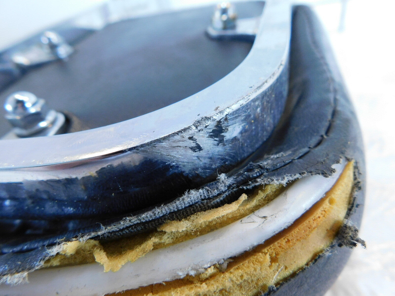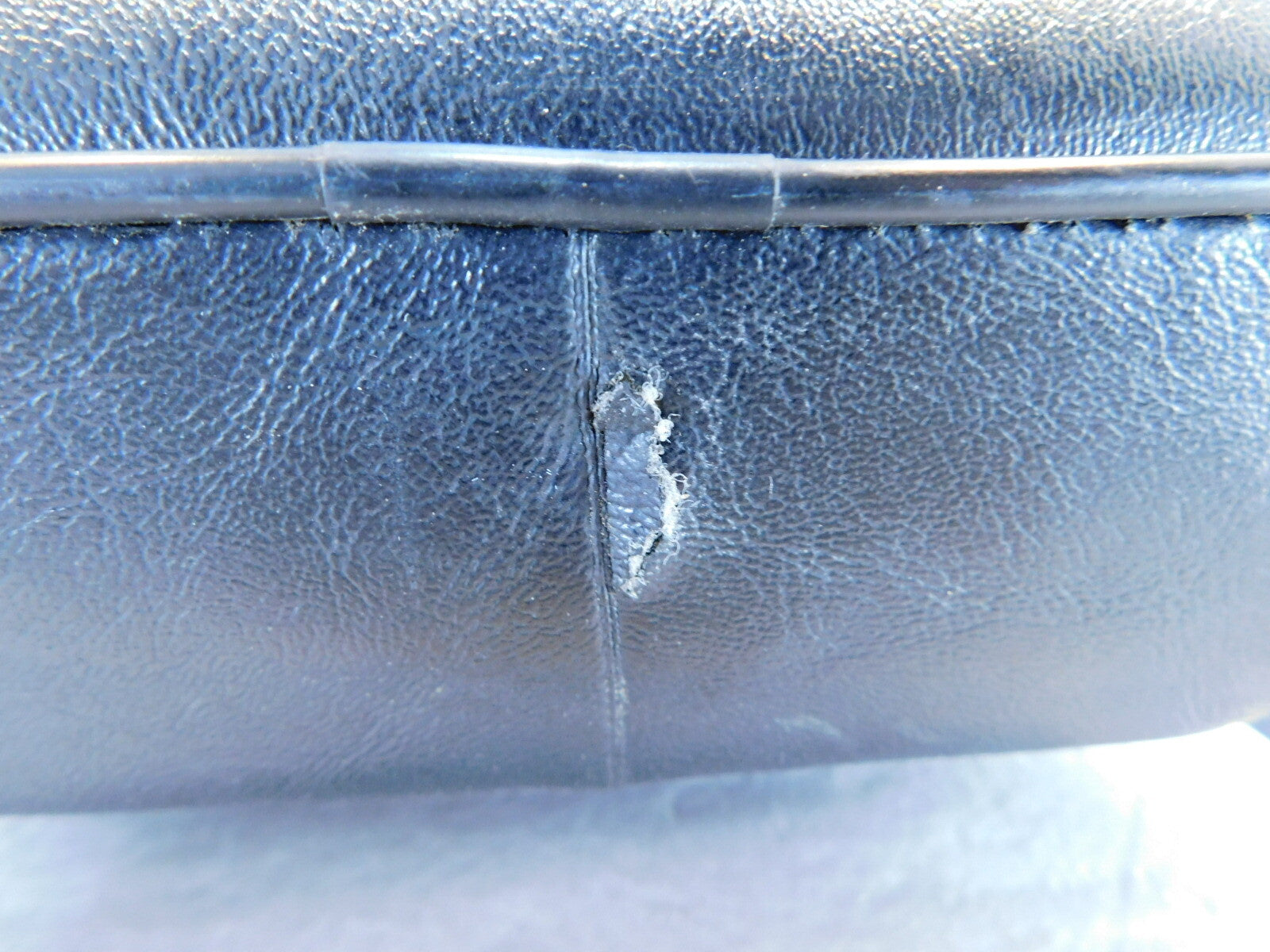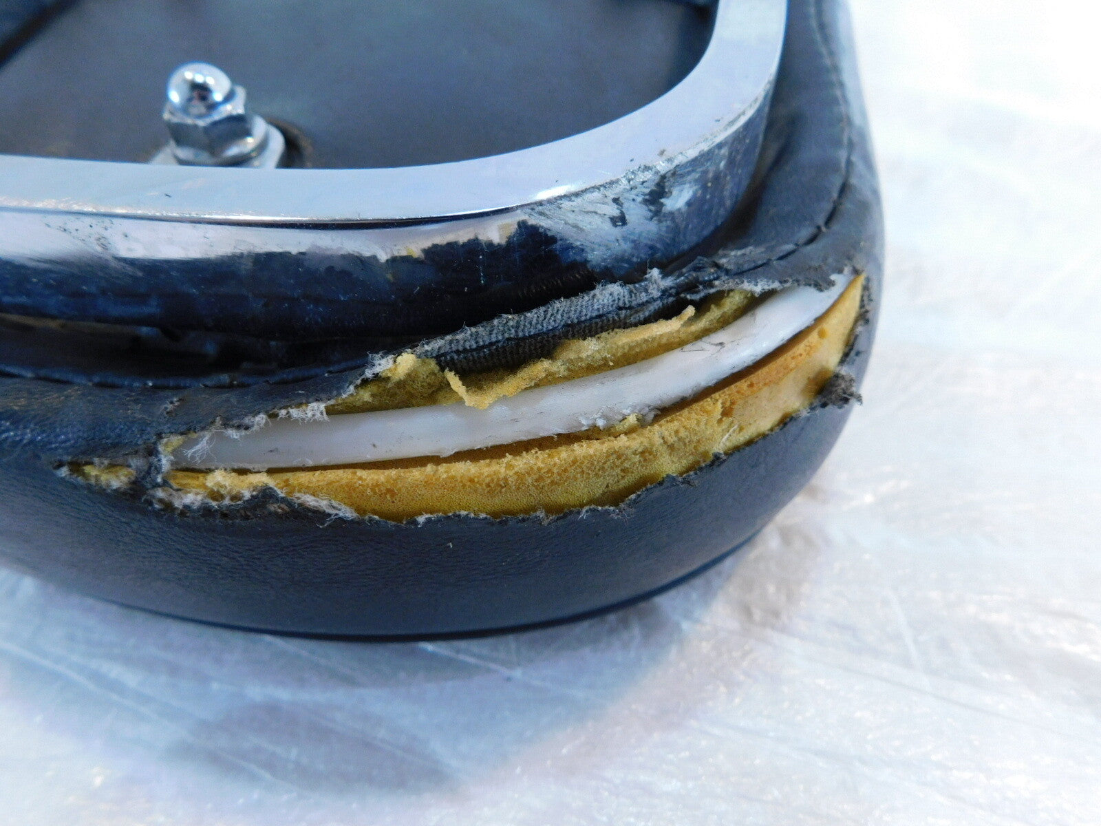 This is a used backrest. There are some light marks from previous use and storage and there is a seat tear and rash on the top of the back side (as pictured).