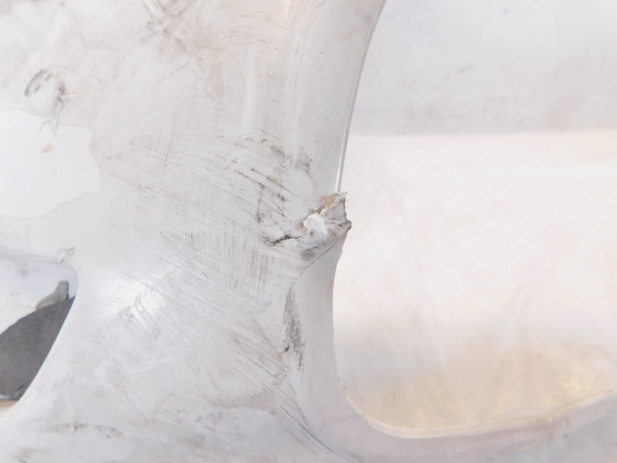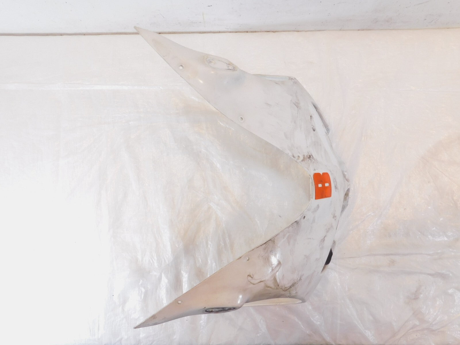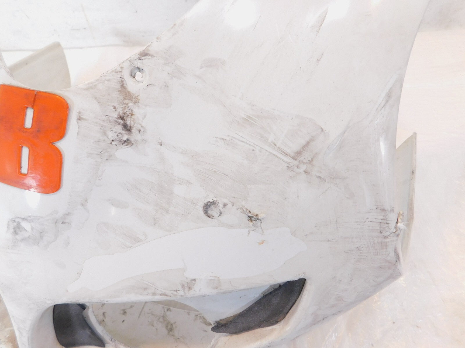 This is a used front fairing. There are some marks and it is a little dirty from previous use and storage. It is discolored and has some scuffs (as pictured).