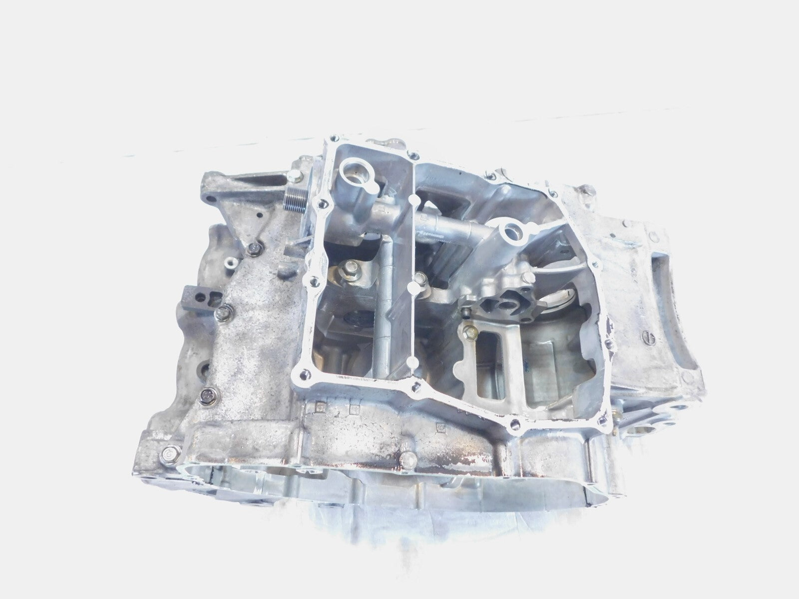 This is a used crankcase in good condition. It is a little dirty and has light marks from previous use and storage and it has some spots of discoloration (as pictured).