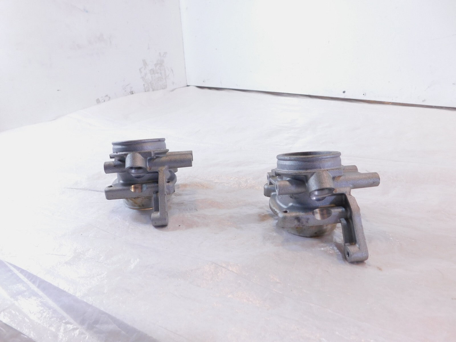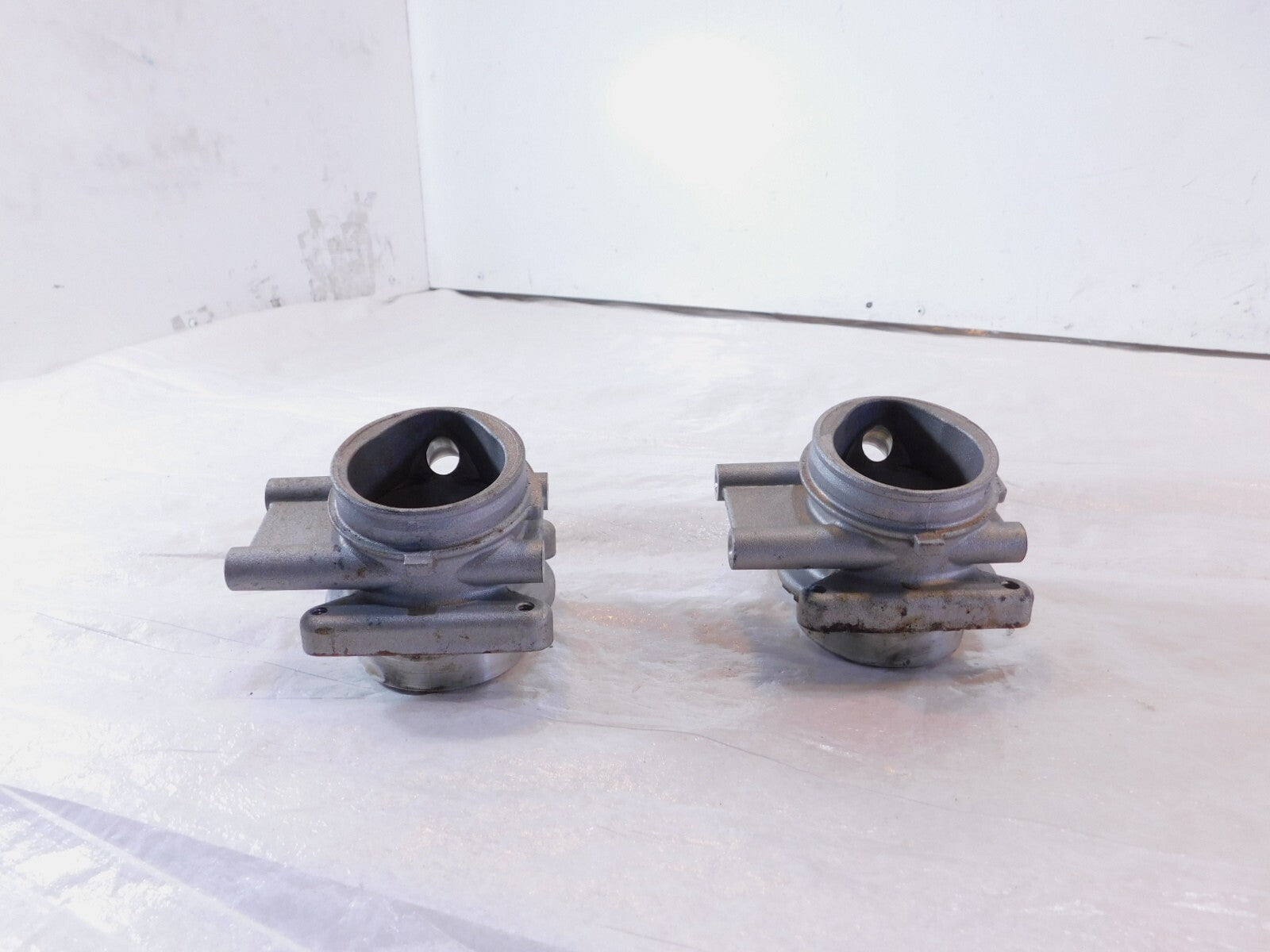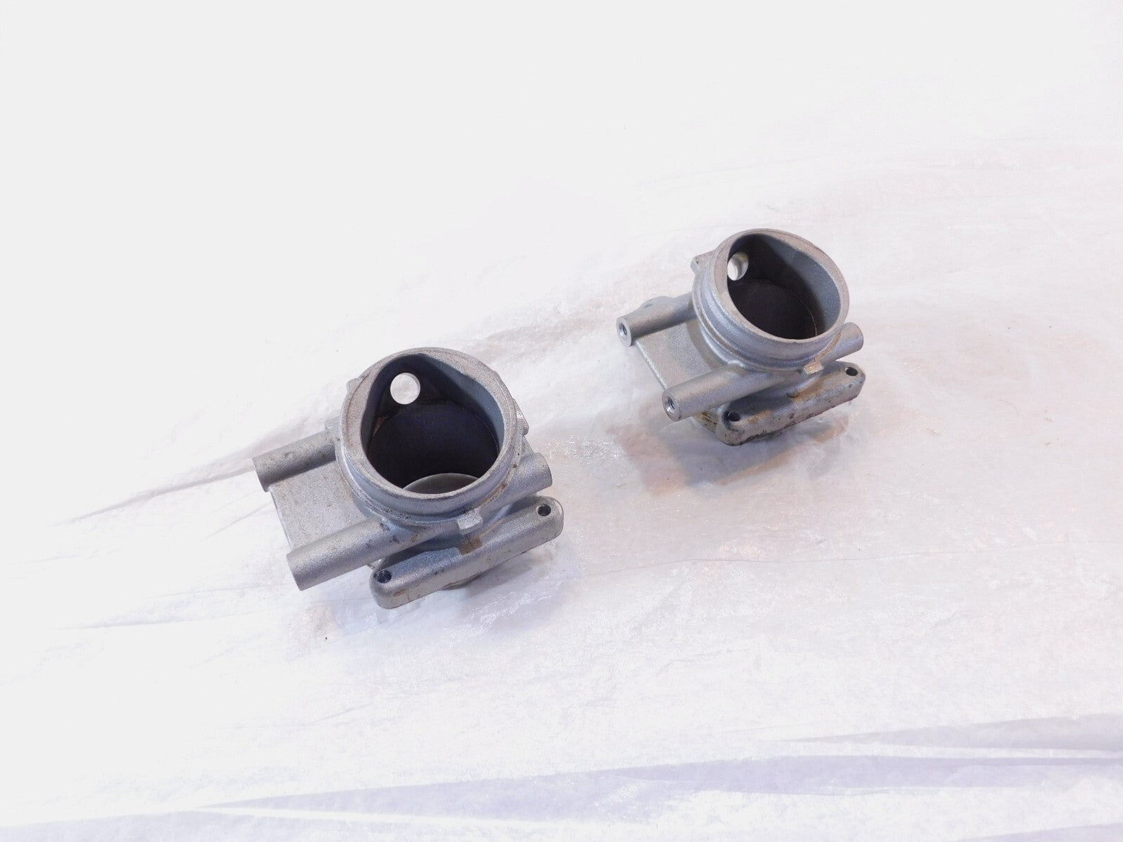 This is a used pair of throttle body unions in good condition. It is a little dirty and has some marks from previous use and there are minor spots of pitting and discoloration (as pictured).