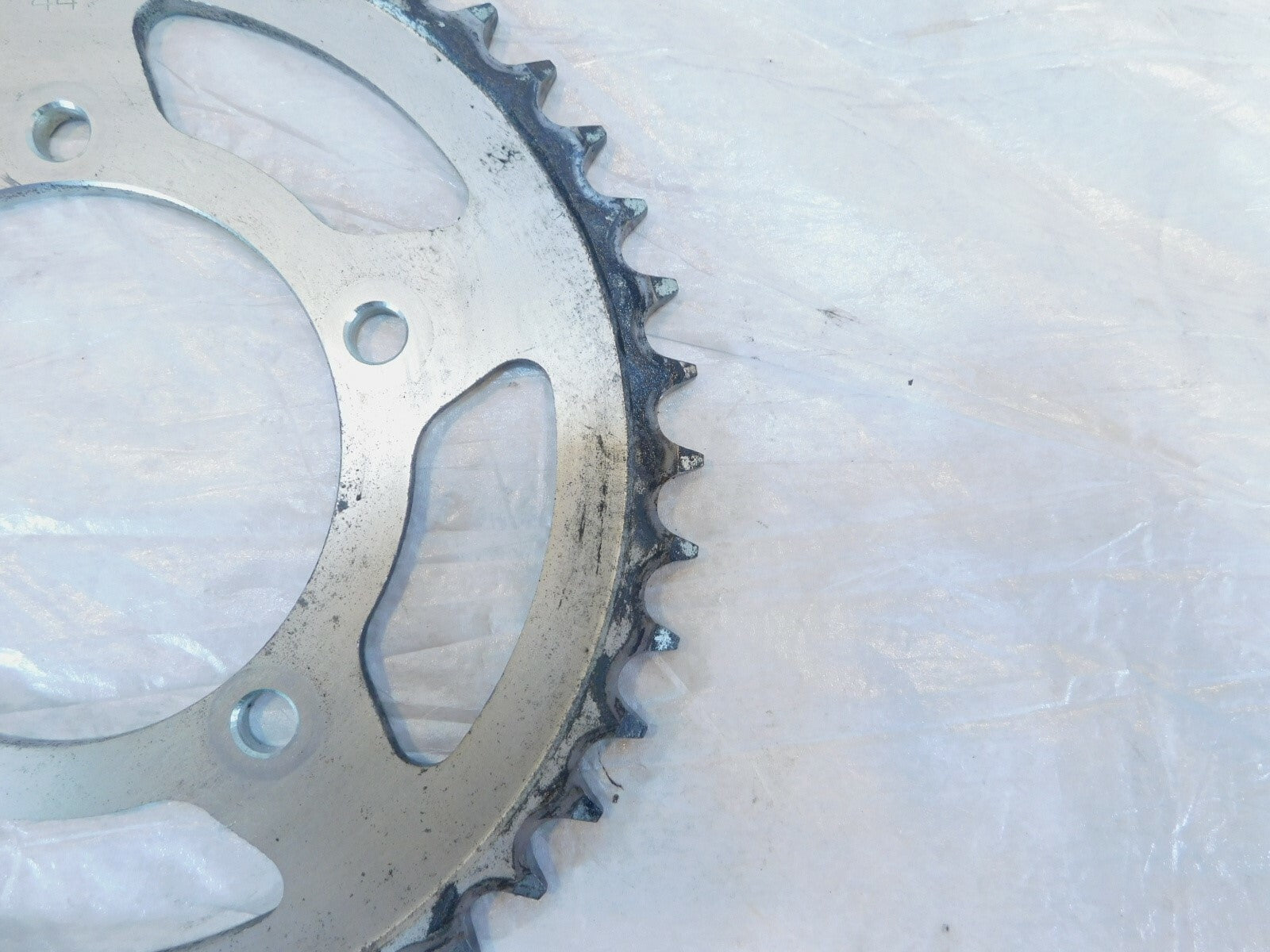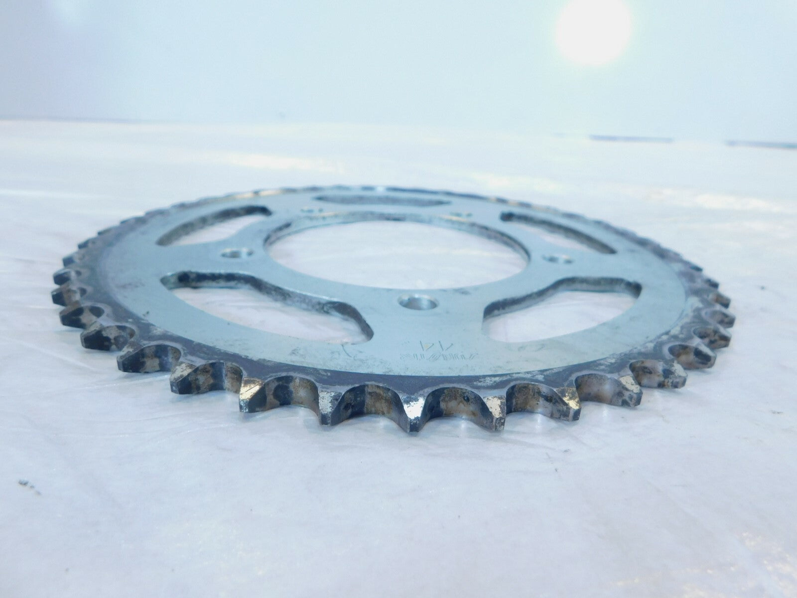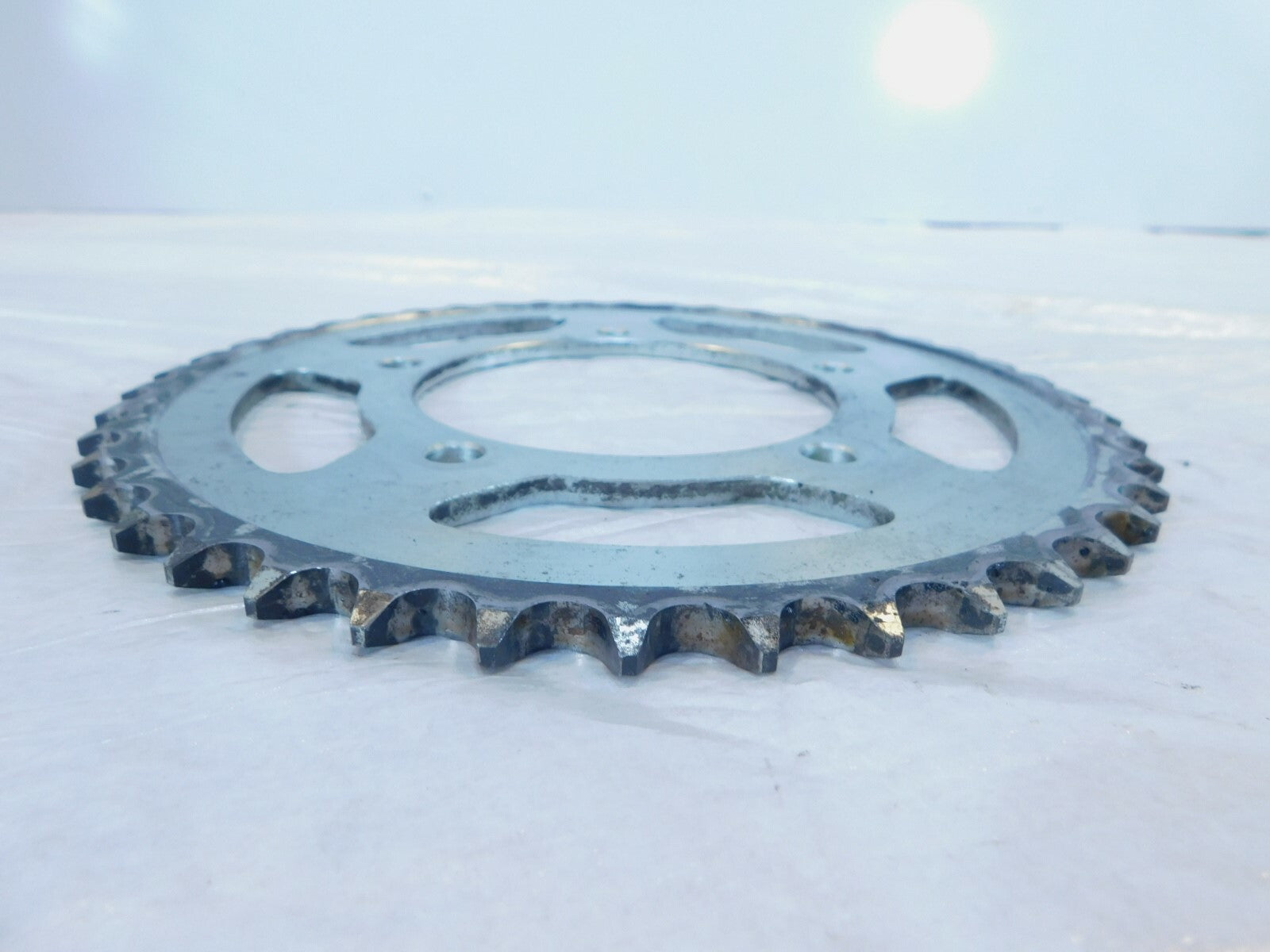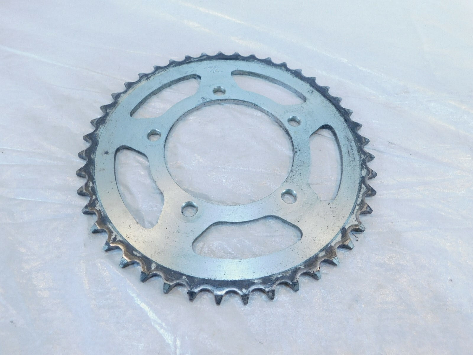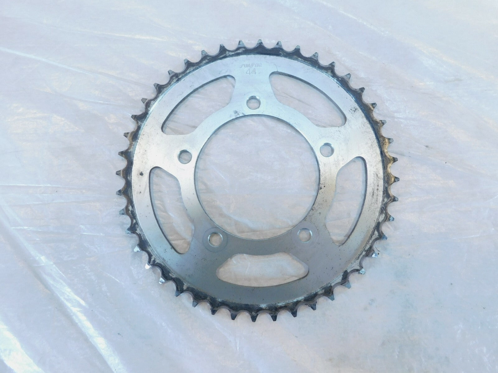 This is a used 44 tooth rear sprocket in good condition. It is dirty from previous use and storage but looks good. Part was removed from a 2013 US Shiver 750.