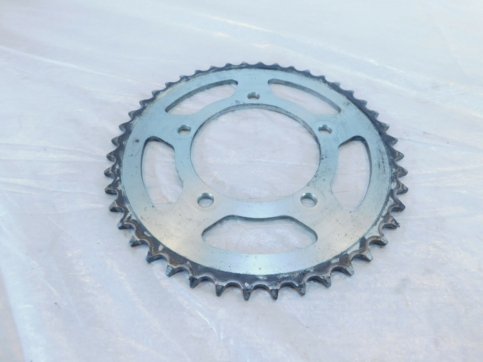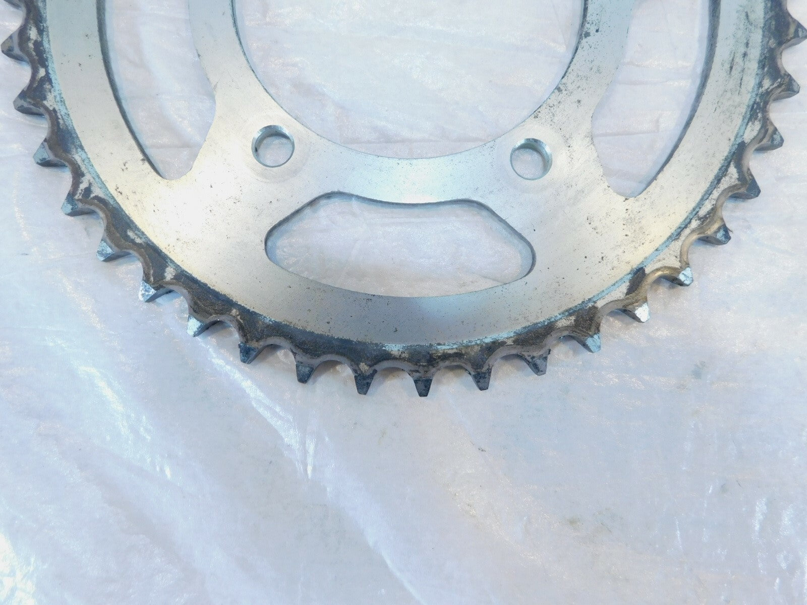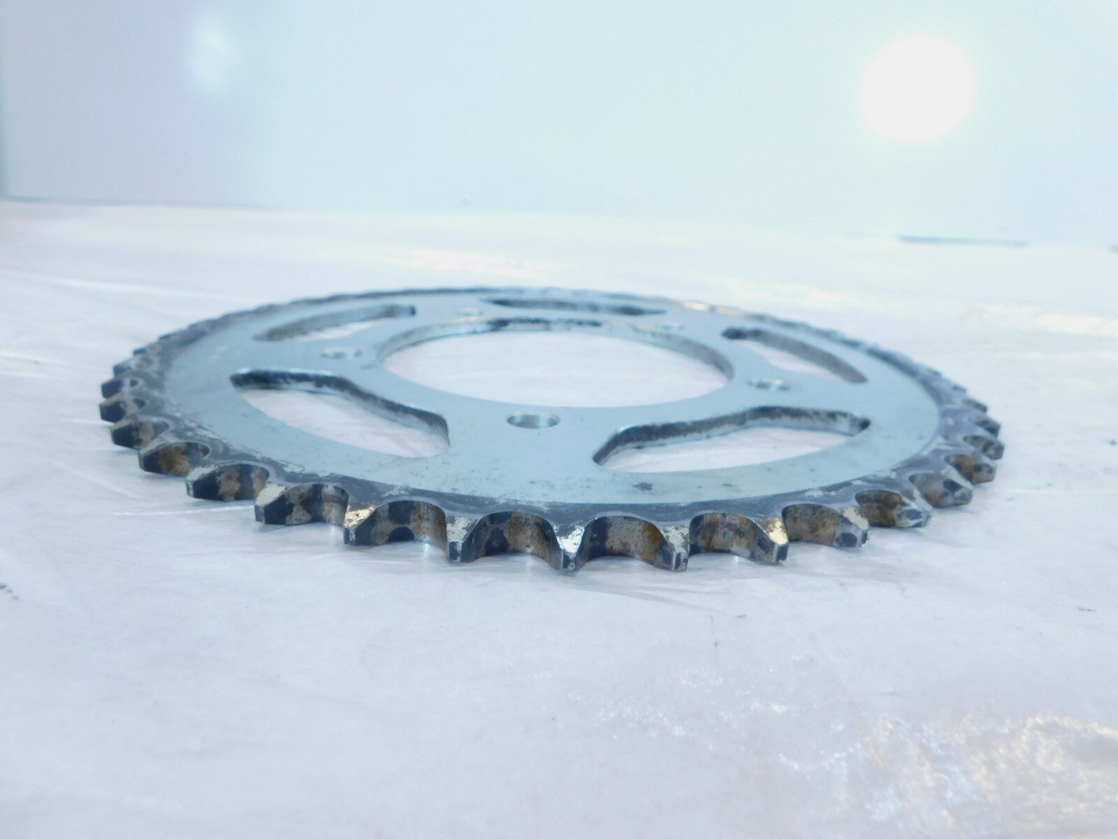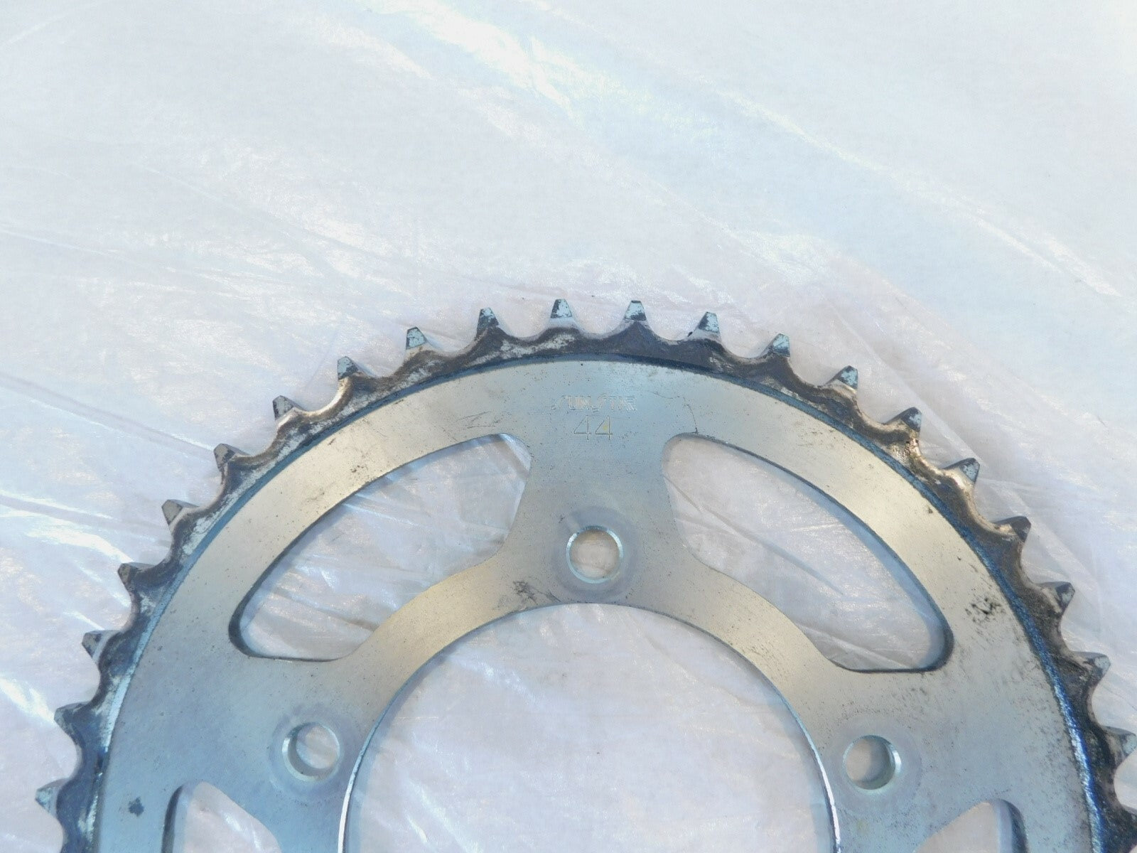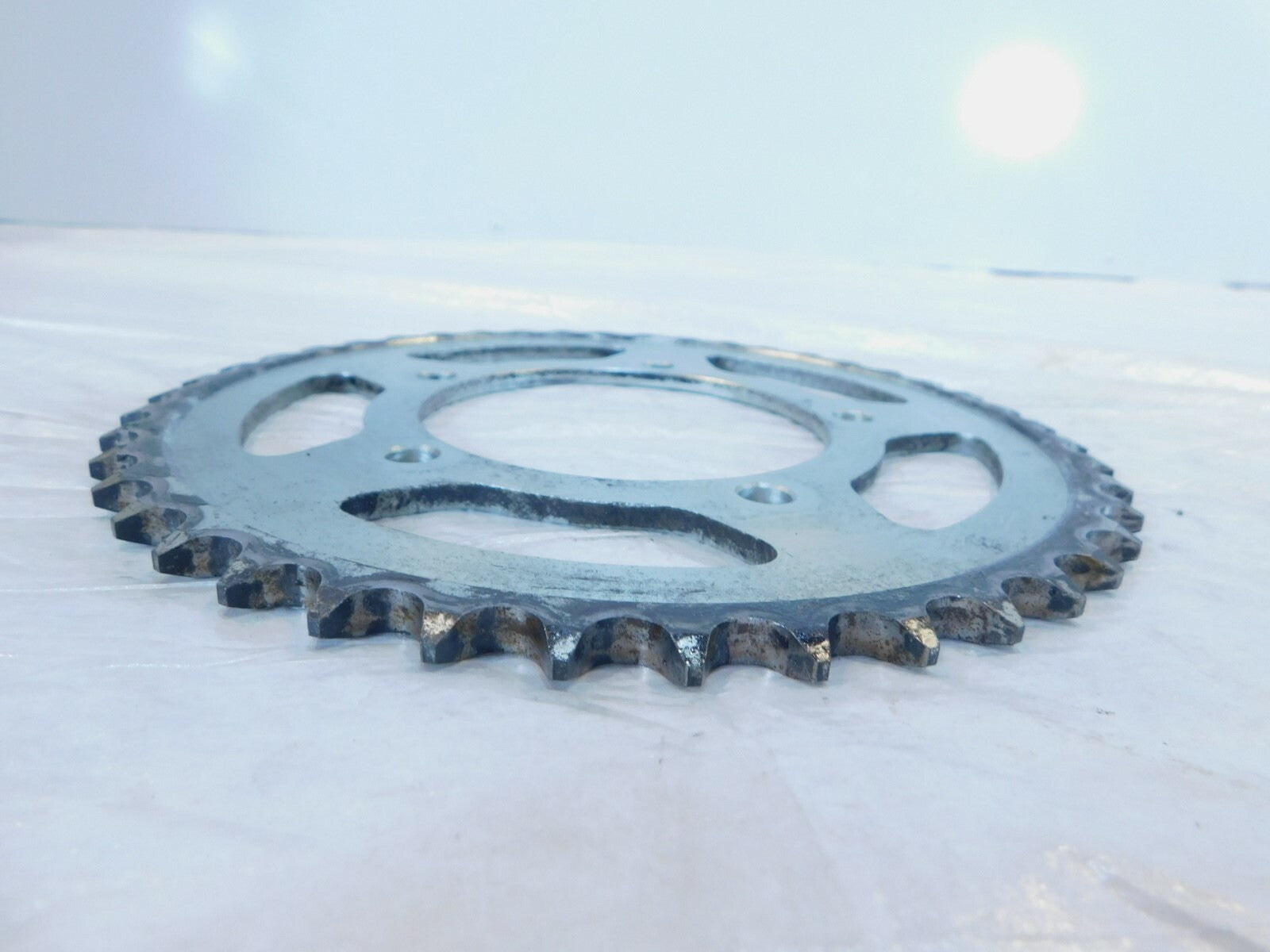 This is a used 44 tooth rear sprocket in good condition. It is dirty from previous use and storage but looks good. Part was removed from a 2013 US Shiver 750.