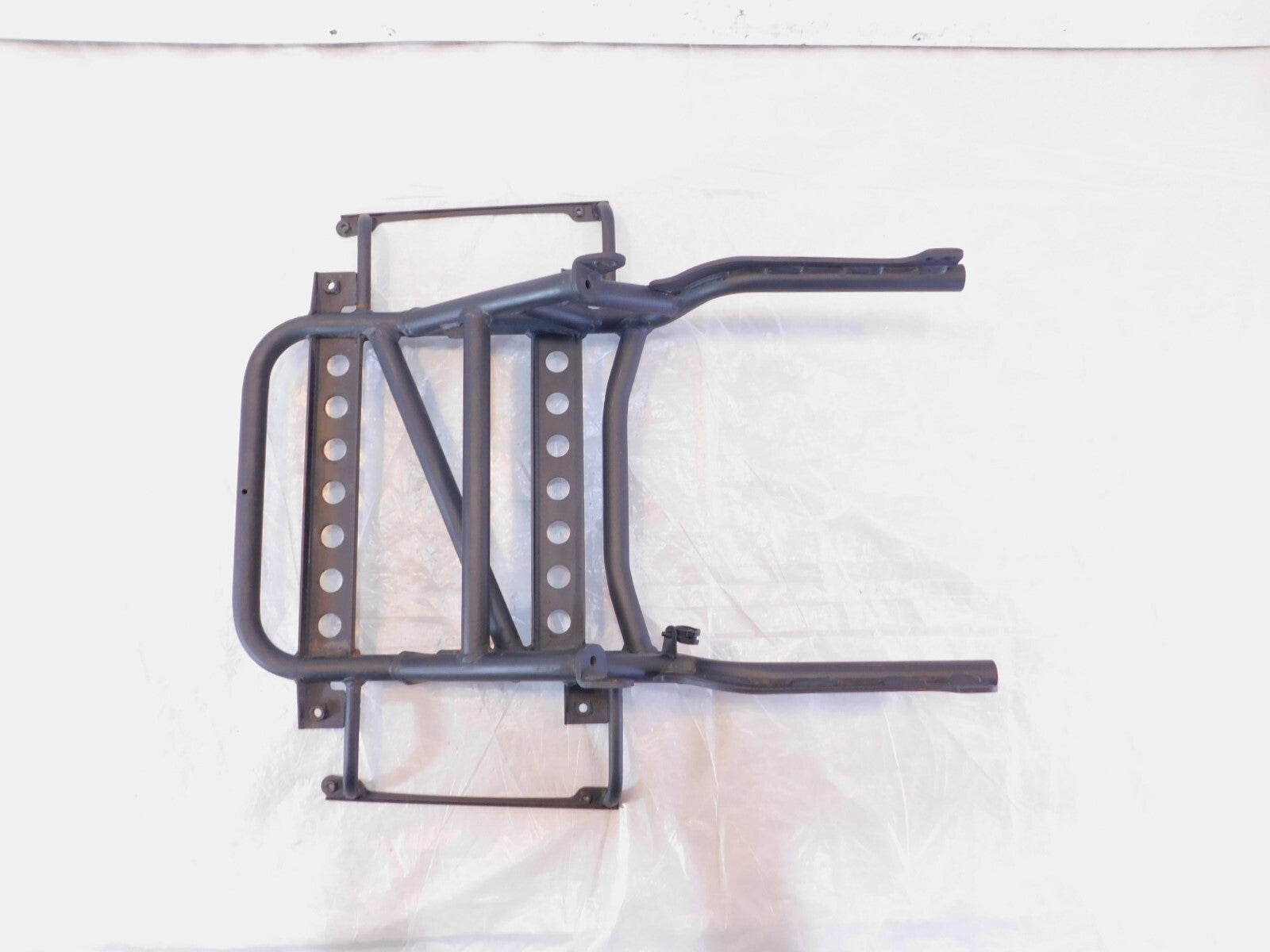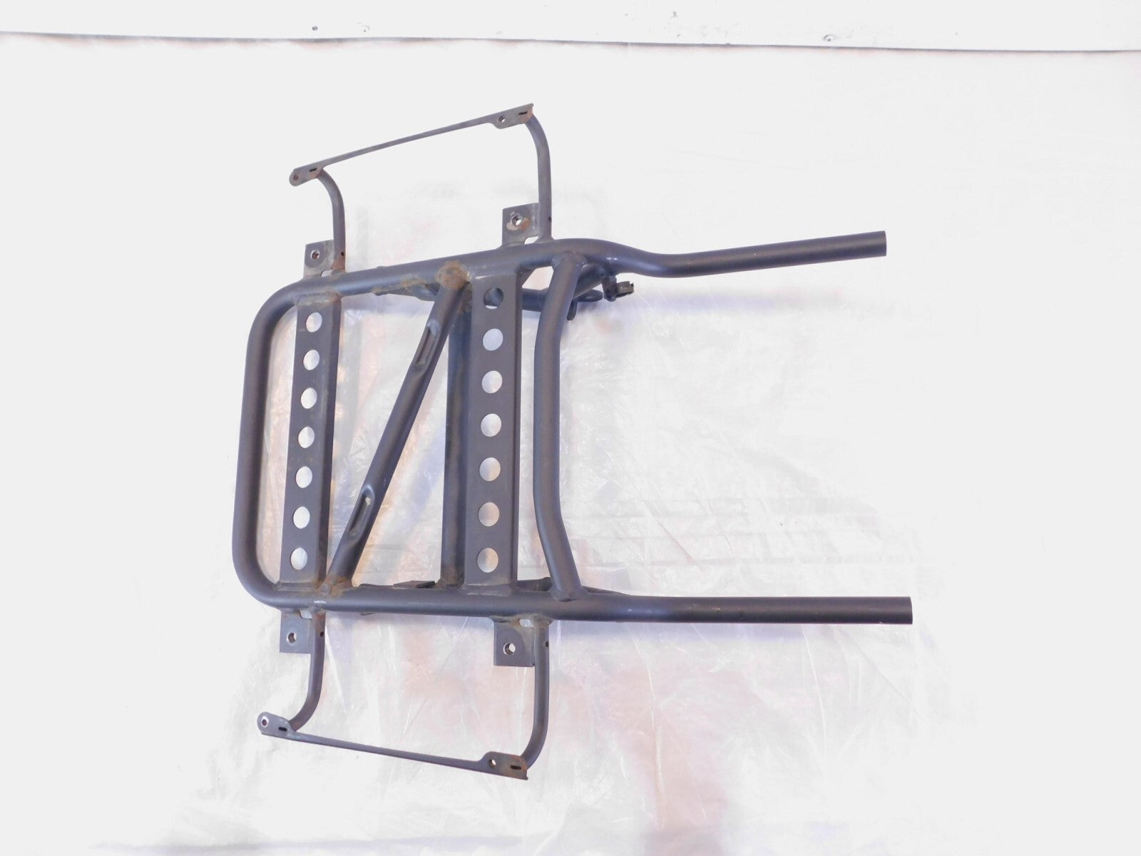 This is a used luggage rack in good condition. It is a little dirty and has light marks from previous use and there are some minor spots of surface rust (as pictured).