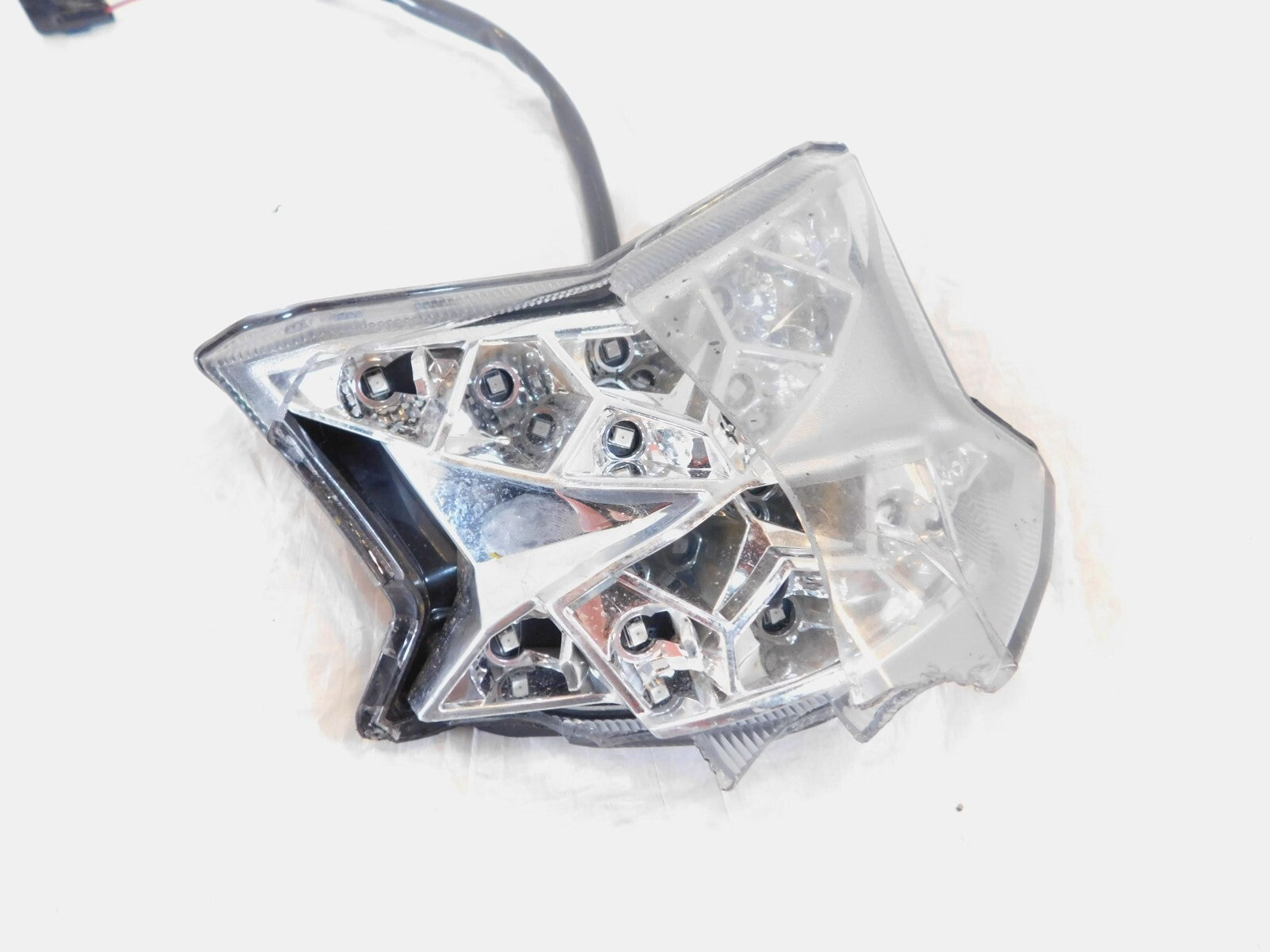 This is a used tail light. It is a little dirty from previous use and storage and the lens is significantly cracked (as pictured).