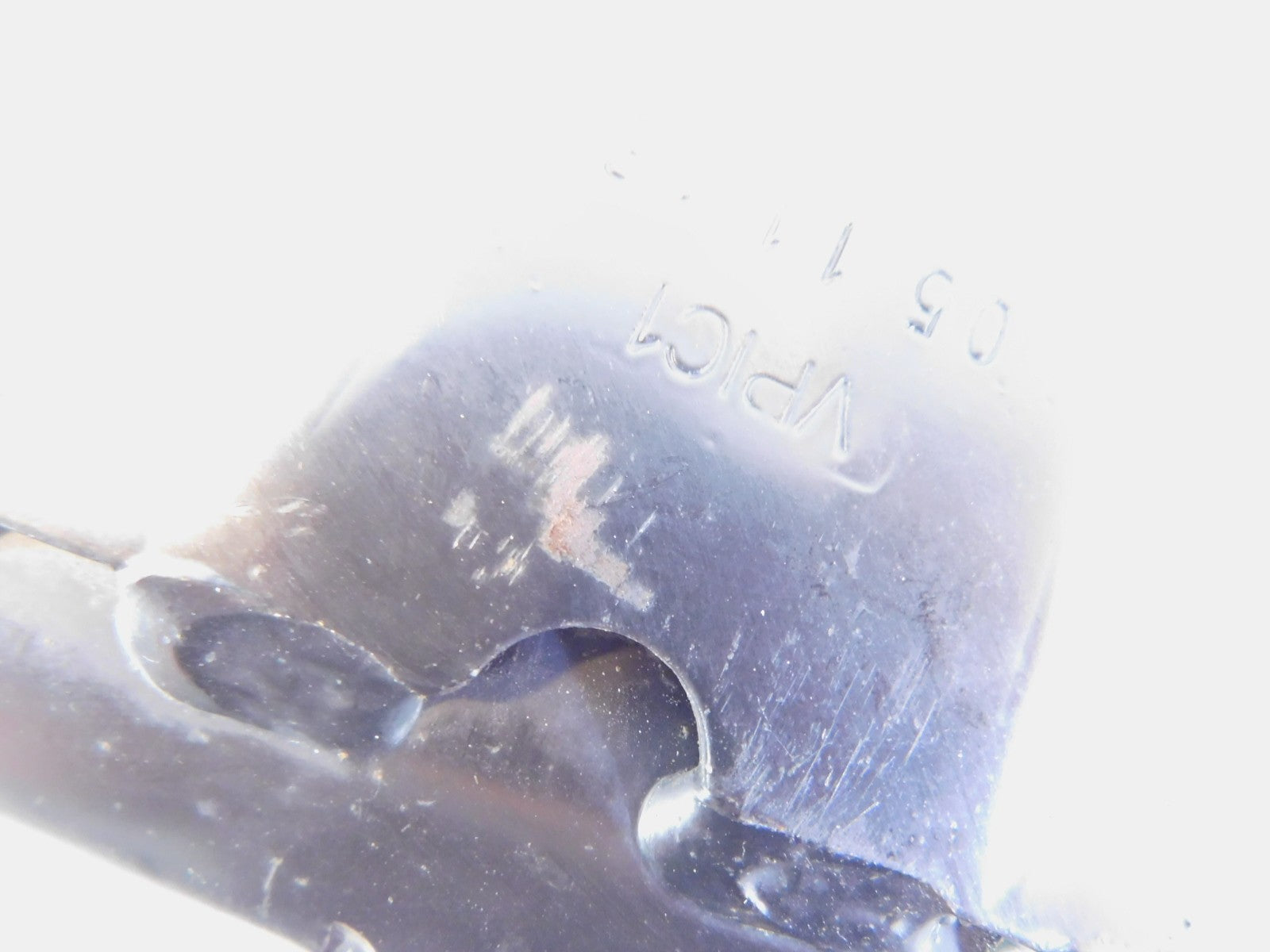 This is a used swingarm. It is a little dirty and there are some marks from previous use and storage. There is some wear and discoloration in the material, some scratches, nicks, and scuffs (as pictured).