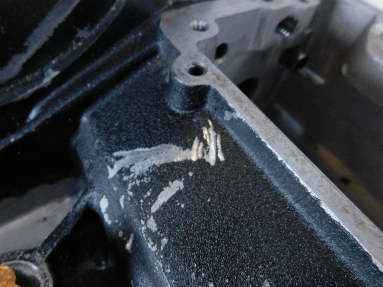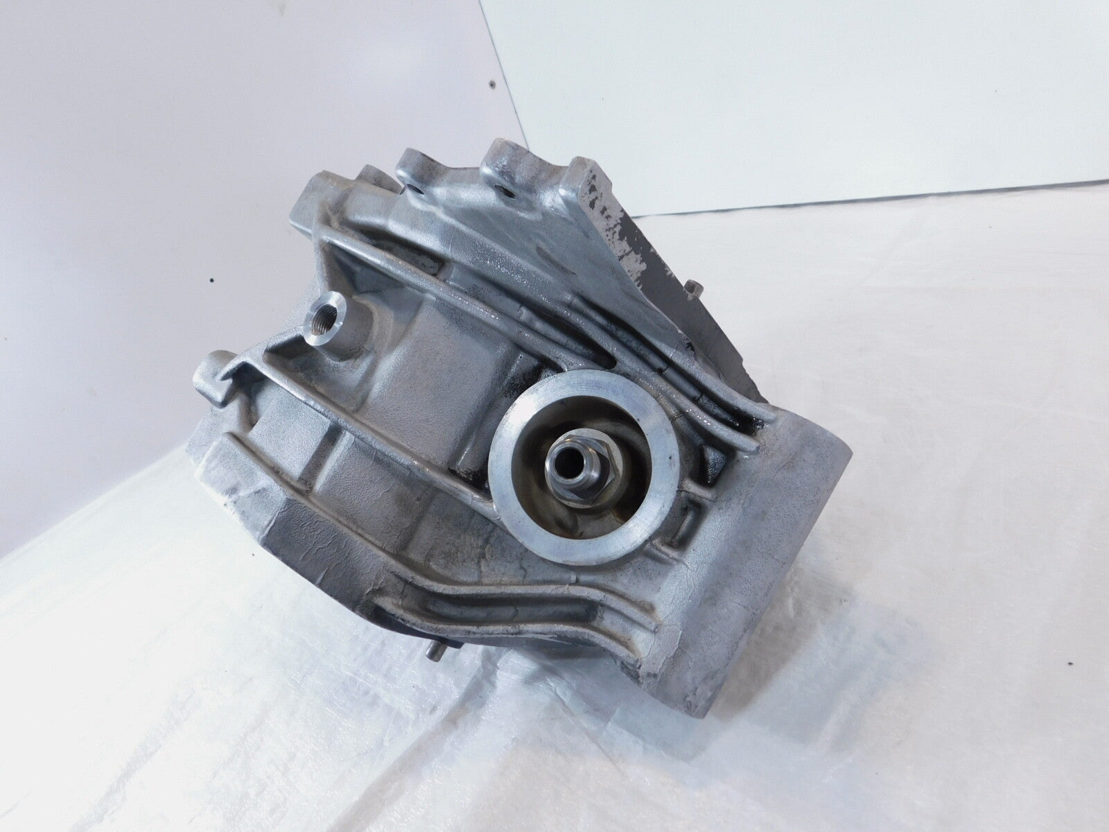 This is a used transmission housing. There are light marks from previous use and storage and it is dirty and discolored.