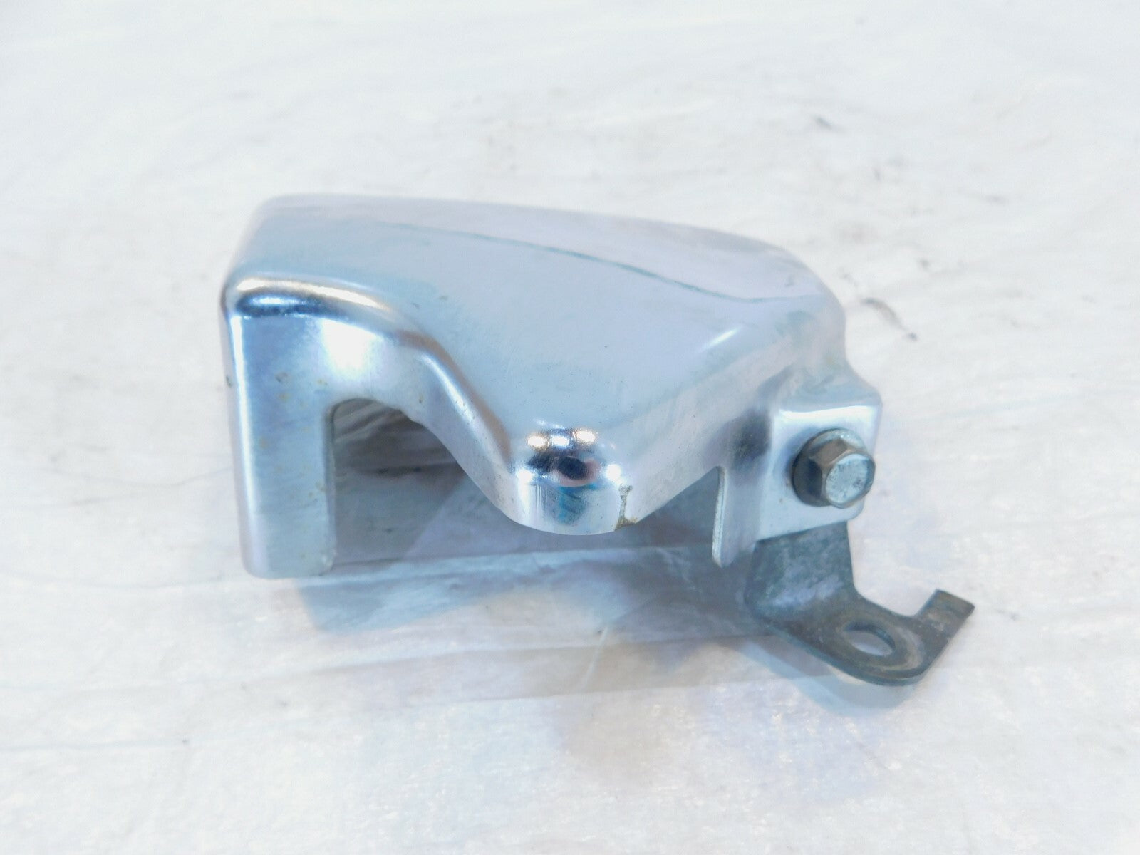 This is a used rear master cylinder cover in good condition. It is a little dirty from previous use and storage and it has some pitting and surface rust (as pictured).