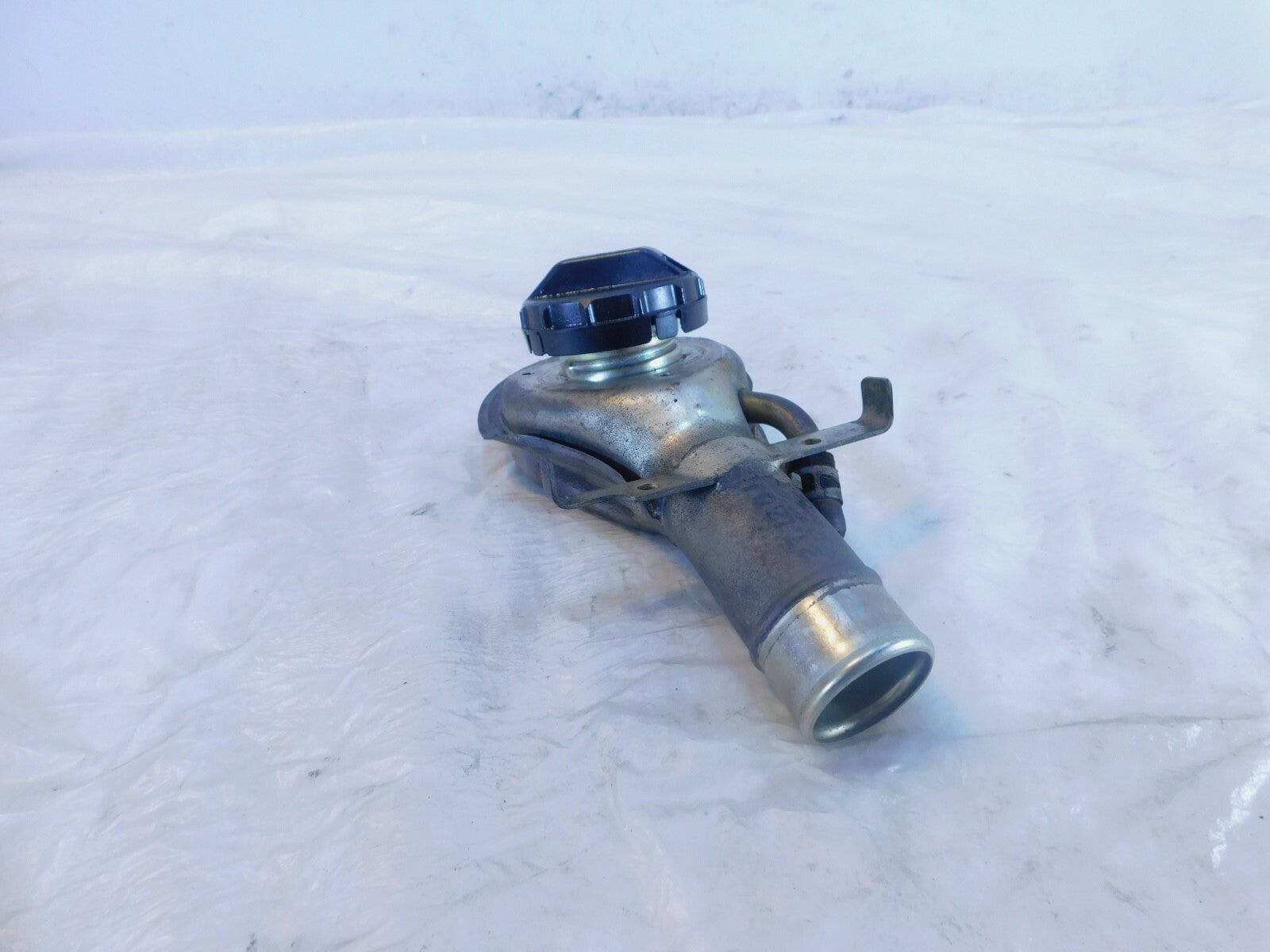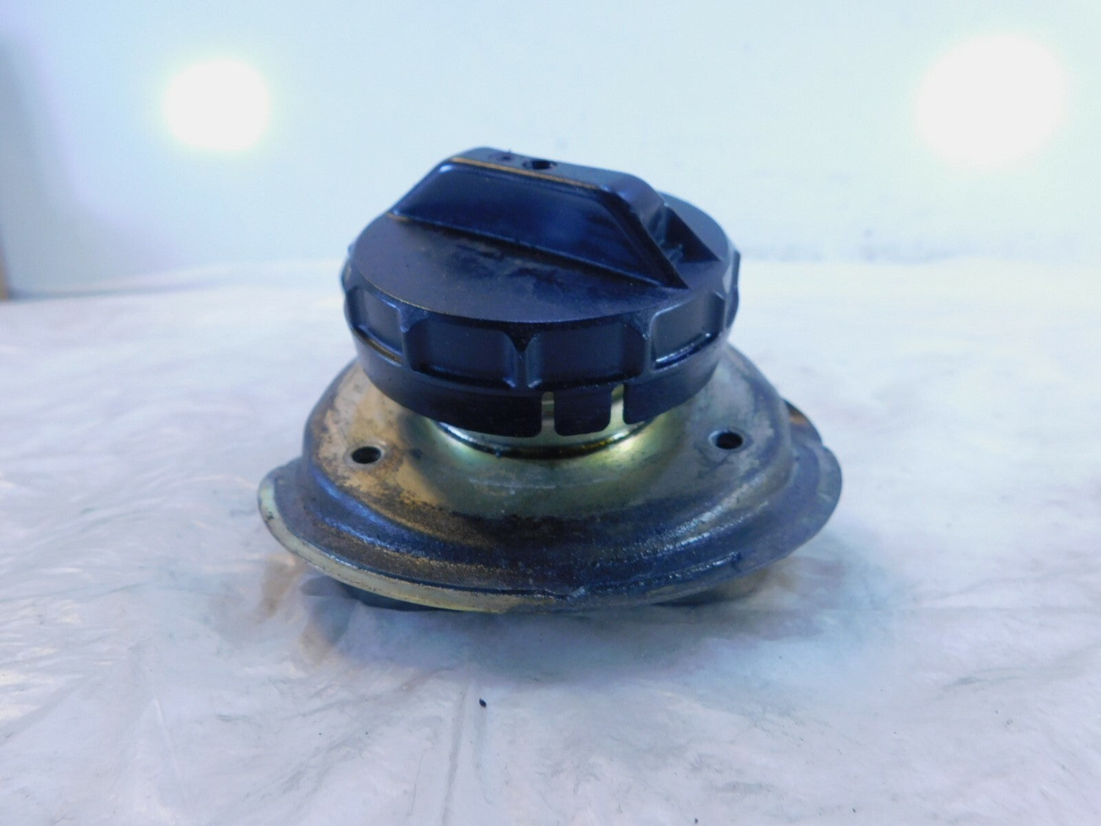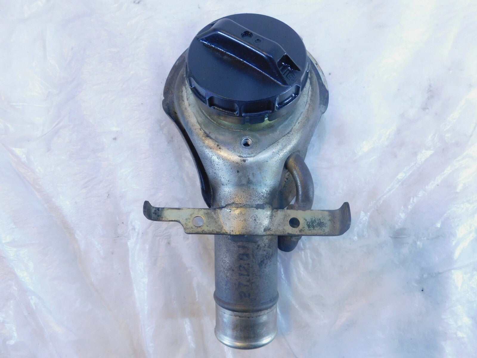 This is a used gas tank inlet in good condition. It is a little dirty and has some light marks from previous use and storage but looks good.