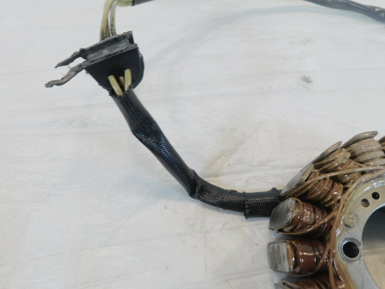 This is a used stator coil. It is dirty and has some marks from previous use and storage and the connector is broken in one area and will need to be replaced(as pictured). This part was removed from a 1999 Ducati 900 but could fit other years and models.