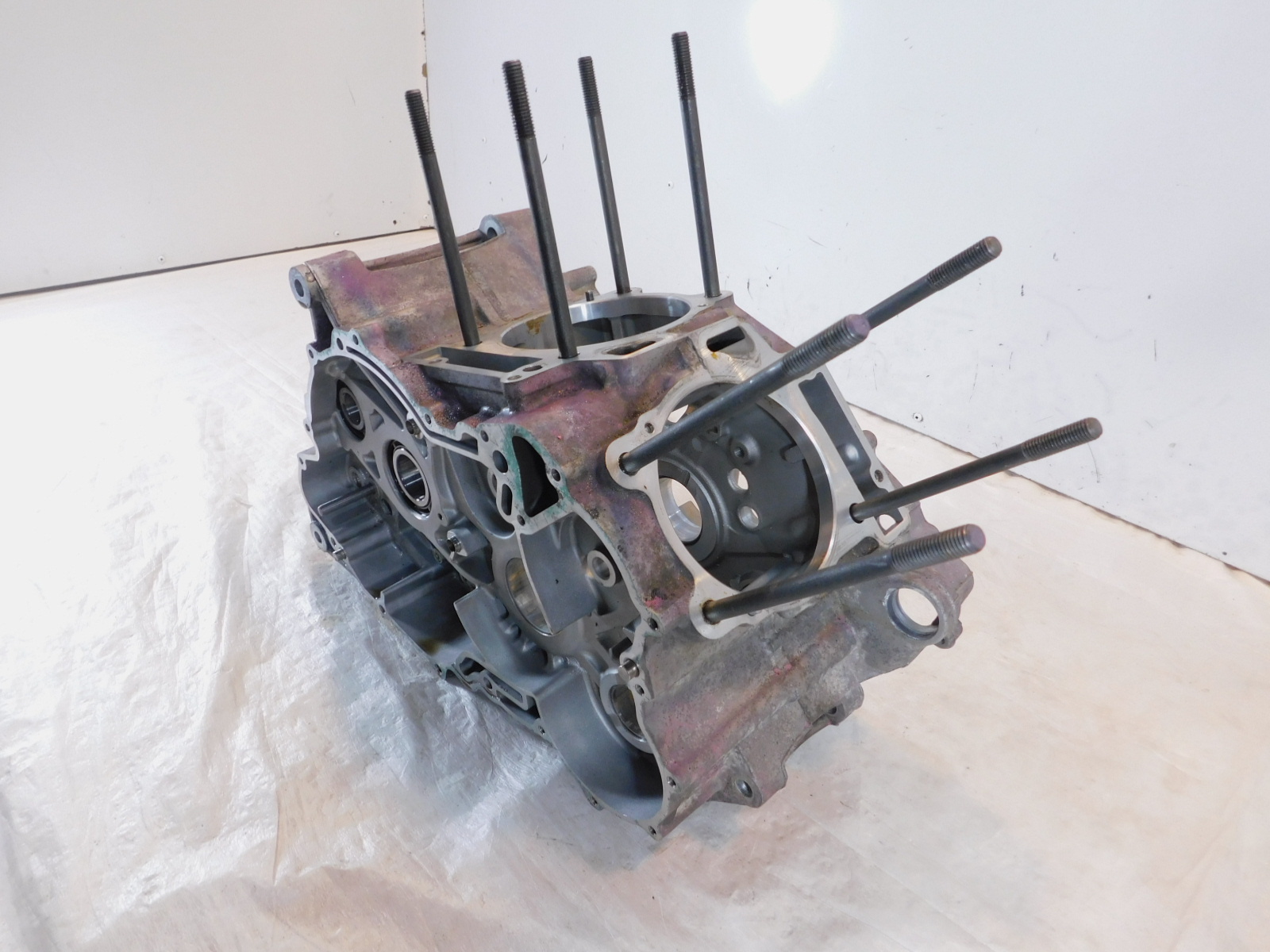 • Condition Description: This is a used crankcase. It is dirty and discolored from previous use and there are spots of pitting, scratching and spray paint (as pictured). Part was removed from a 2008 US Tuono 1000.