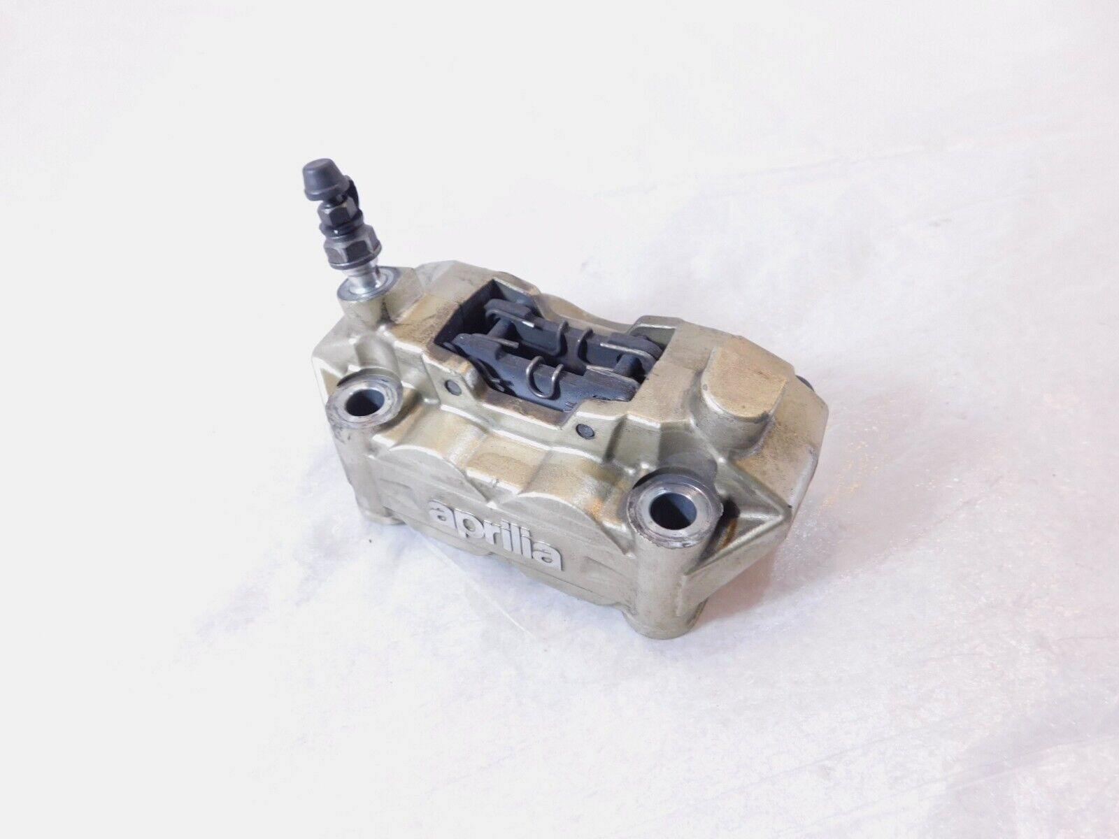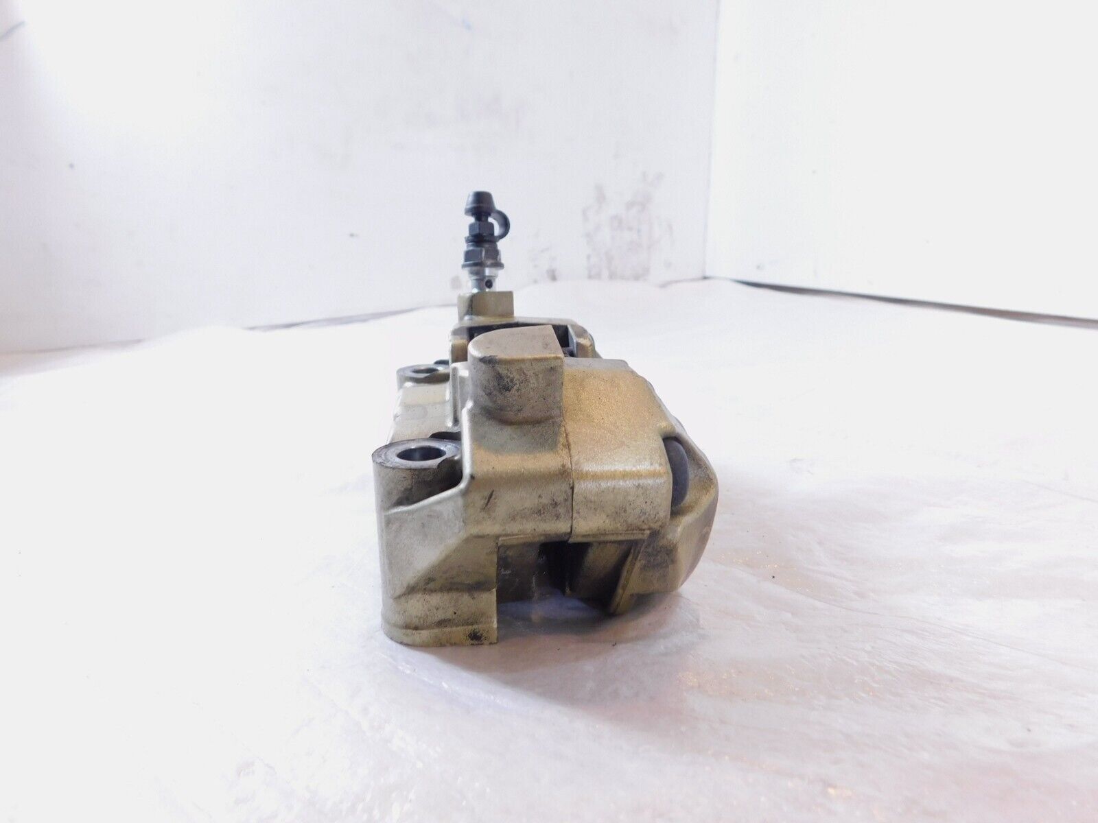 This is a used front wheel caliper in good condition. It is a little dirty from previous use and storage and there are some minor spots of surface rust and discoloration (as pictured).