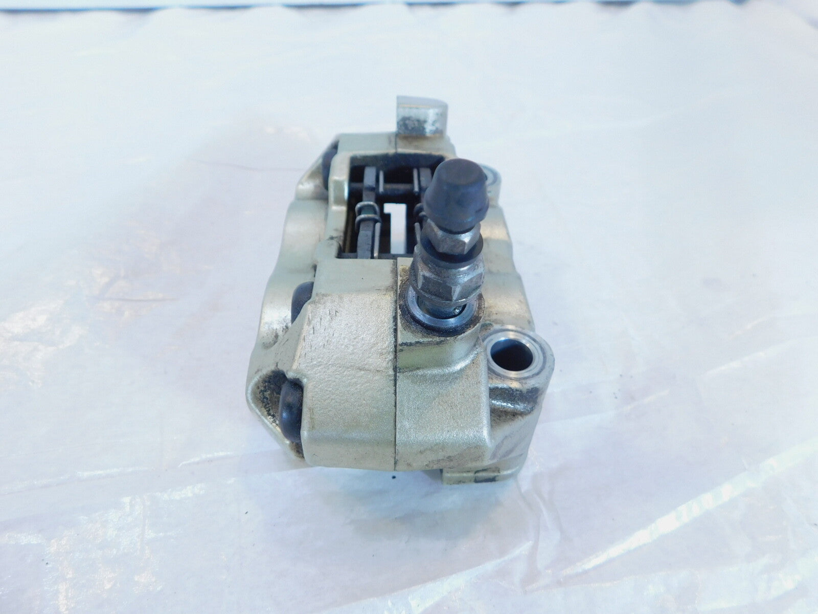 This is a used front wheel caliper in good condition. It is a little dirty from previous use and storage and there are some marks in the paint (as pictured).