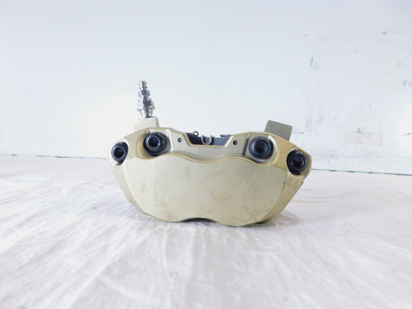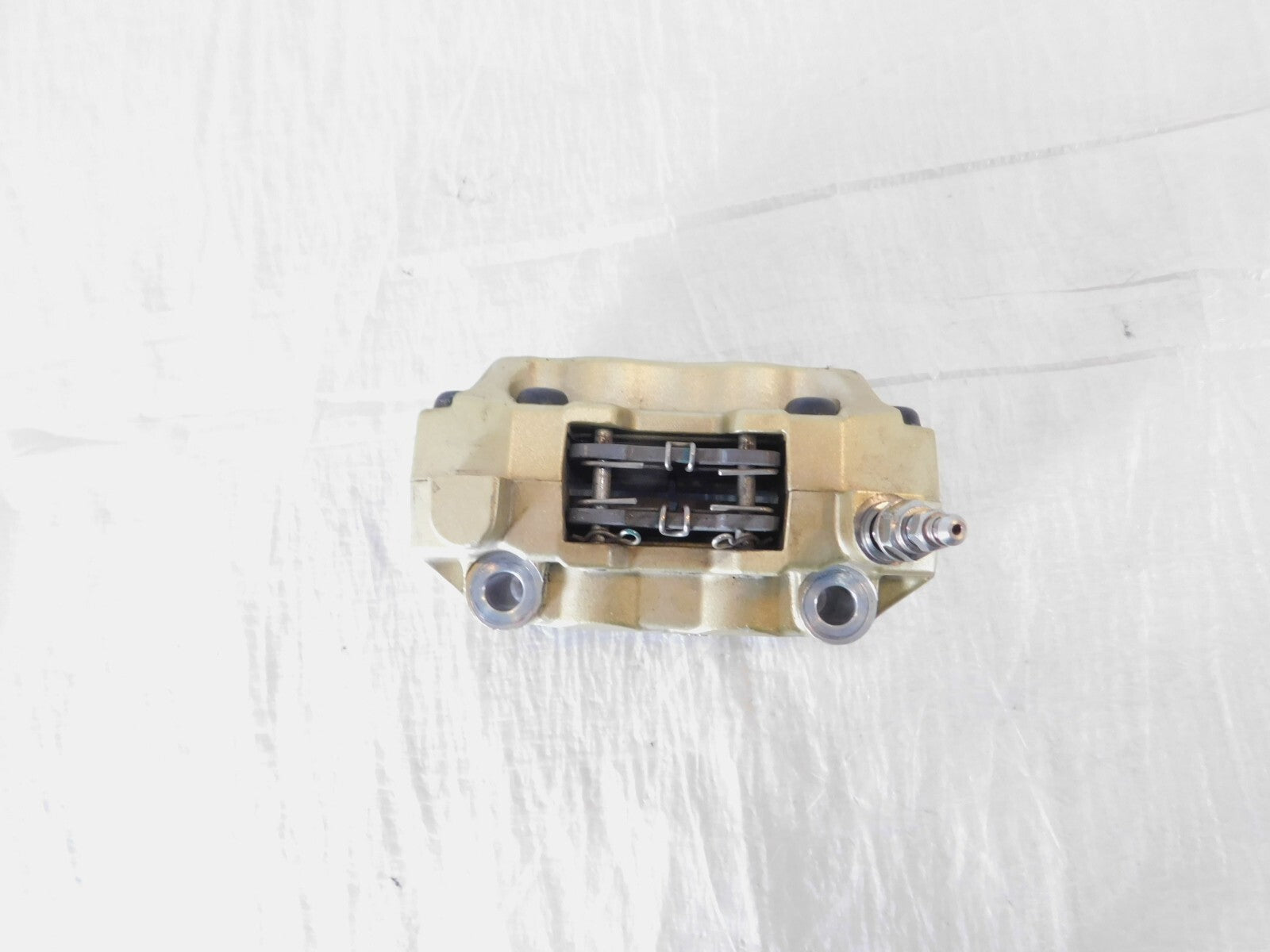 This is a used front wheel caliper in good condition. It is a little dirty from previous use and storage and there are some minor scratches and discolorations (as pictured).