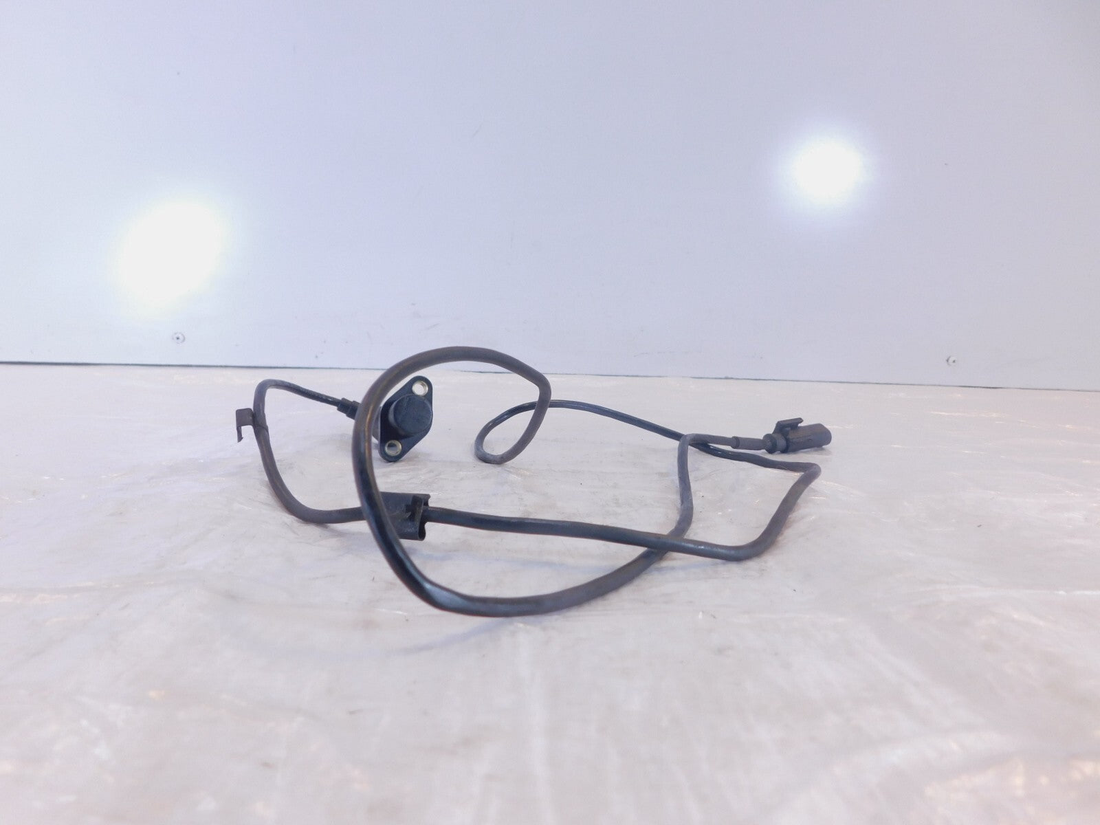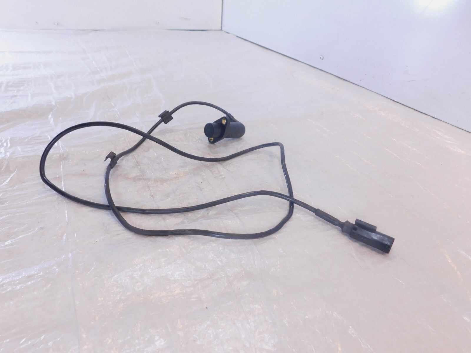 This is a used speed sensor. It is a little dirty from previous use and storage and the connector is broken (as pictured).