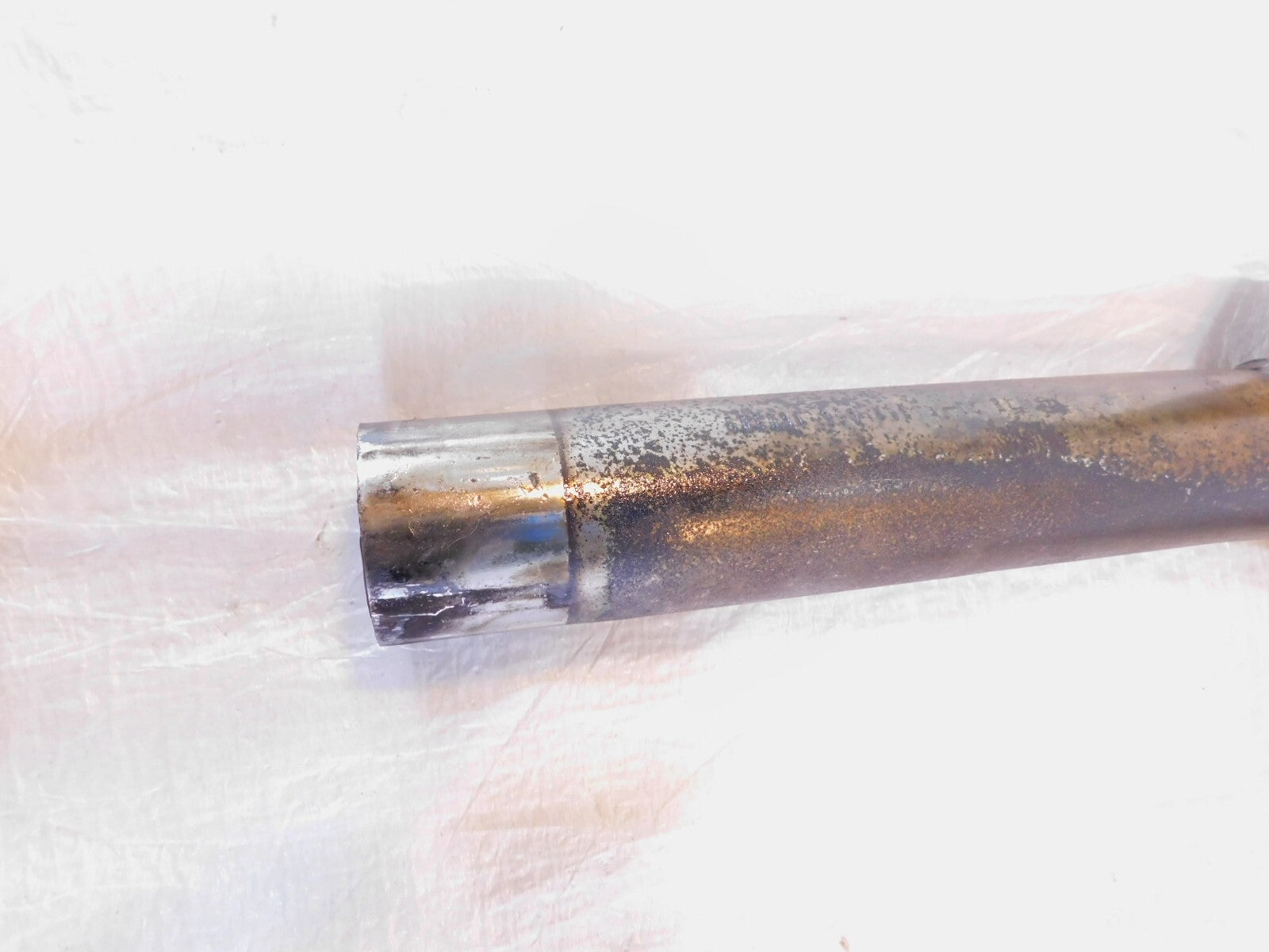 This is a used header. It is a little dirty from previous use and storage and has scuffs and surface rust (as pictured).