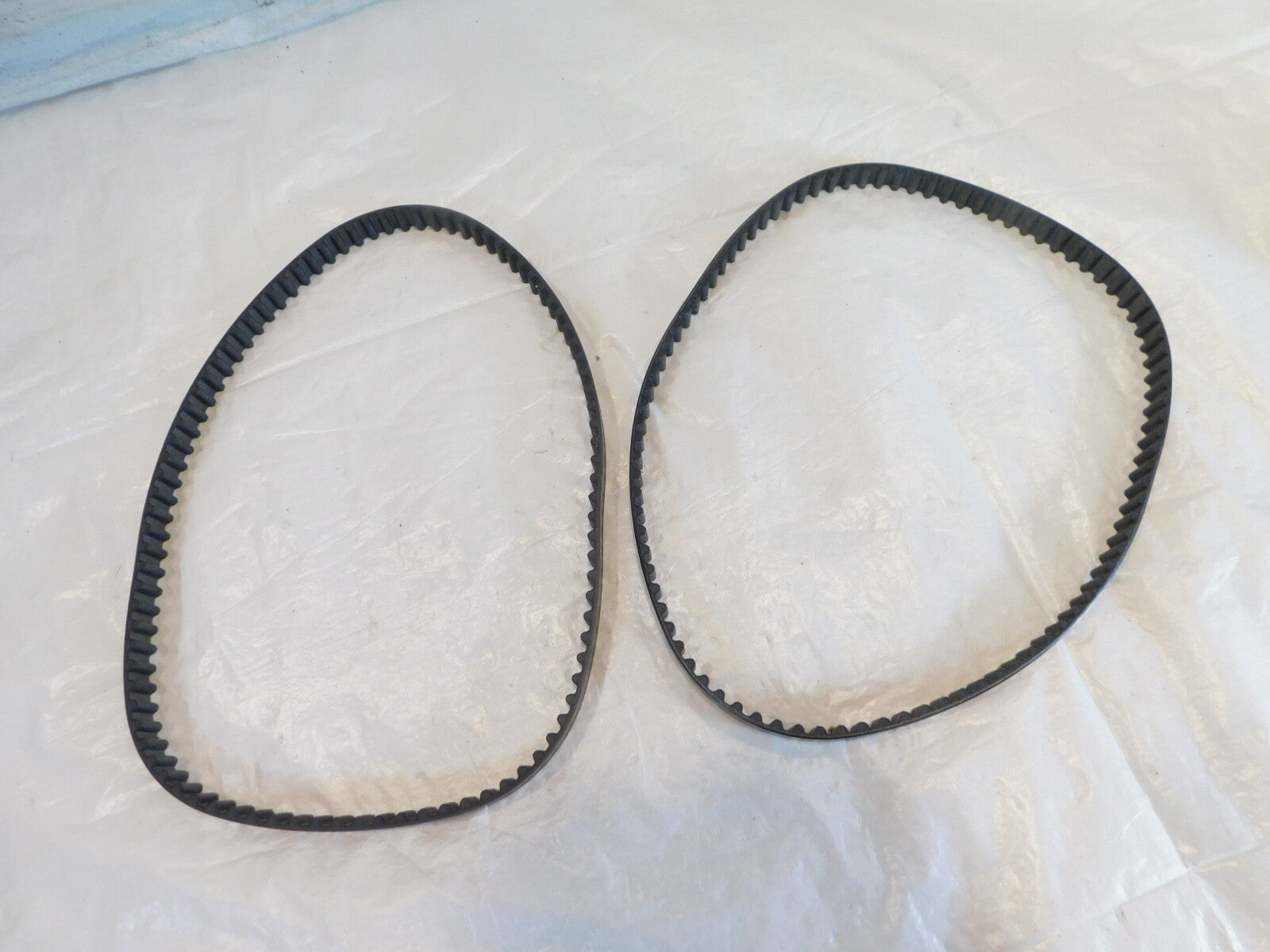 These are a used pair of timing belts in good condition. They are a little dirty from previous use and storage but look good.