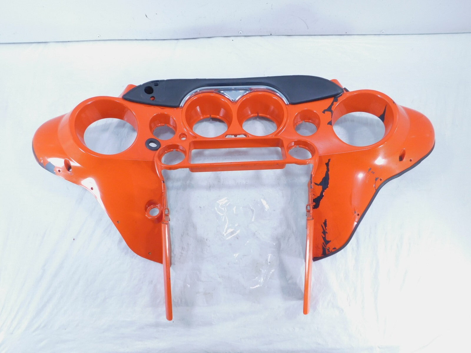 This is a used inner fairing. There are some light marks from previous use and storage, chips if the paint and large cracks and scuffs (as pictured).
