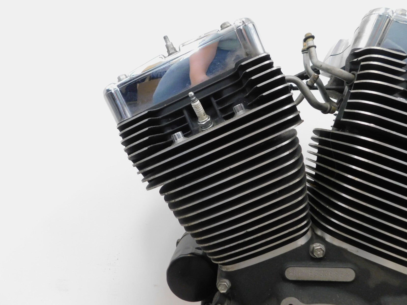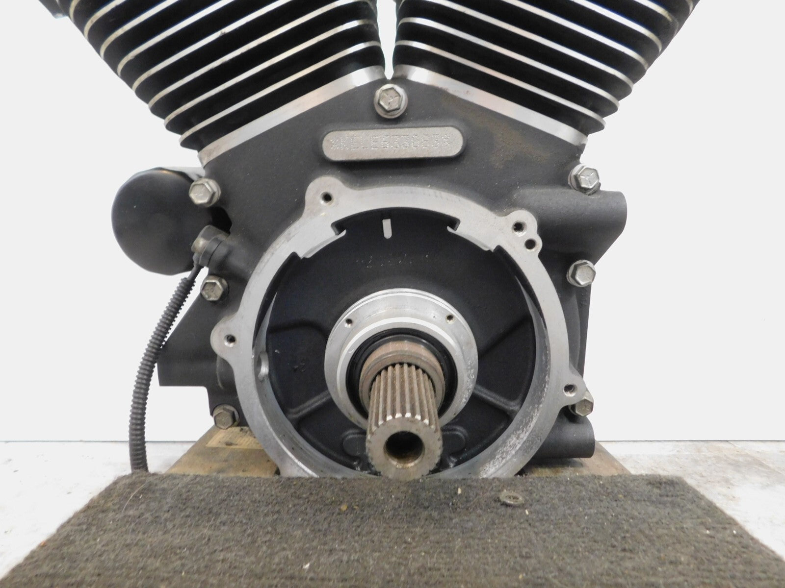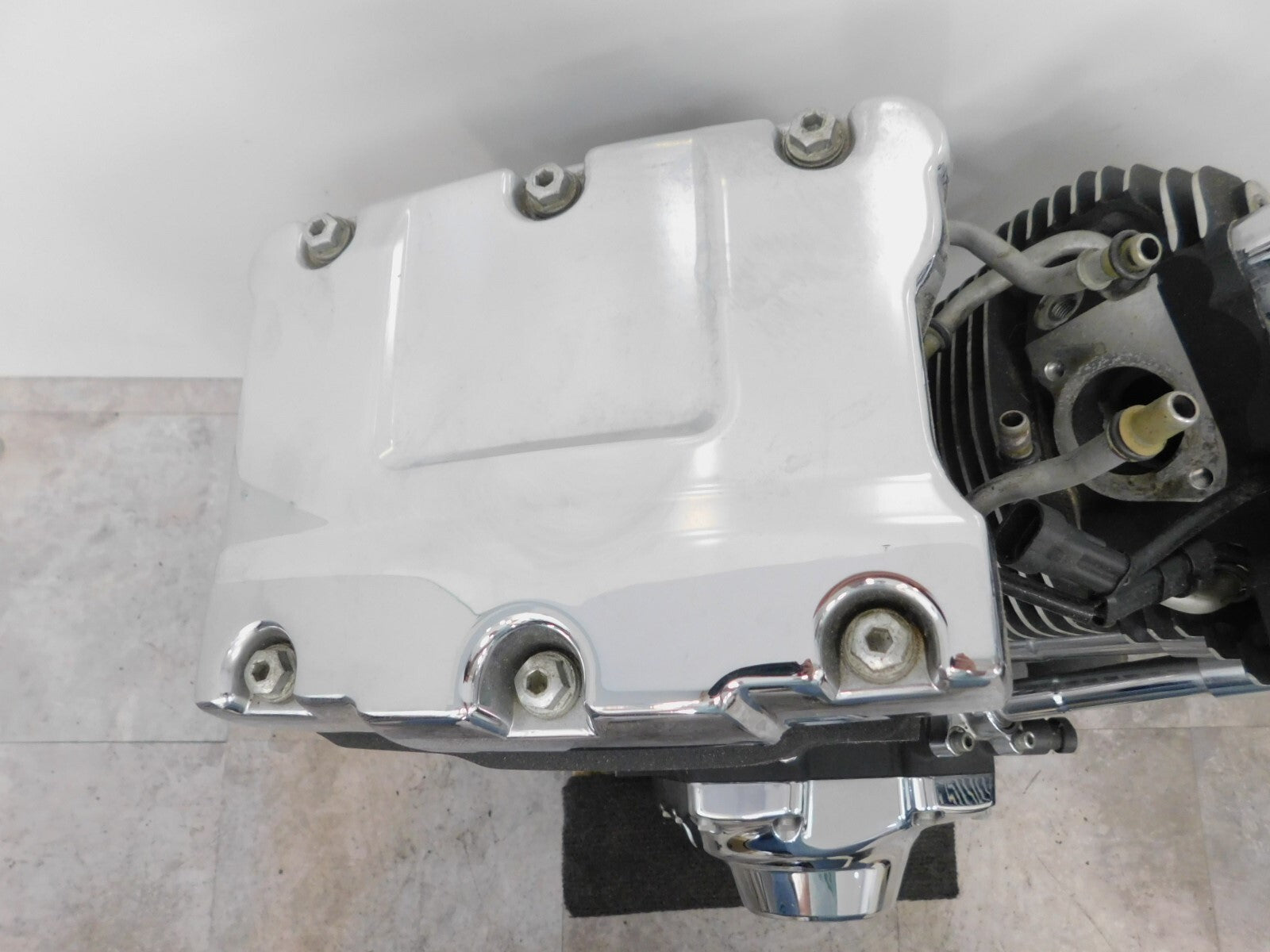 This is a used engine in good condition. There are some light marks from previous use and storage and there is pitting and pitting of the chrome on the covers and chipping of the paint.