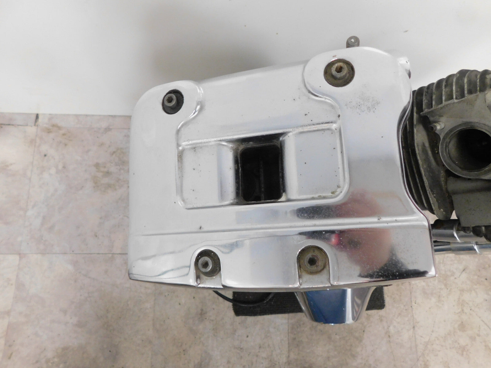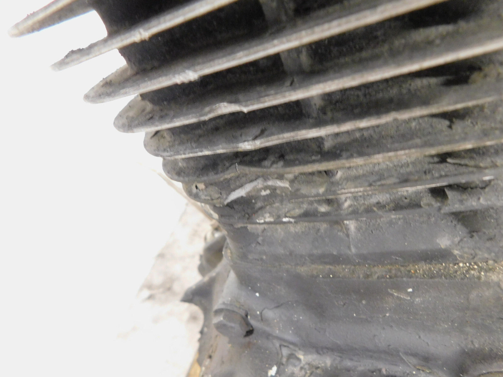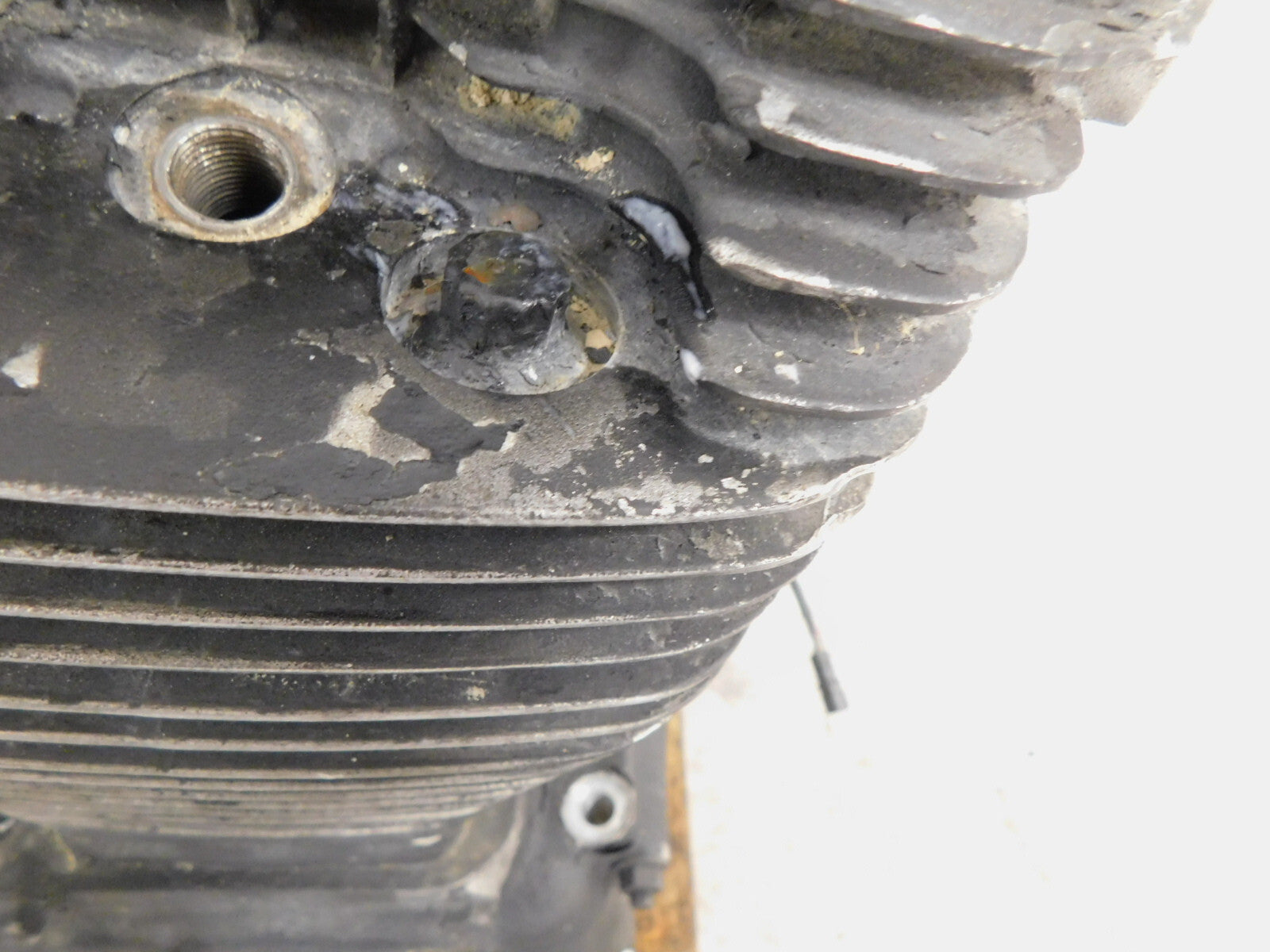 This is a used engine. There are some light marks from previous use and storage and there is pitting and chipping of the chrome on the covers and chipping of the paint. There is chipping of the fins, and the front motor mount is broken off (as pictured). Since the front motor mount is broken this engine is sold for repair only.
