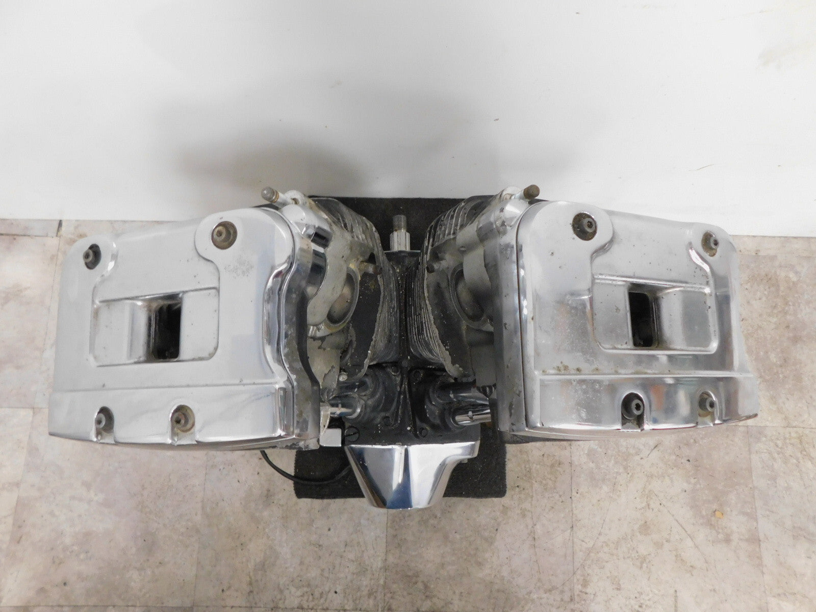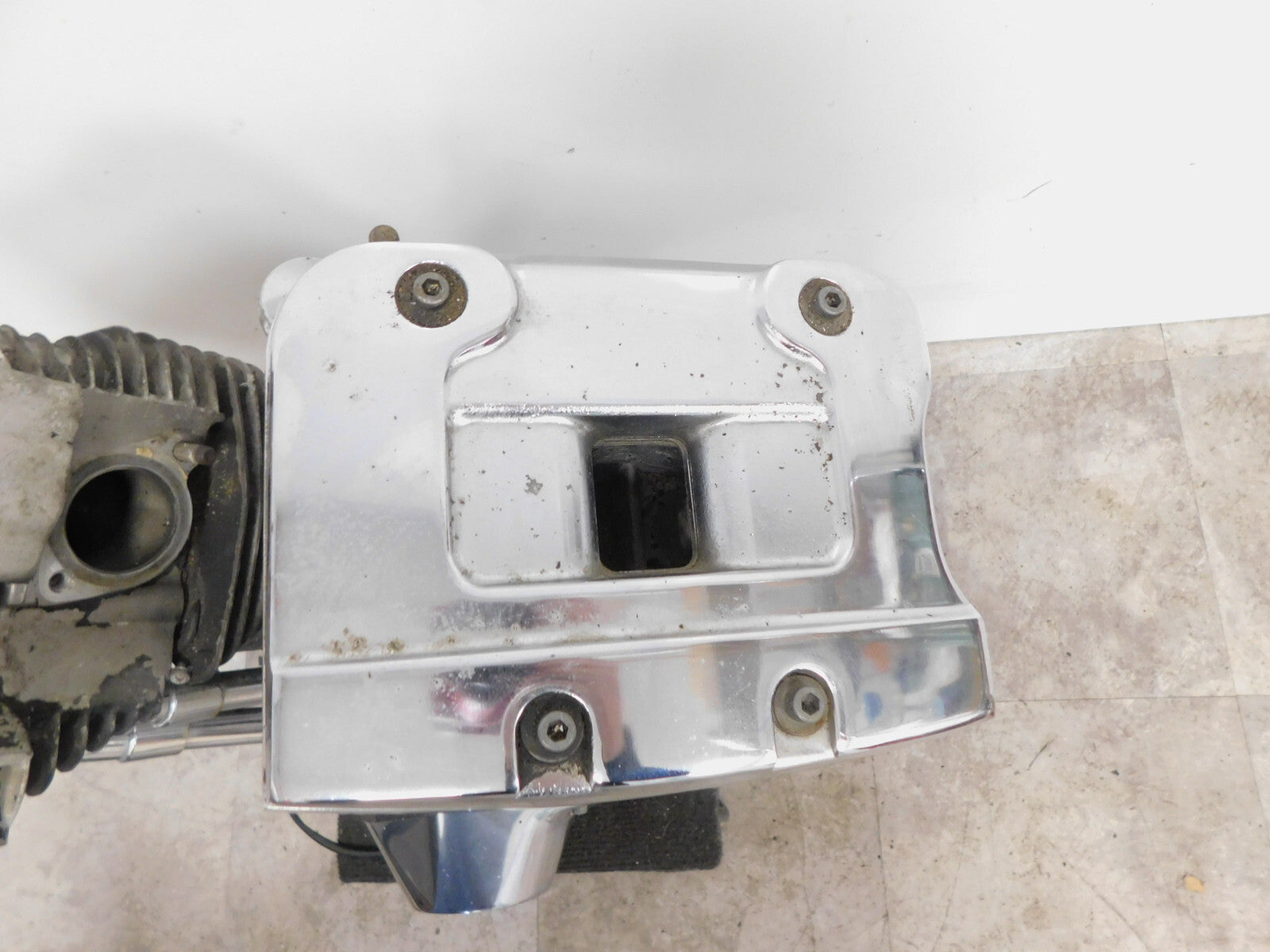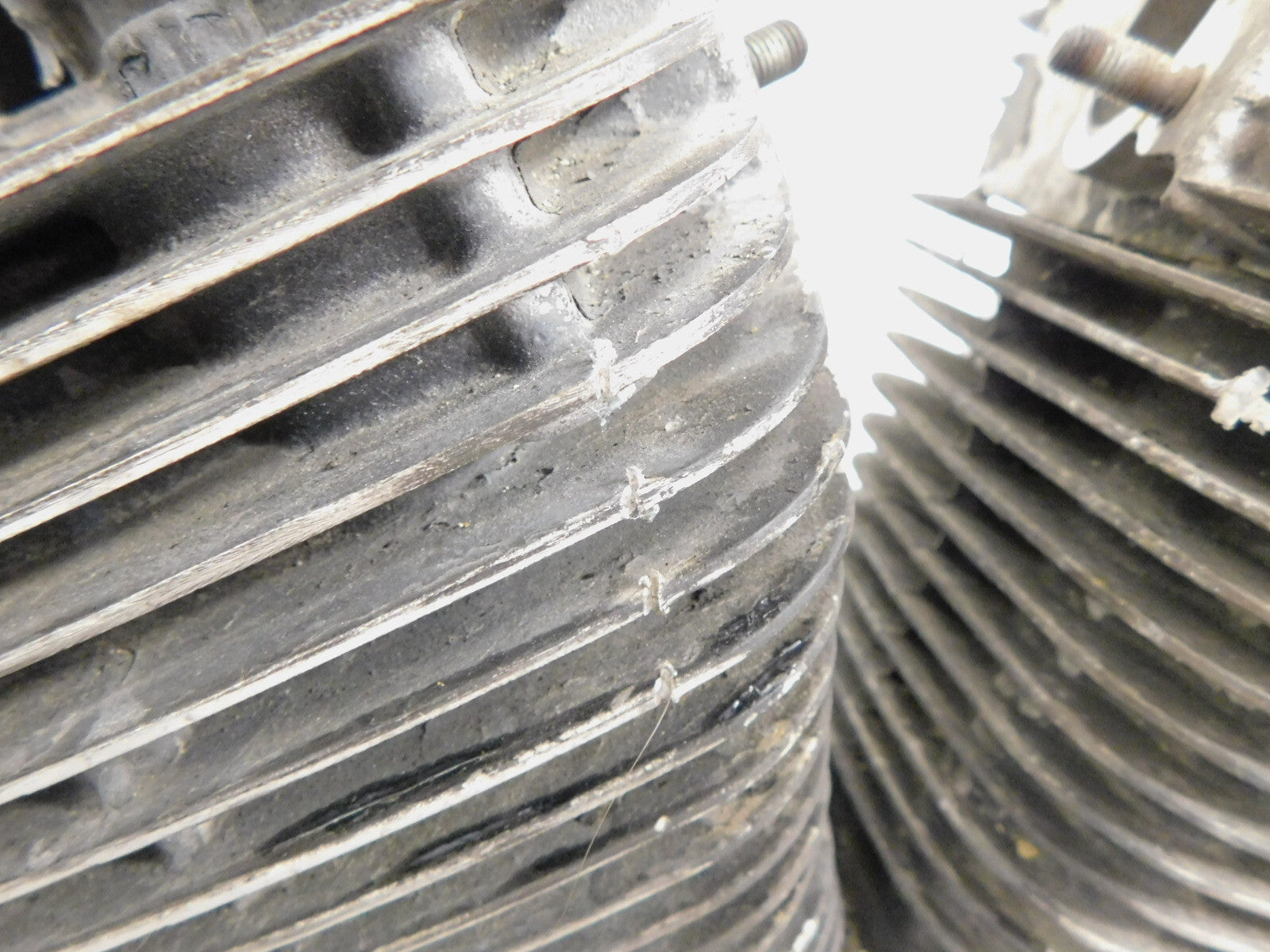 This is a used engine. There are some light marks from previous use and storage and there is pitting and chipping of the chrome on the covers and chipping of the paint. There is chipping of the fins, and the front motor mount is broken off (as pictured). Since the front motor mount is broken this engine is sold for repair only.