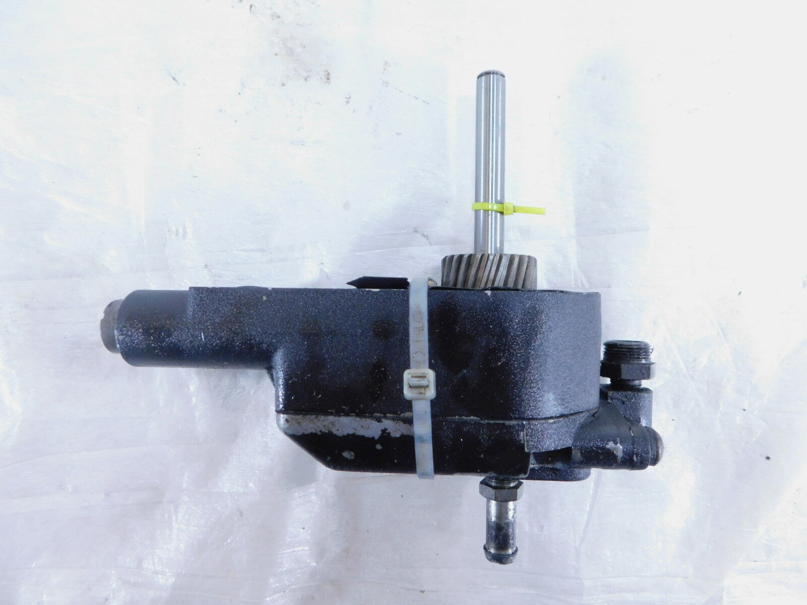 This is a used oil pump. It is pretty dirty from previous use and storage and has some chipped paint(as pictured).