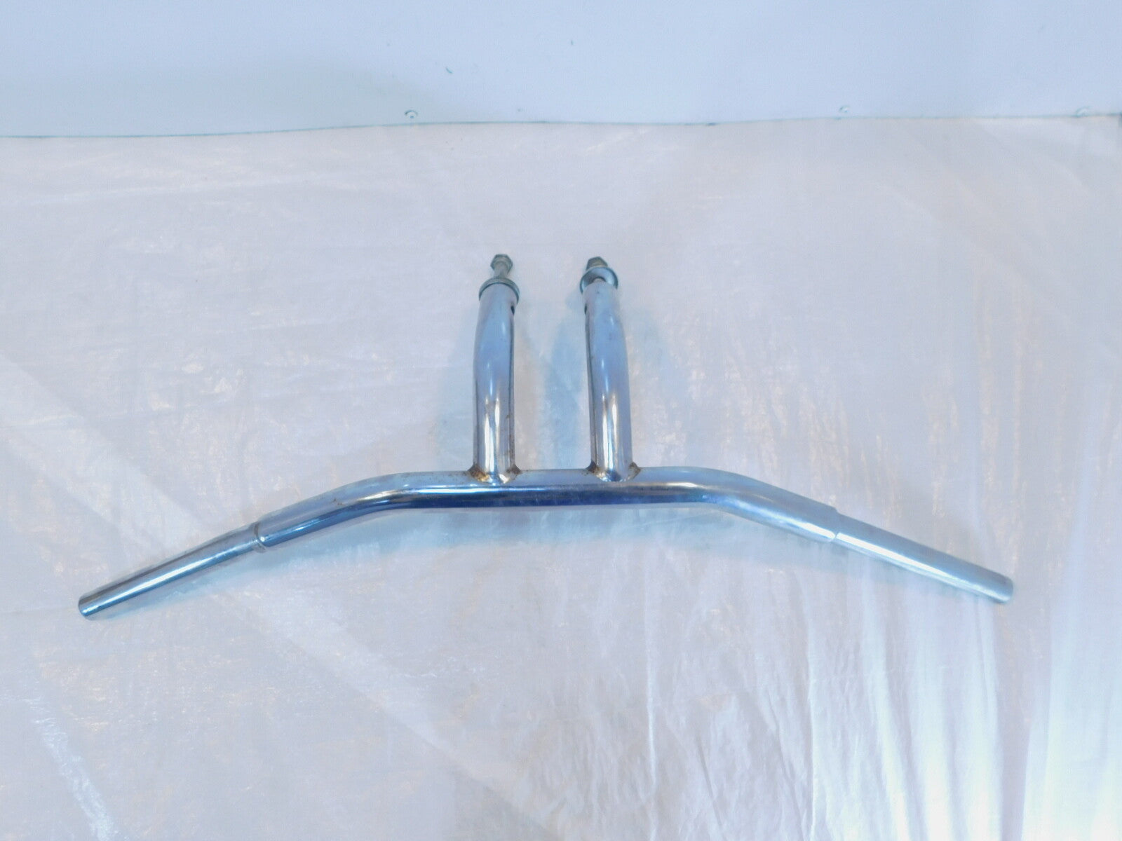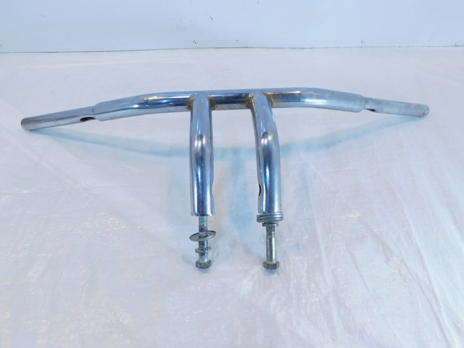 This is a used handlebars in good condition. There are some light marks from previous use but they are a little dirty but they look good. Bars may be slightly bent. Please see measurements to see if these bars will fit your application.