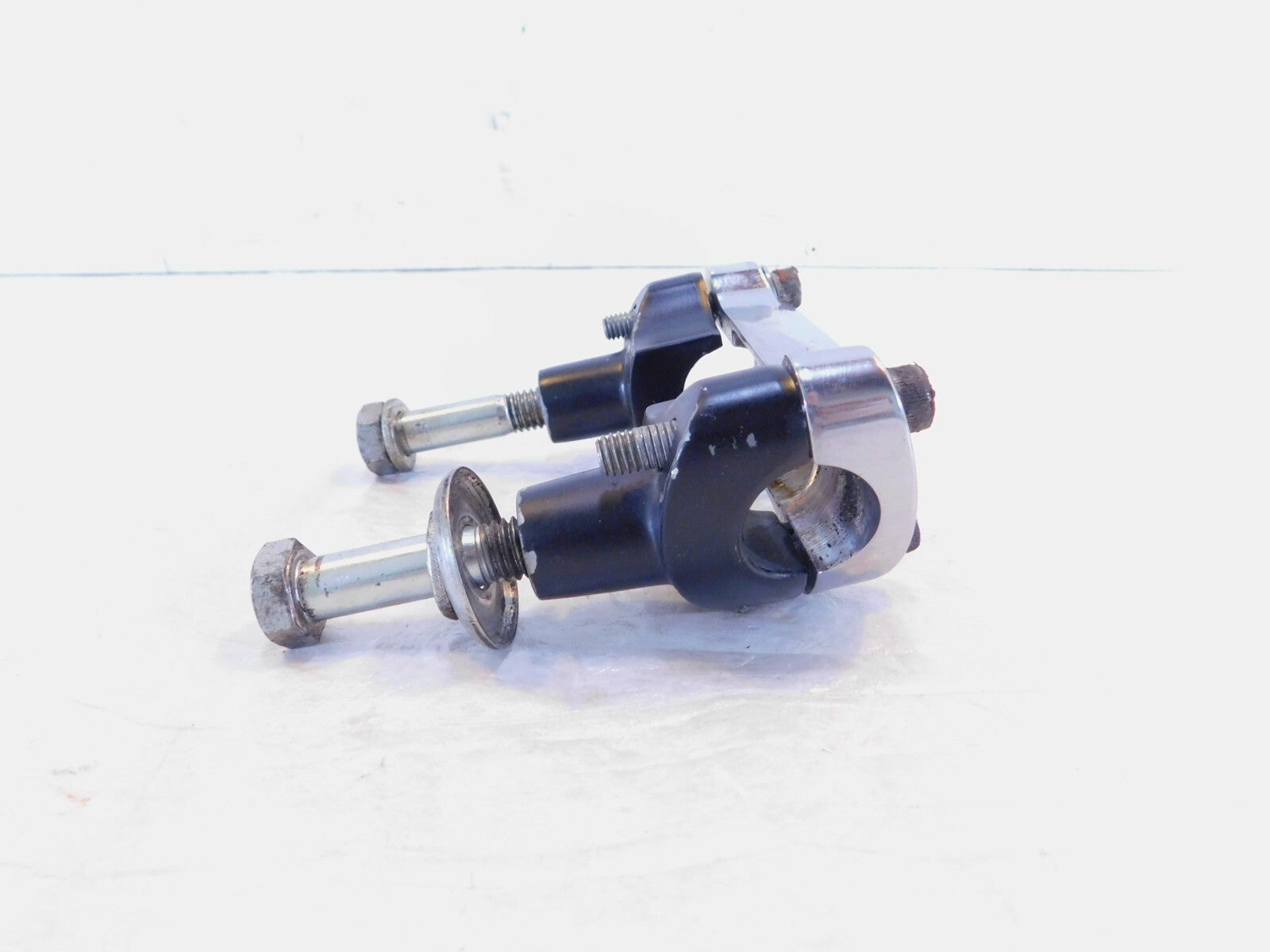 This is a used set of handlebar riser clamps. They are dirty from previous use and storage and there is some pitting in the chrome (as pictured).