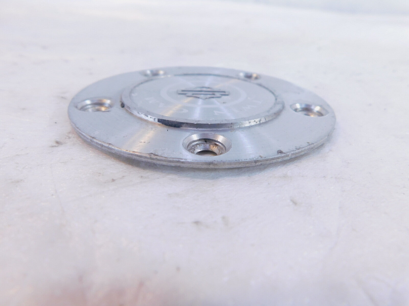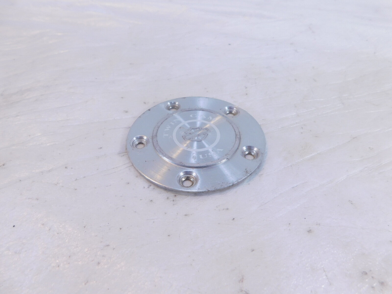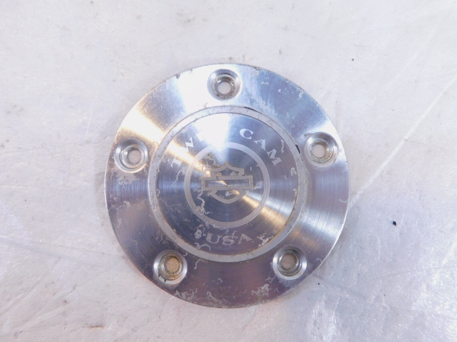 This is a used twin cam timer cover in good condition. It is dirty and has some light marks from previous use and storage and has some pitting(as pictured).