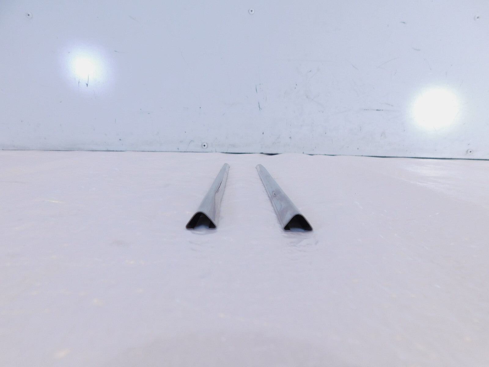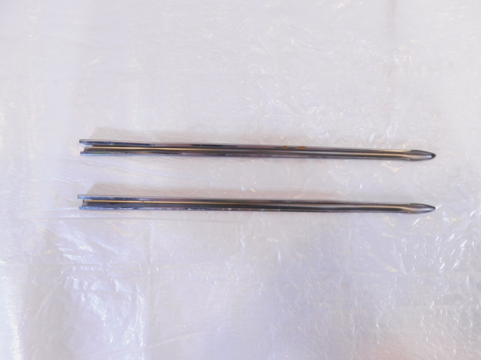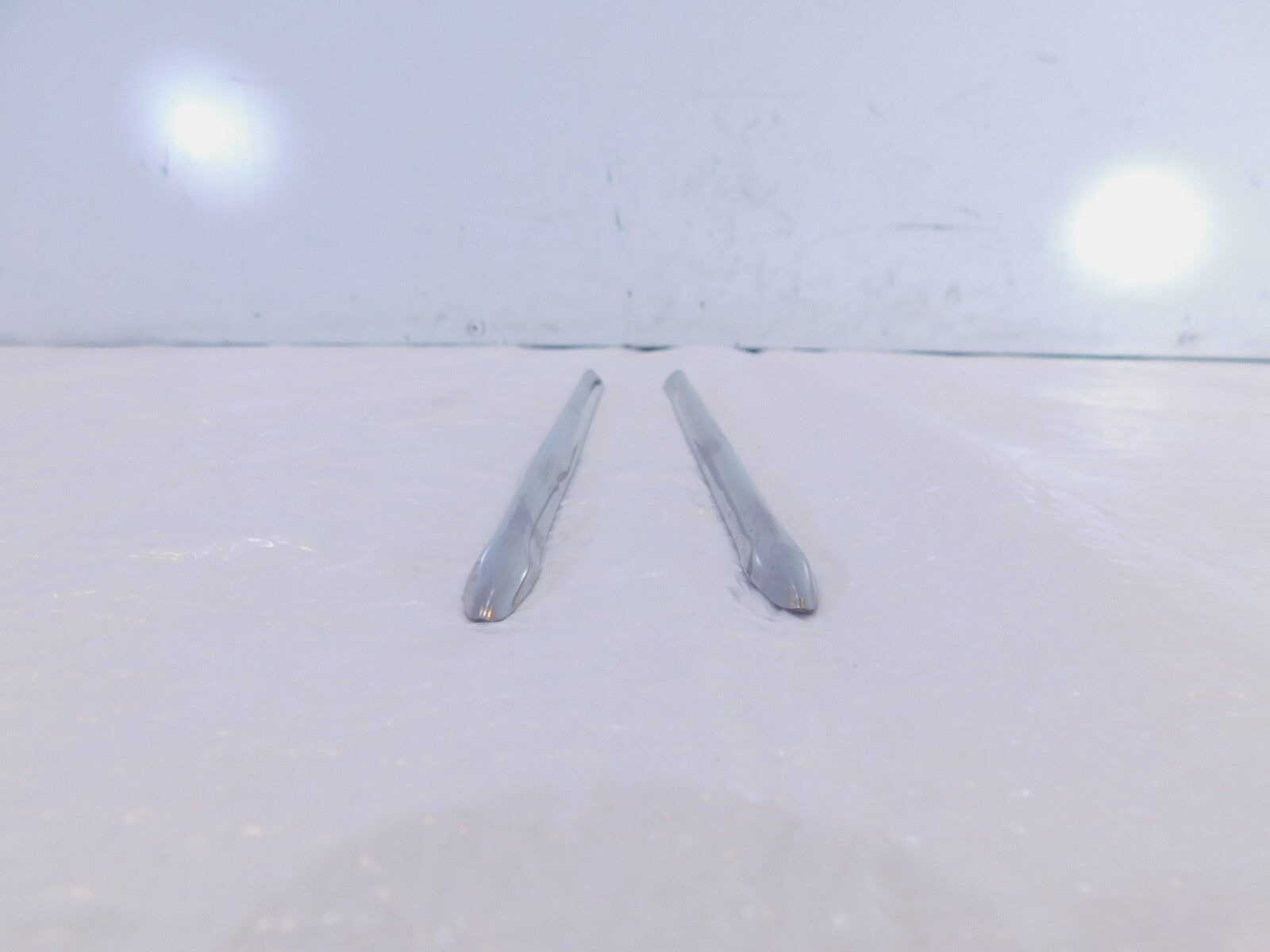 This is a used pair of front fender spears. They are a little dirty and have some marks from previous use and storage. There is some pitting and minor wear in the material (as pictured).