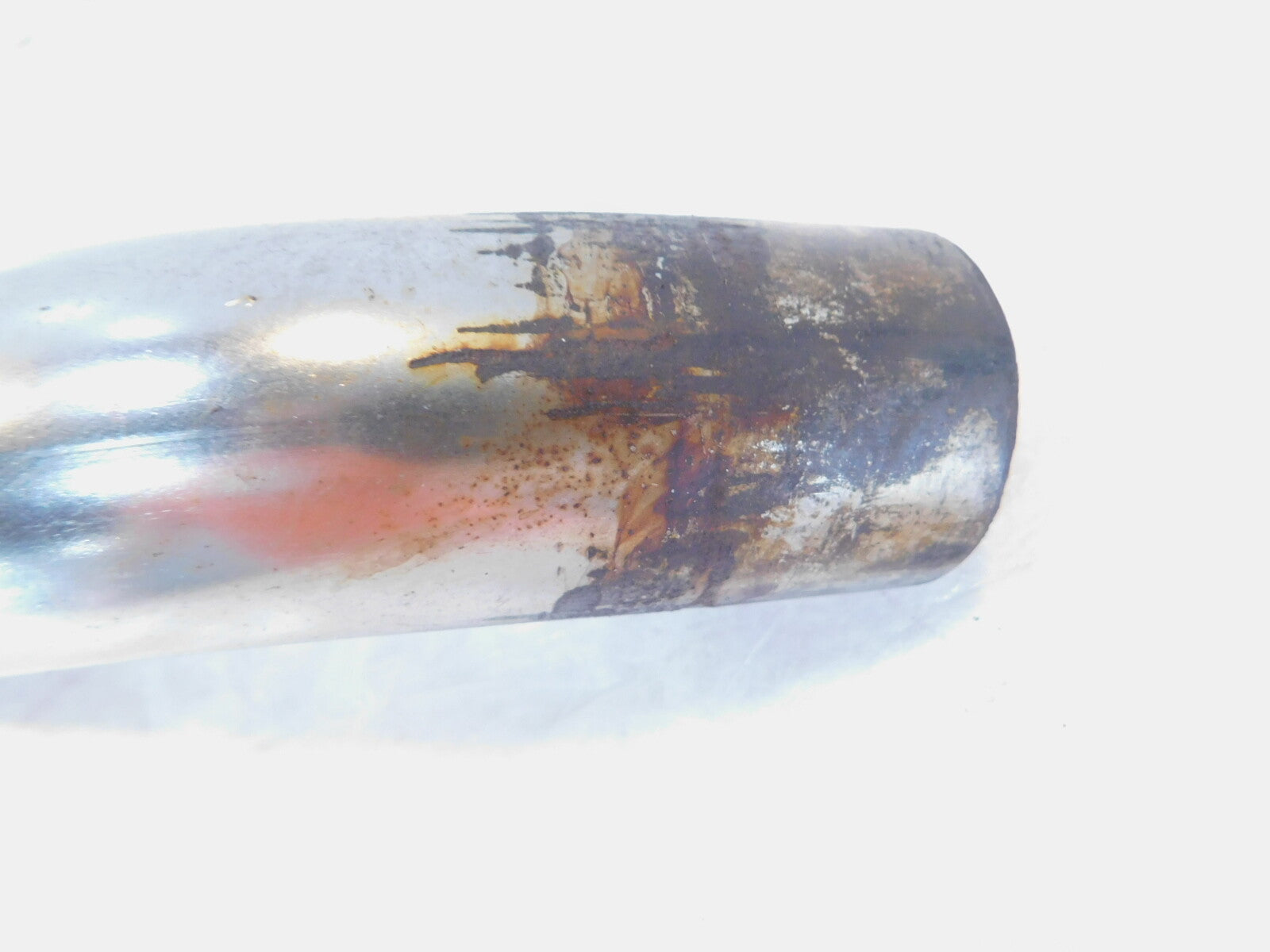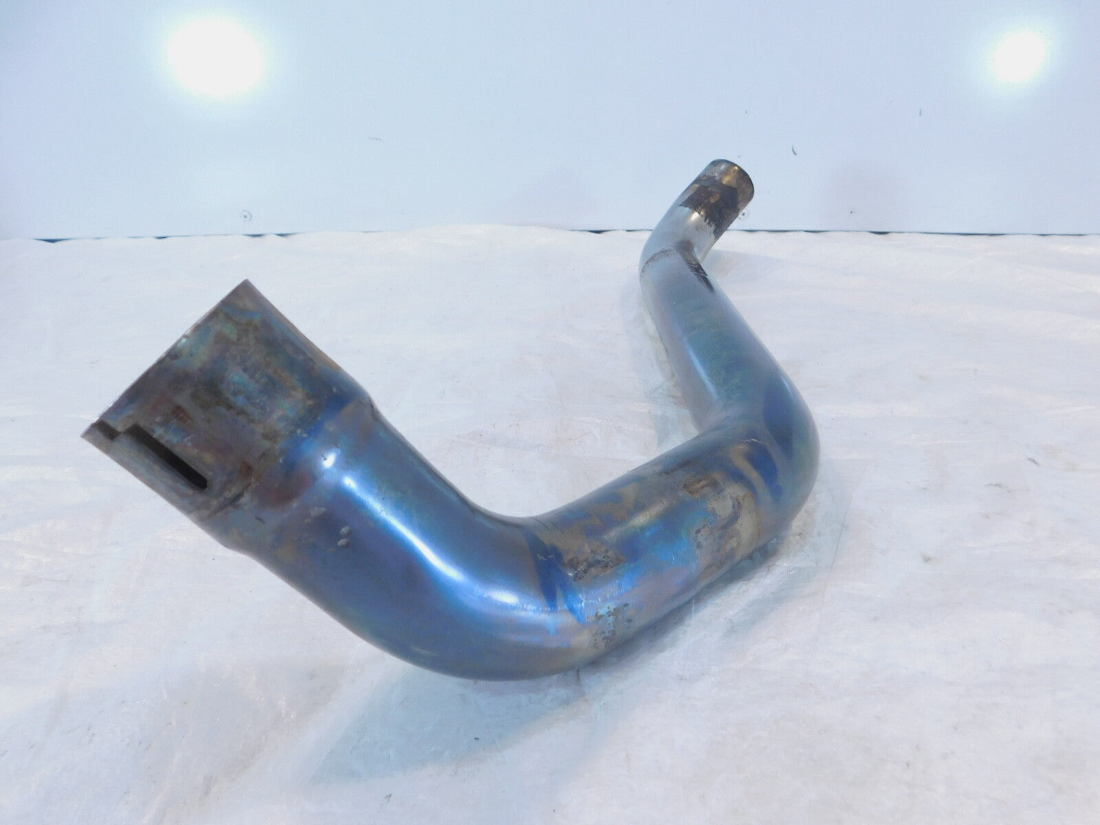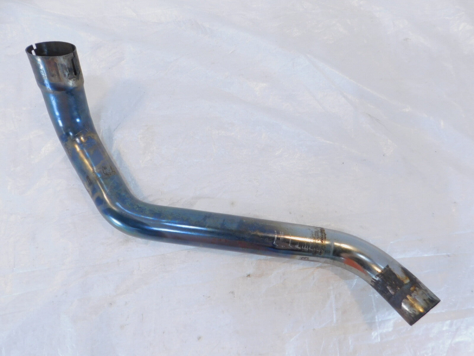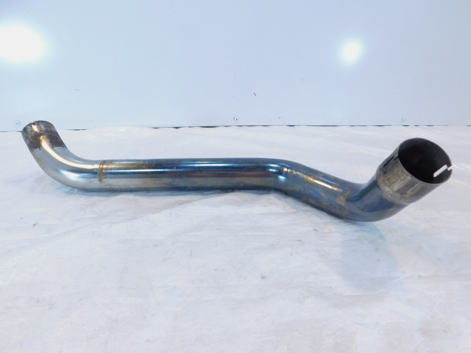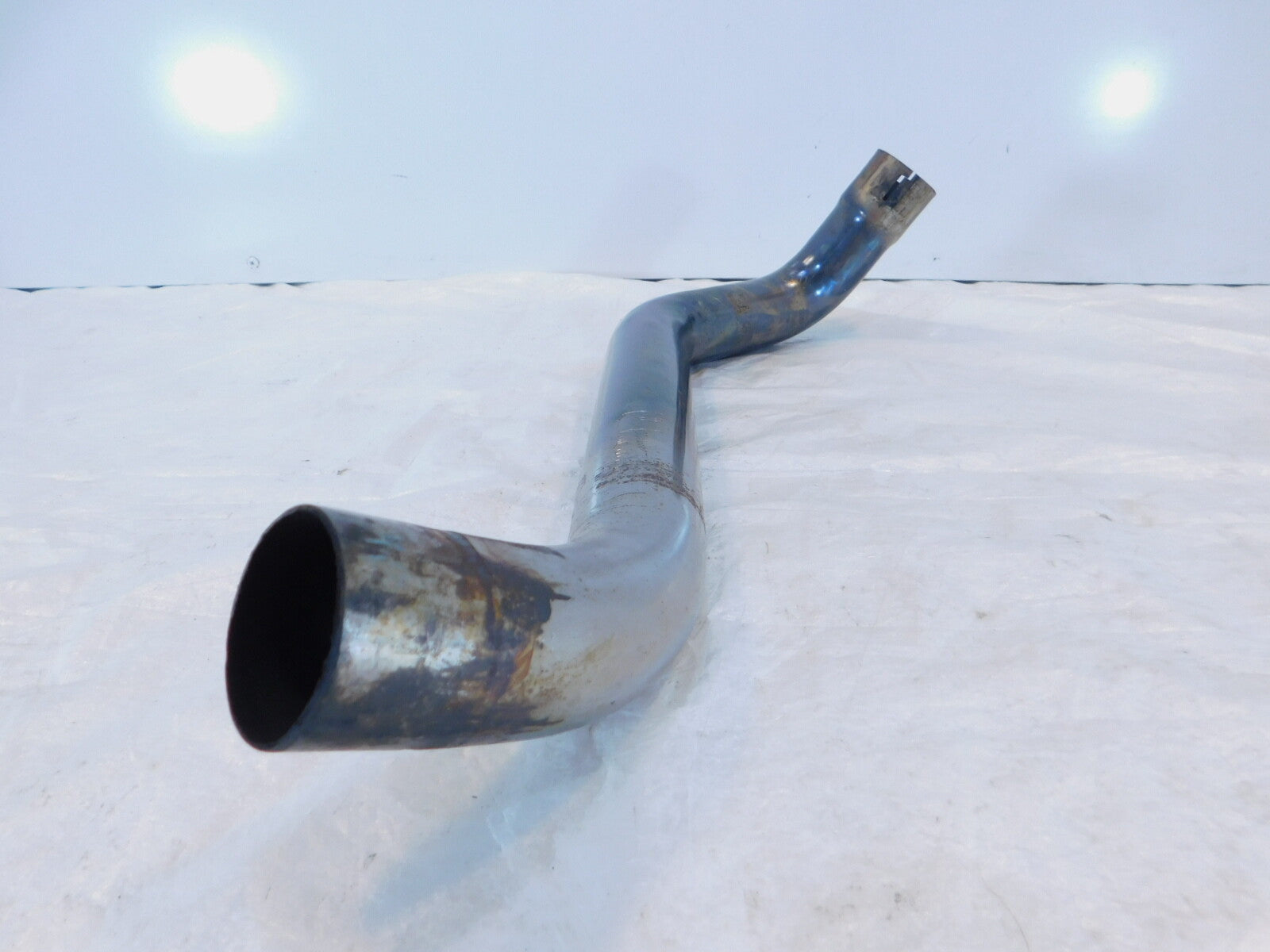 This is a used exhaust pipe in good condition. It is dirty and has some marks and light discoloration from previous use and storage but looks good.