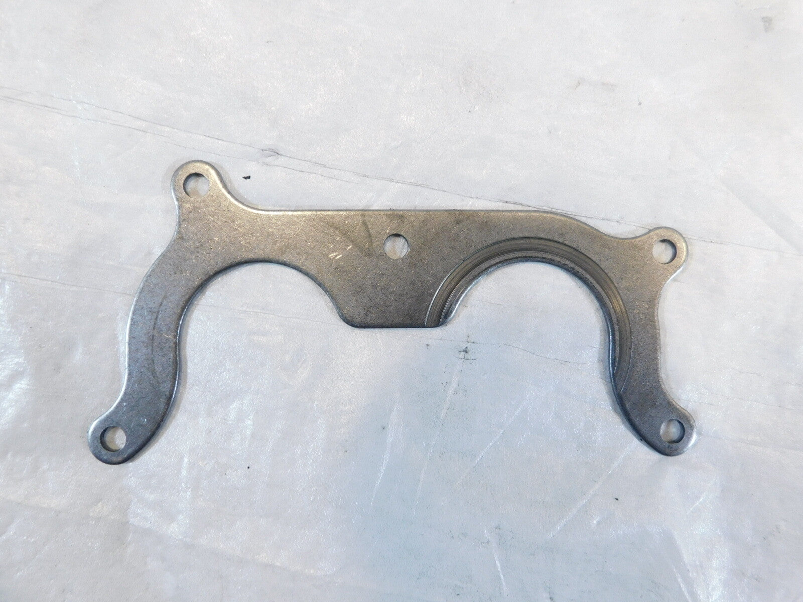 This is a used cam bearing support plate in good condition. There are some light marks and it is dirty from previous use and storage but it looks good.