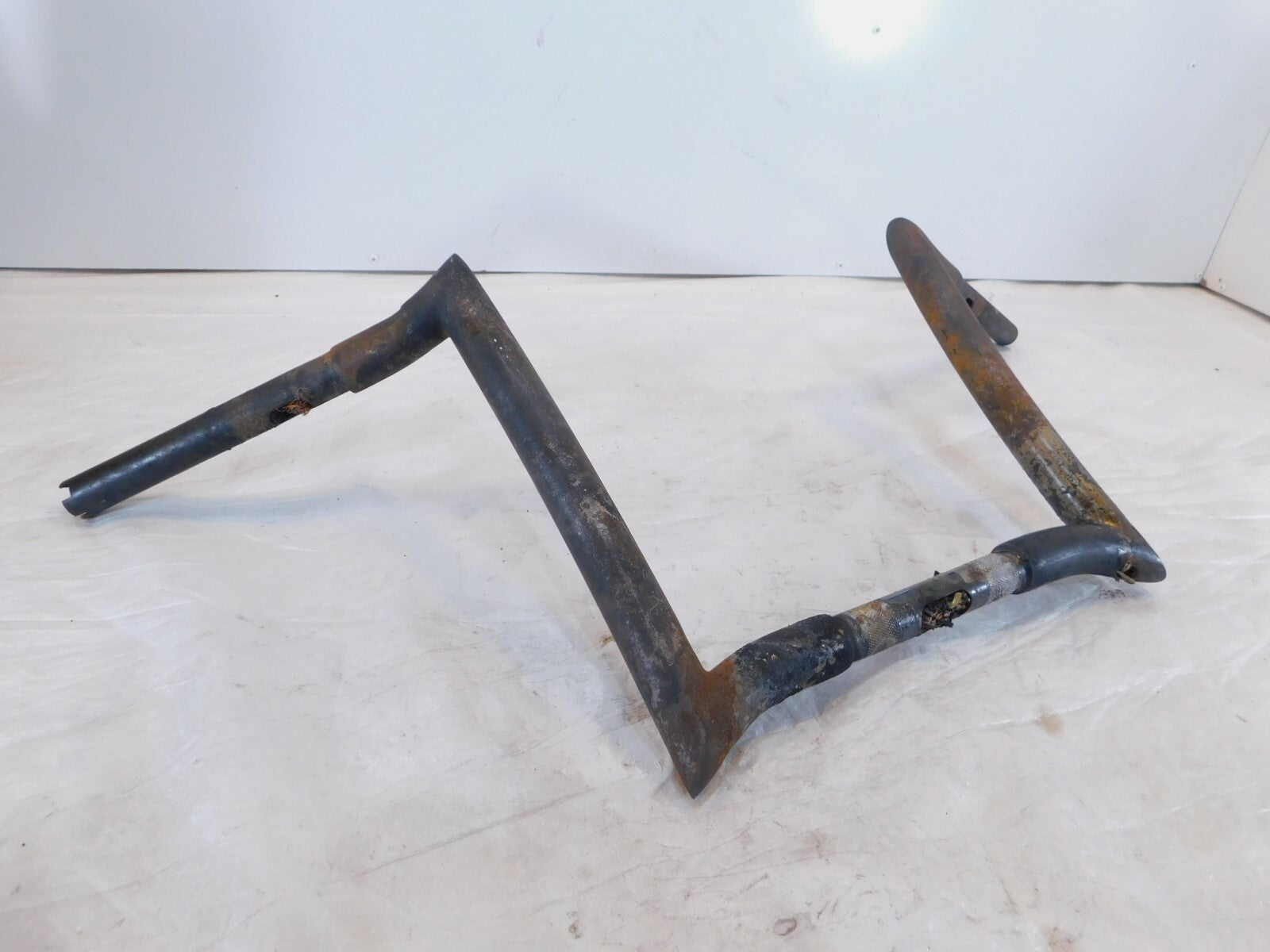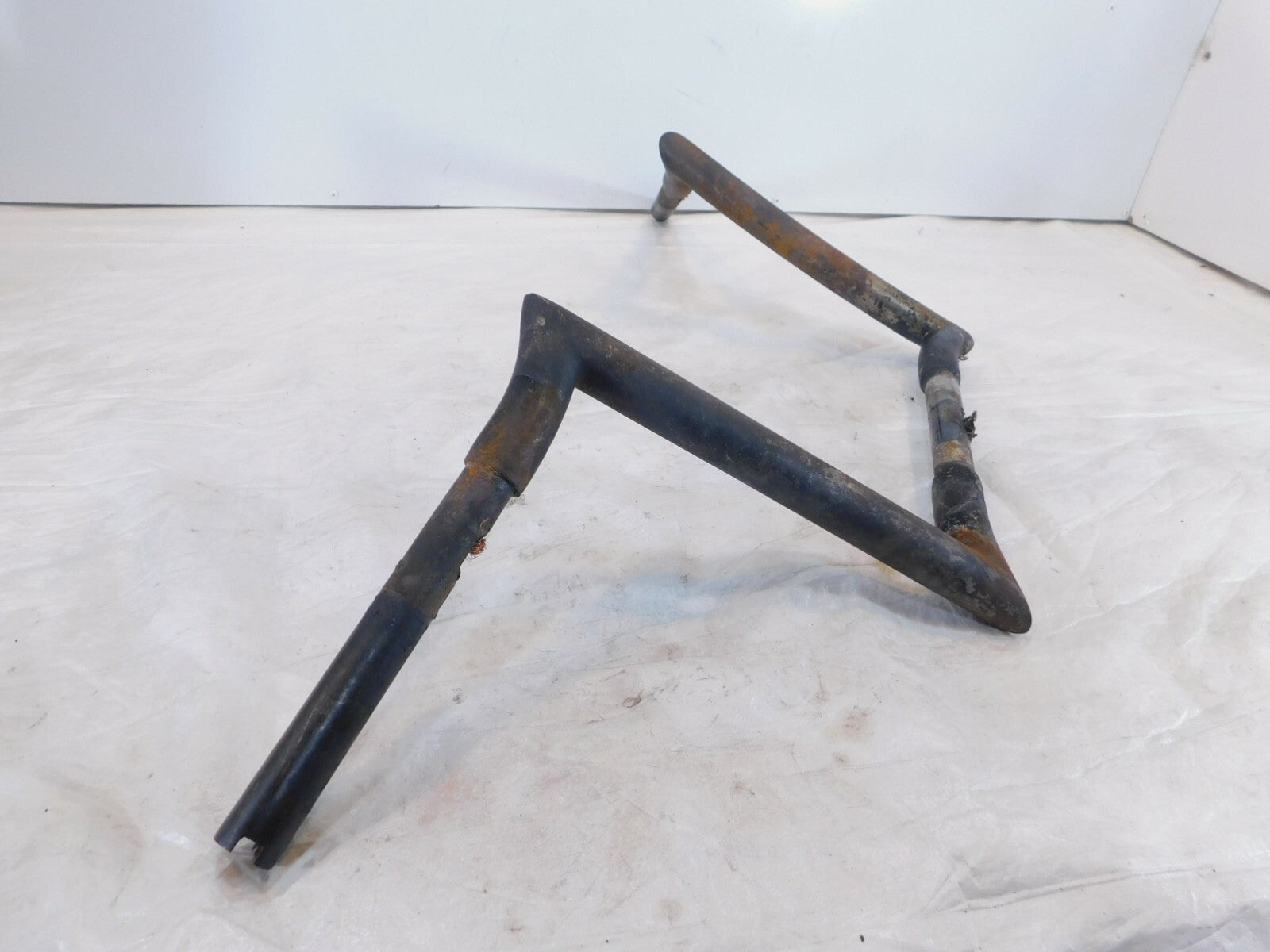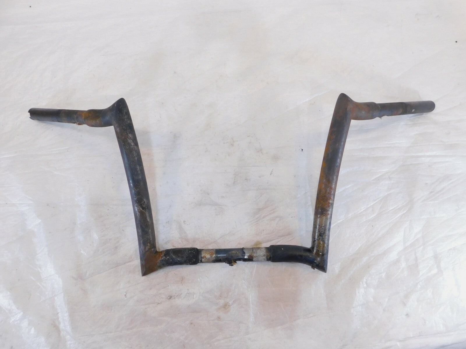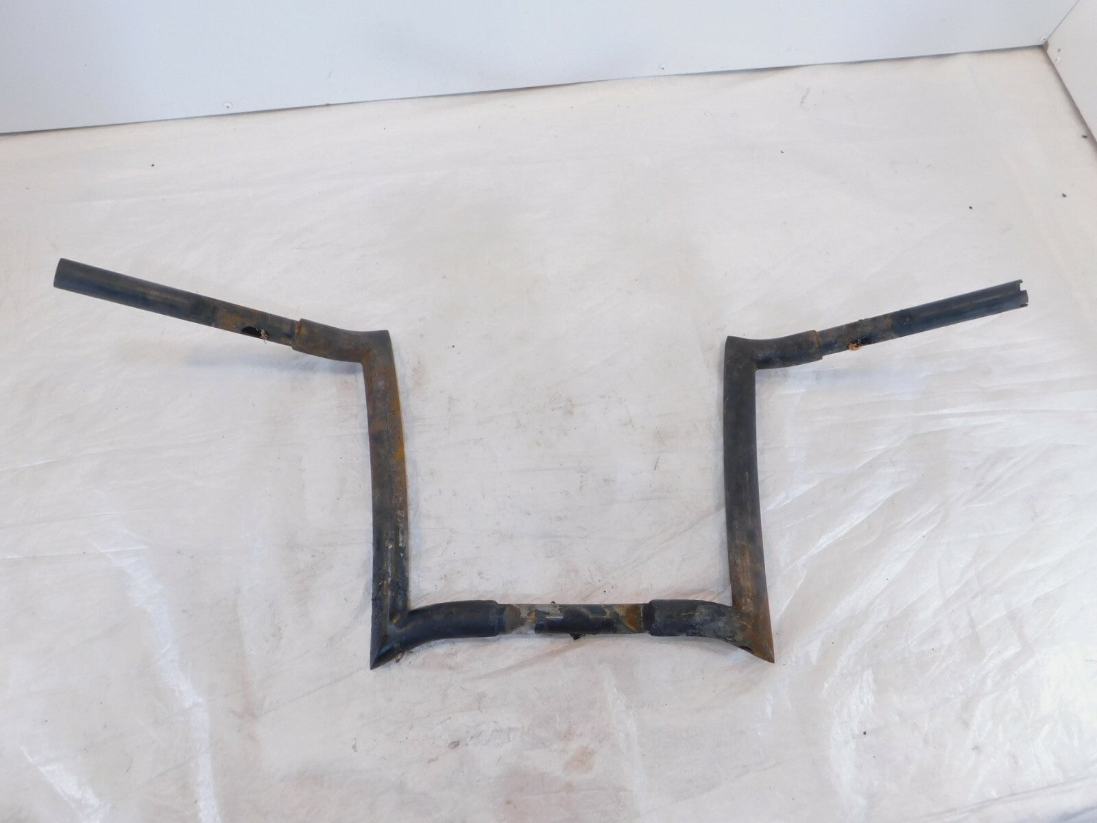 This is a used set of ape hangers. They are dirty and rusty from a light garage fire. The damaged wires are still inside. They are also slightly bent. Would look good cleaned up straightened and powdercoated.