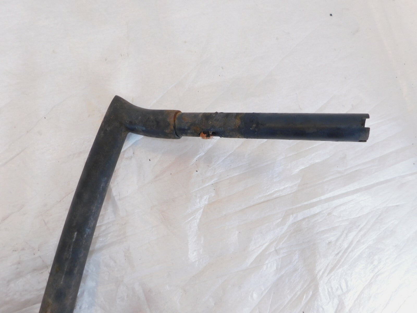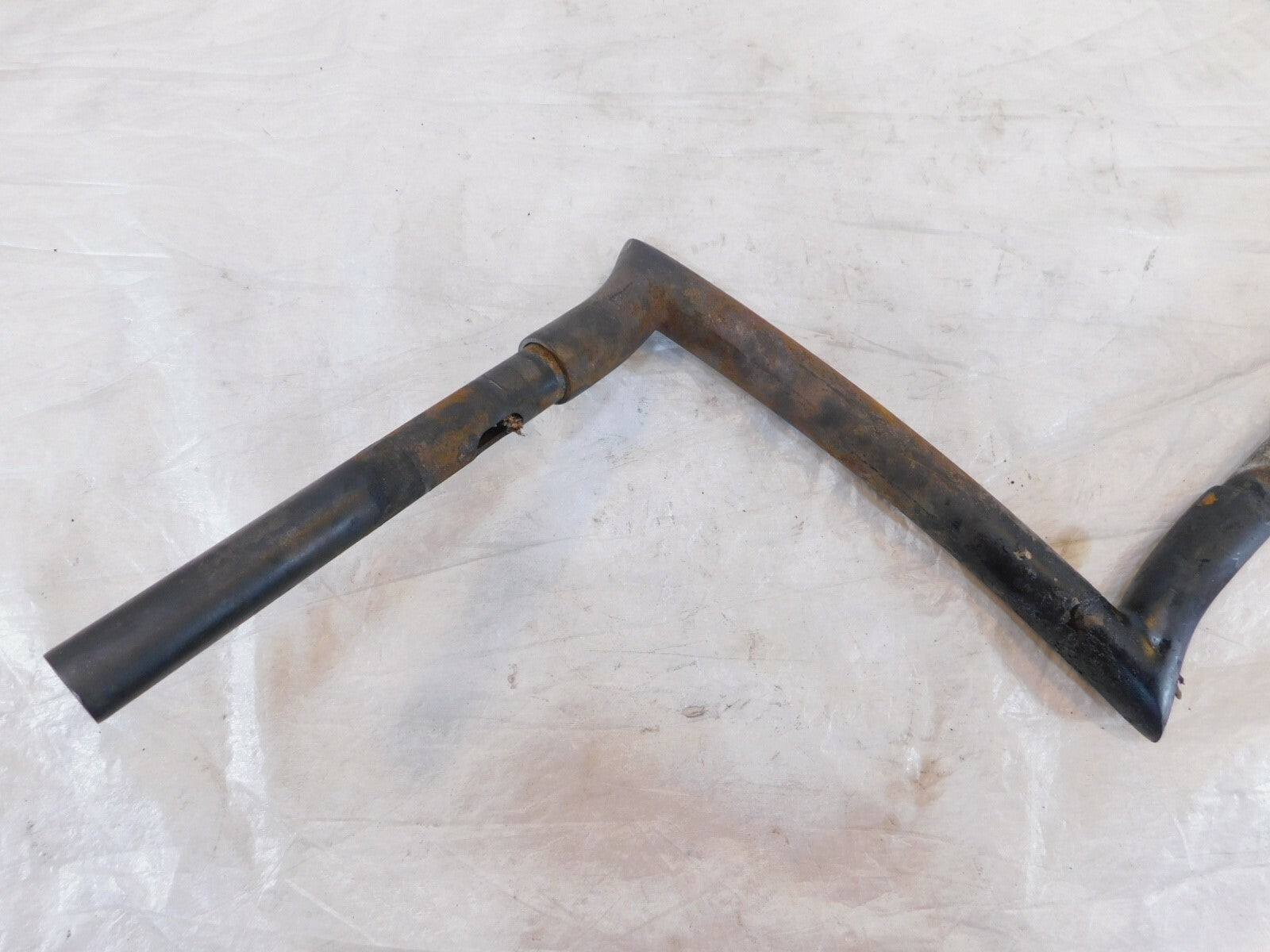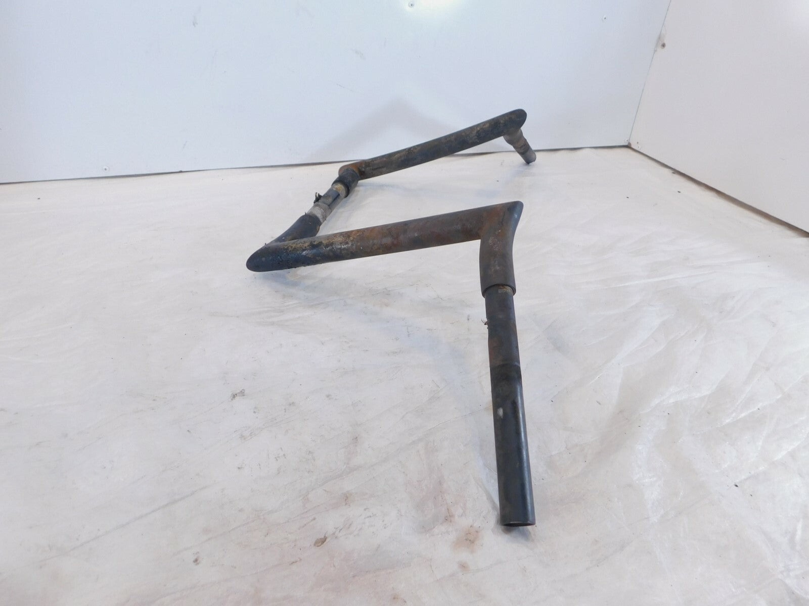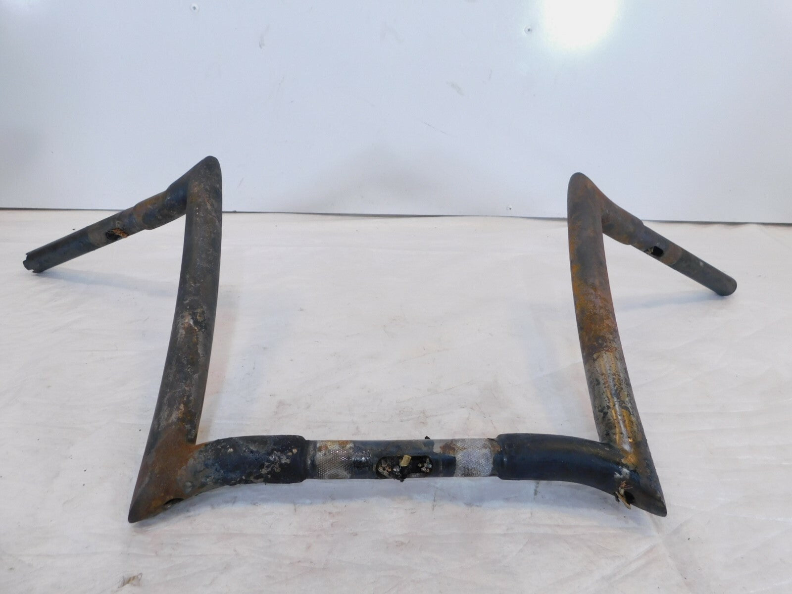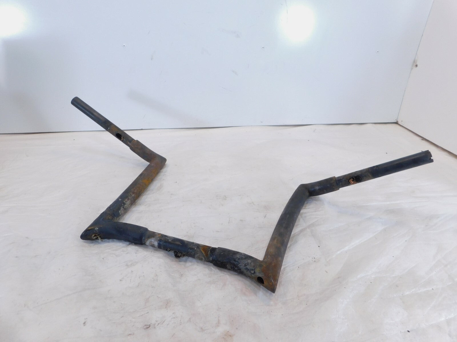 This is a used set of ape hangers. They are dirty and rusty from a light garage fire. The damaged wires are still inside. They are also slightly bent. Would look good cleaned up straightened and powdercoated.