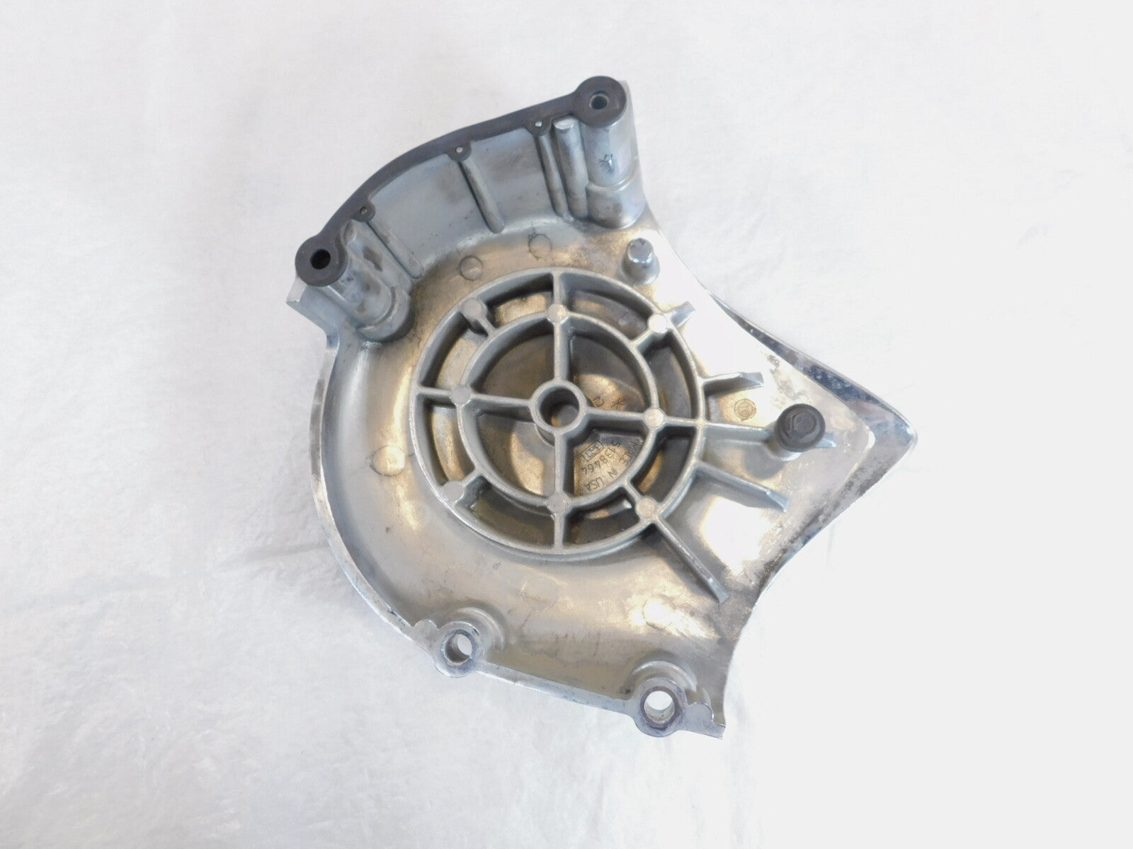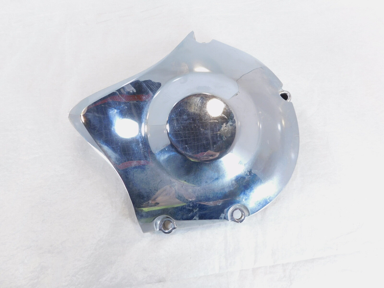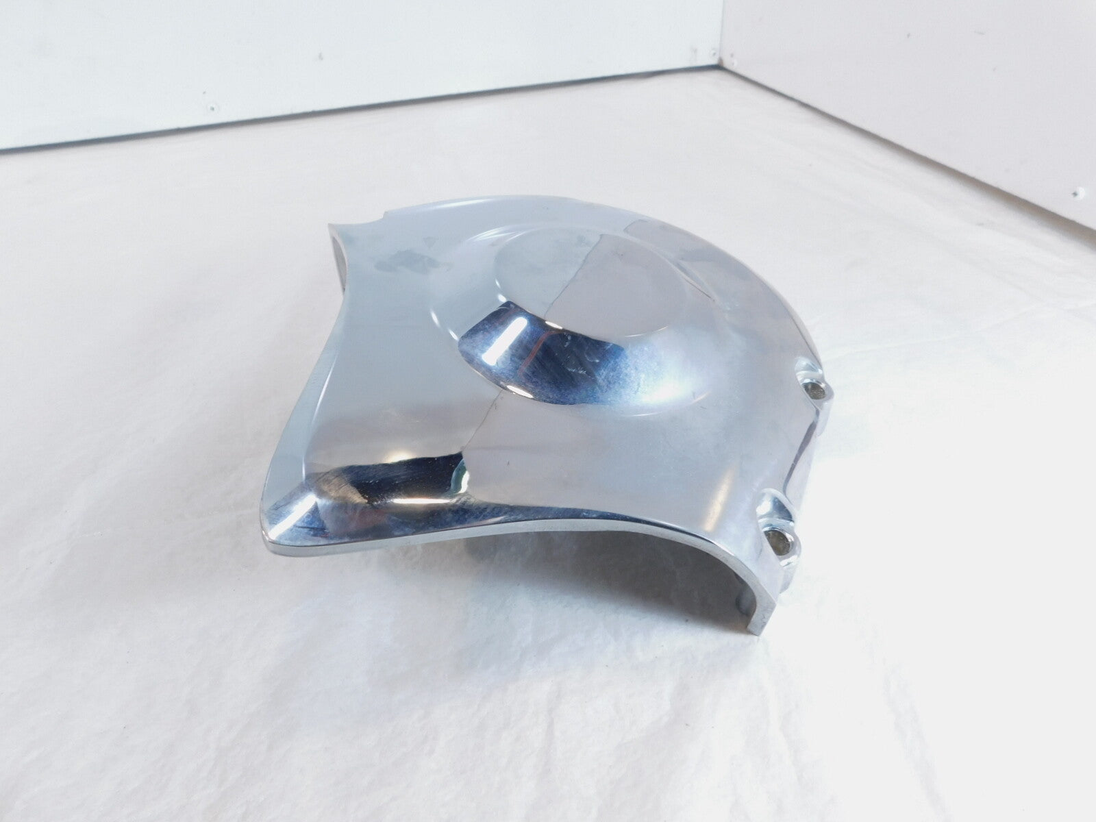 This is a used sprocket cover. There are some light marks from previous use and storage and some light pitting of the chrome.