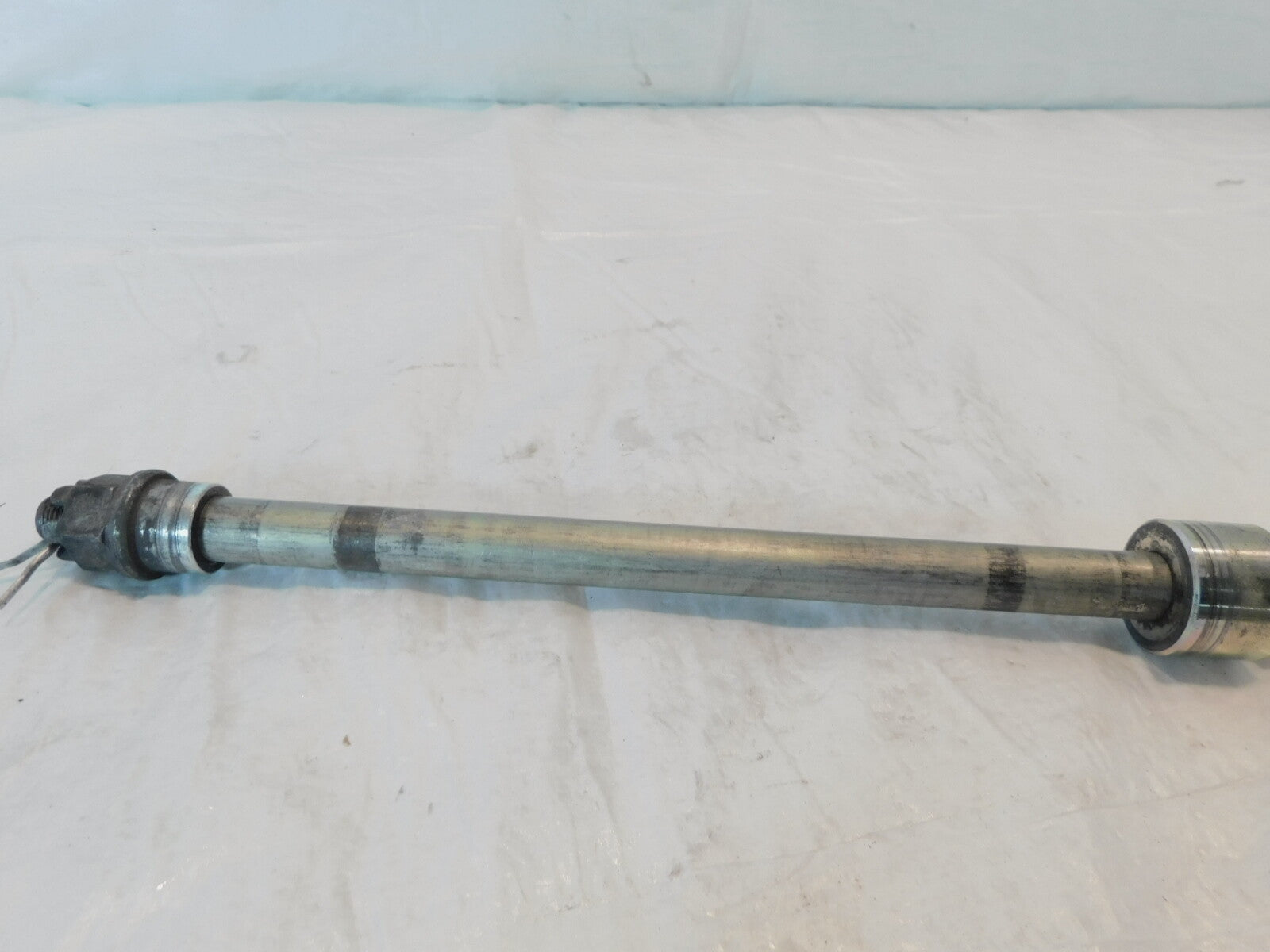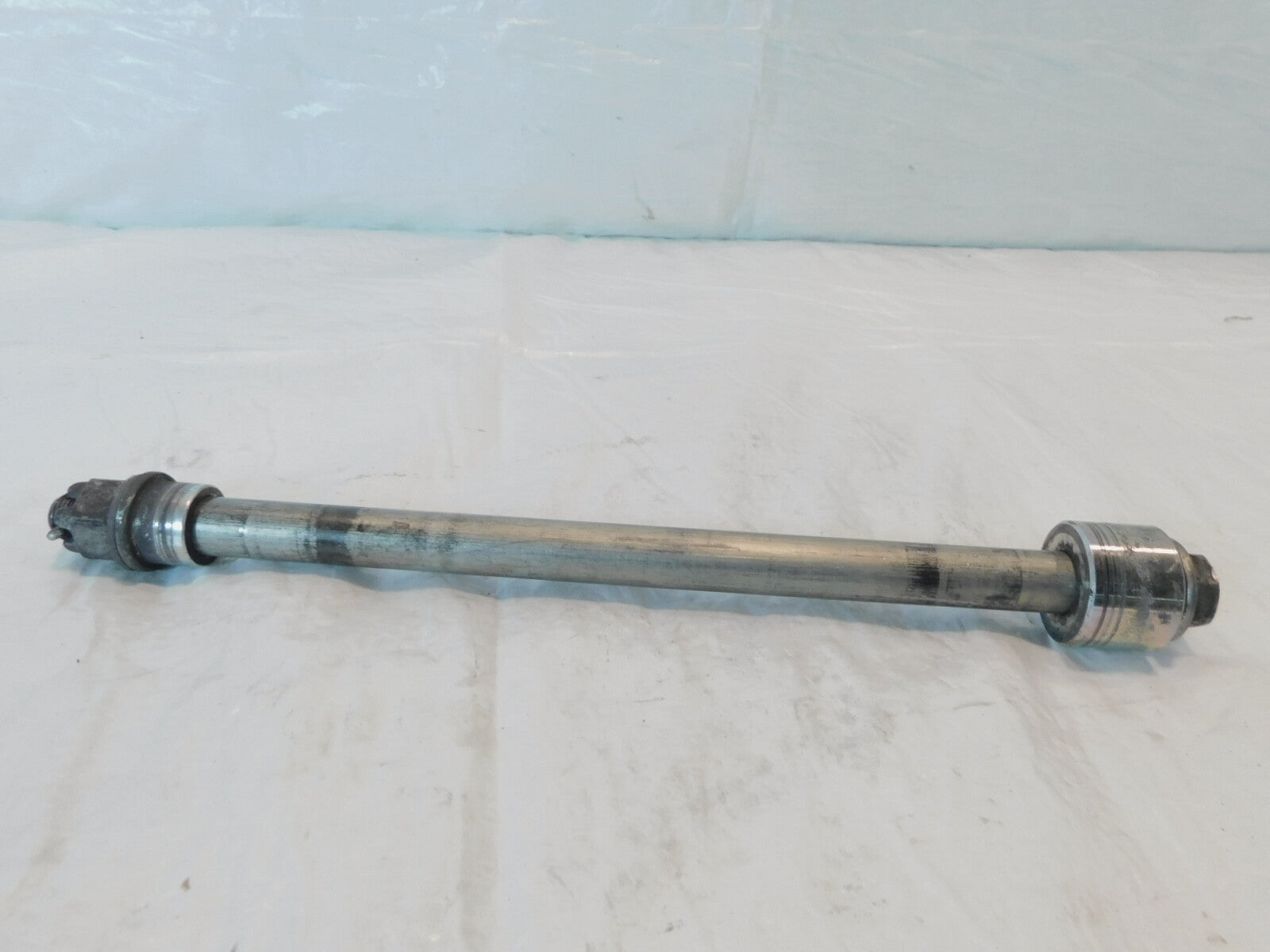 This is a used rear axle in good condition. It has some marks and is a little dirty from previous use but looks good. Part was removed from a 2010 Vulcan 1700.