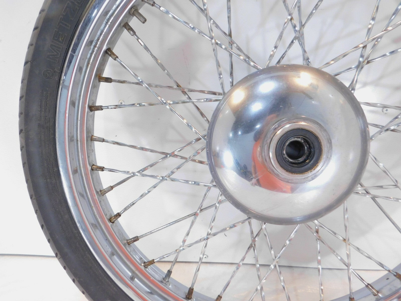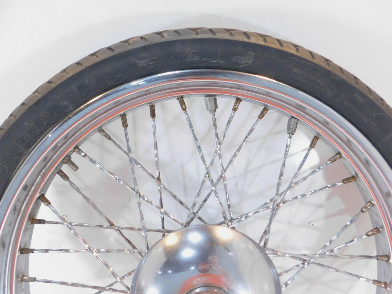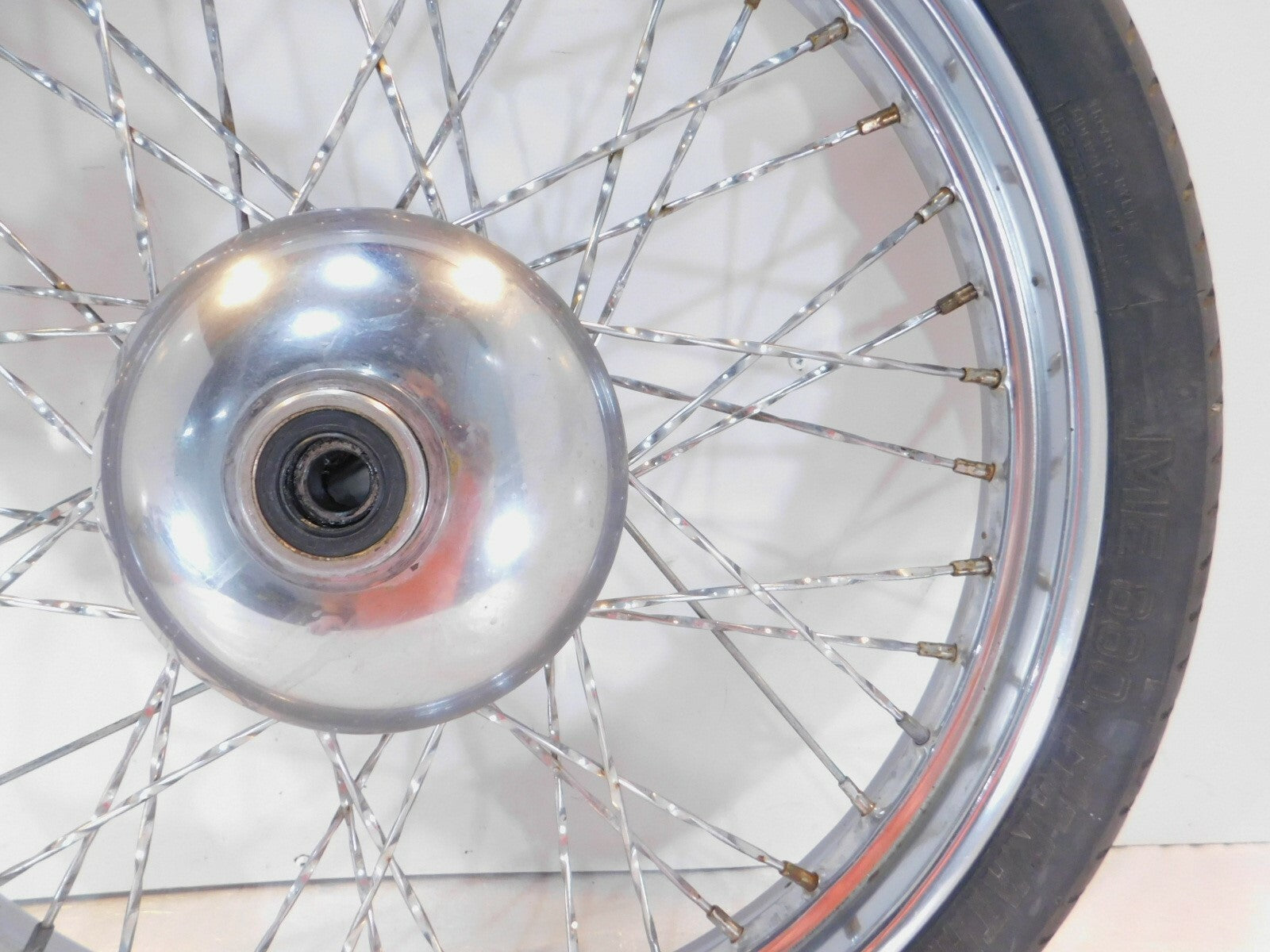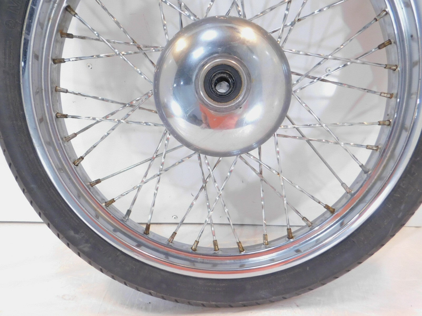 This is a used front wheel in good condition. It is a little dirty and has some marks from previous use and storage but looks good.